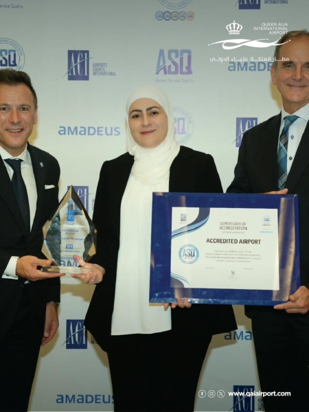 تكريم مطار الملكة علياء الدولي على تميّزه في تجربة العملاء بجائزة "المطار الأكثر متعة في الشرق الأوسط" وتجديد اعتماد المستوى الثالث في قمة تجربة المطارات لعام 2025