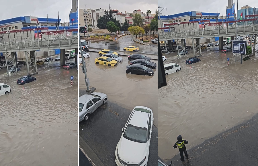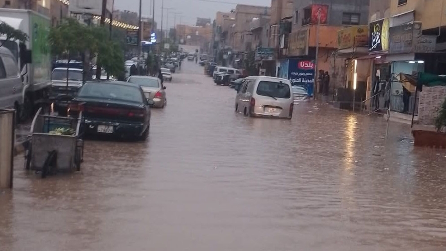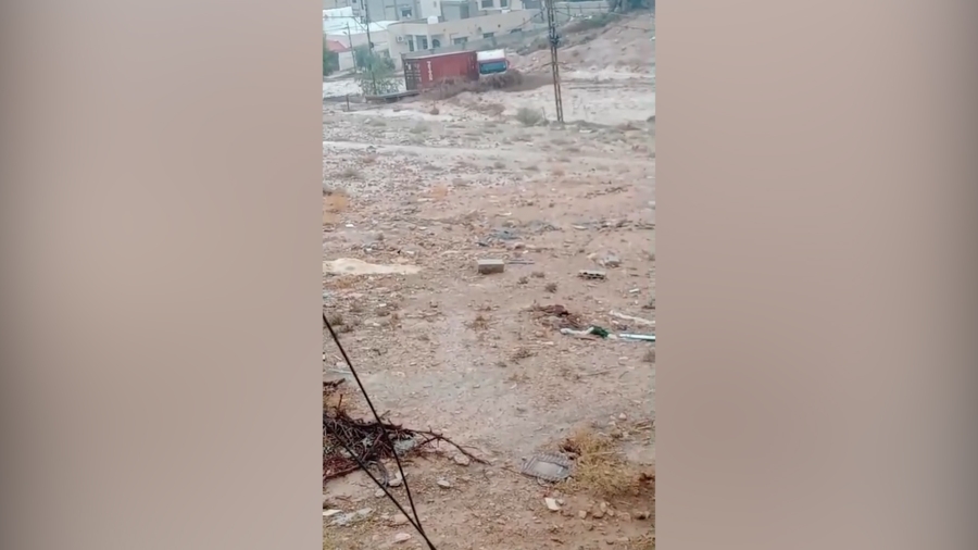 السيول تجرف حافلة وشاحنة في الزرقاء (فيديو)
