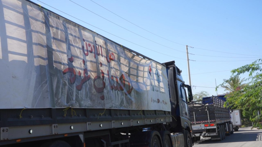 الأردن يستأنف إرسال القوافل الإغاثية إلى قطاع غزة (صور)