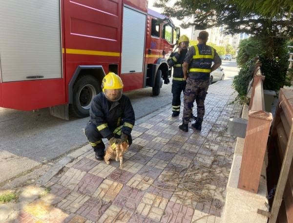 إنقاذ قطة علقت أعلى شجرة في شارع مكة
