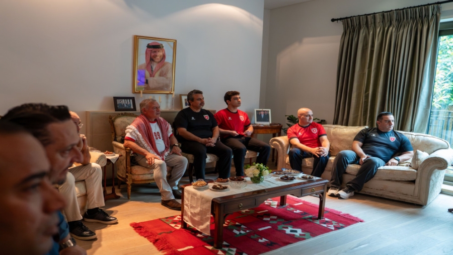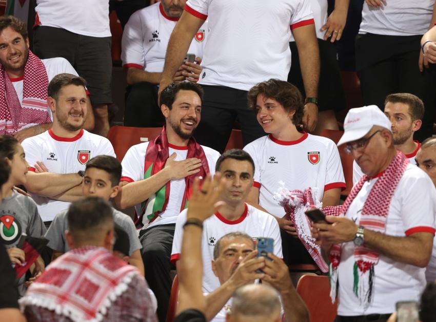 ولي العهد والأميران علي وهاشم يتابعون مبارة العراق وكوريا الجنوبية برفقة نشامى المنتخب
