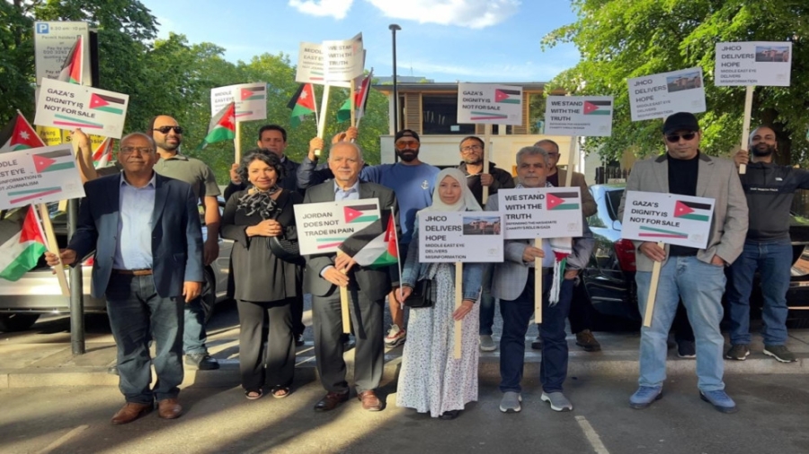 وقفة احتجاجية أمام "ميدل إيست آي" رفضا لتقارير كاذبة بحق الهيئة الخيرية