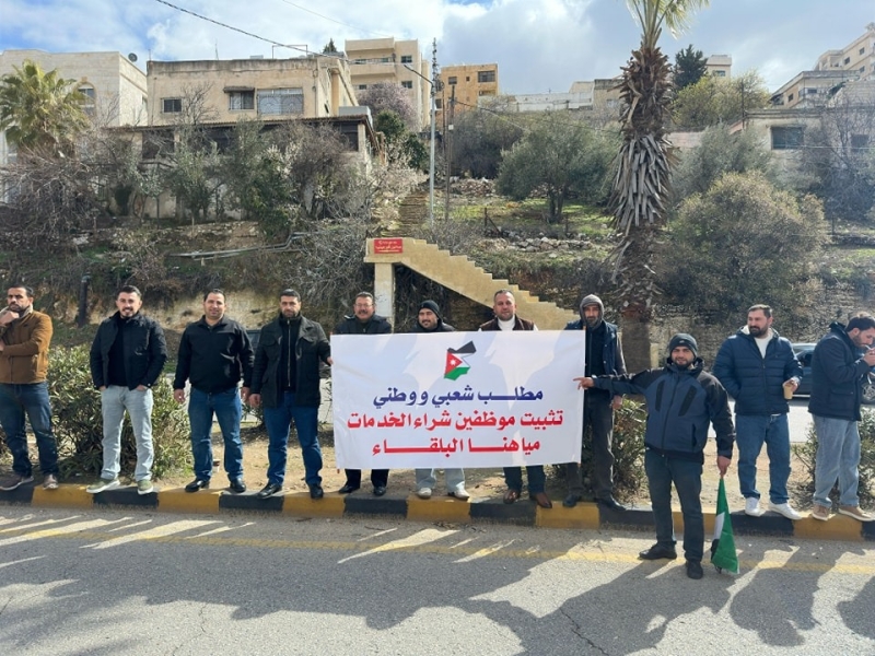 اعتصام لموظفي شراء الخدمات أمام شركة مياهنا في السلط (صور وفيديو)