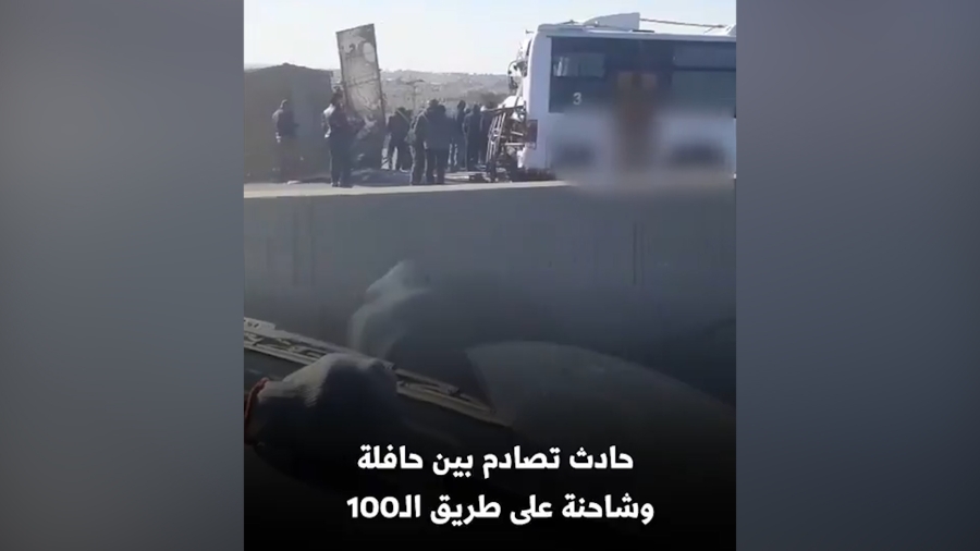 حادث تصادم بين حافلة وشاحنة يغلق طريق الـ100 (فيديو)