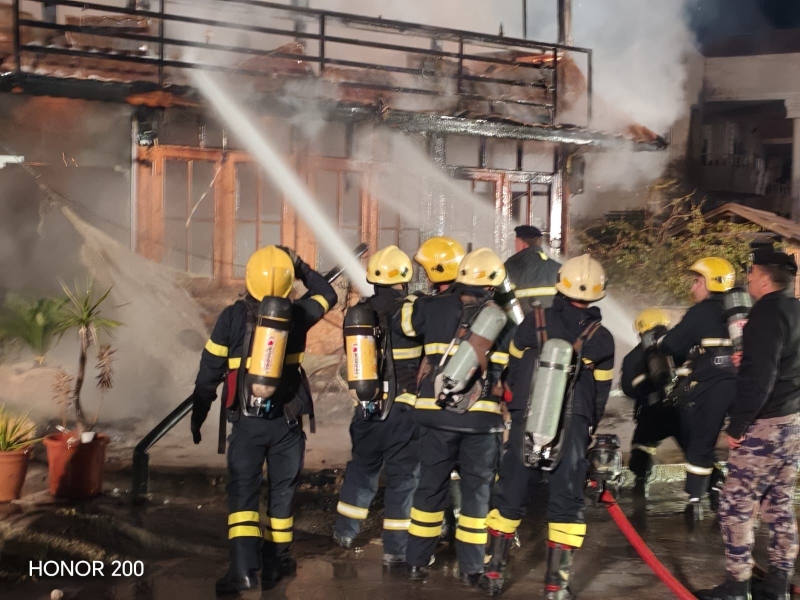 الدفاع المدني يخمد حريق مقهى في محافظة إربد (صور)