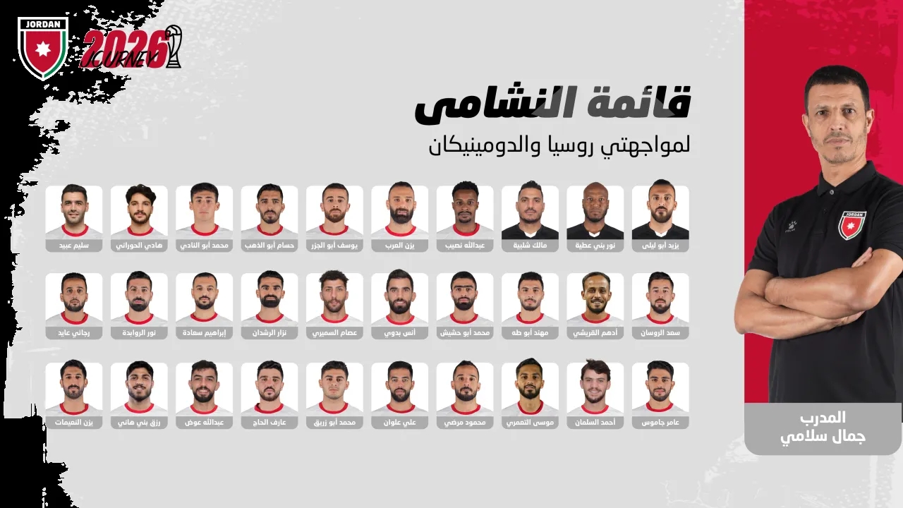إعلان قائمة النشامى لمواجهتي روسيا والدومينيكان وديا