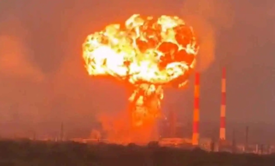 أشبه بانفجار نووي.. مسيّرة أوكرانية تضرب مصفاة روسية (فيديو)