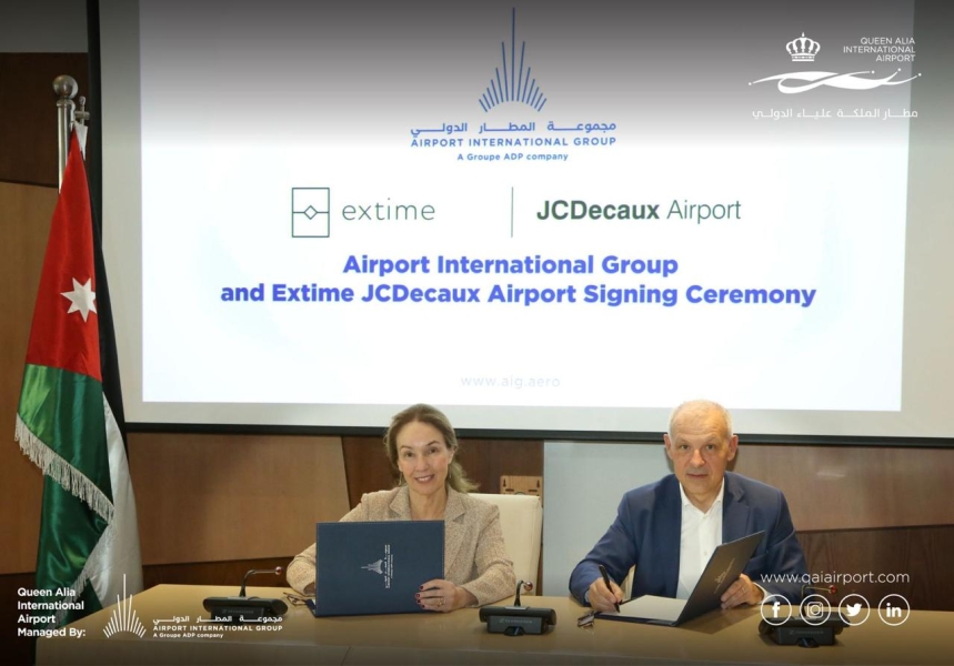 "مجموعة المطار الدولي" وشركة Extime JCDecaux Airport توقّعان اتفاقية للارتقاء بالتجربة الإعلانية في مطار الملكة علياء الدولي