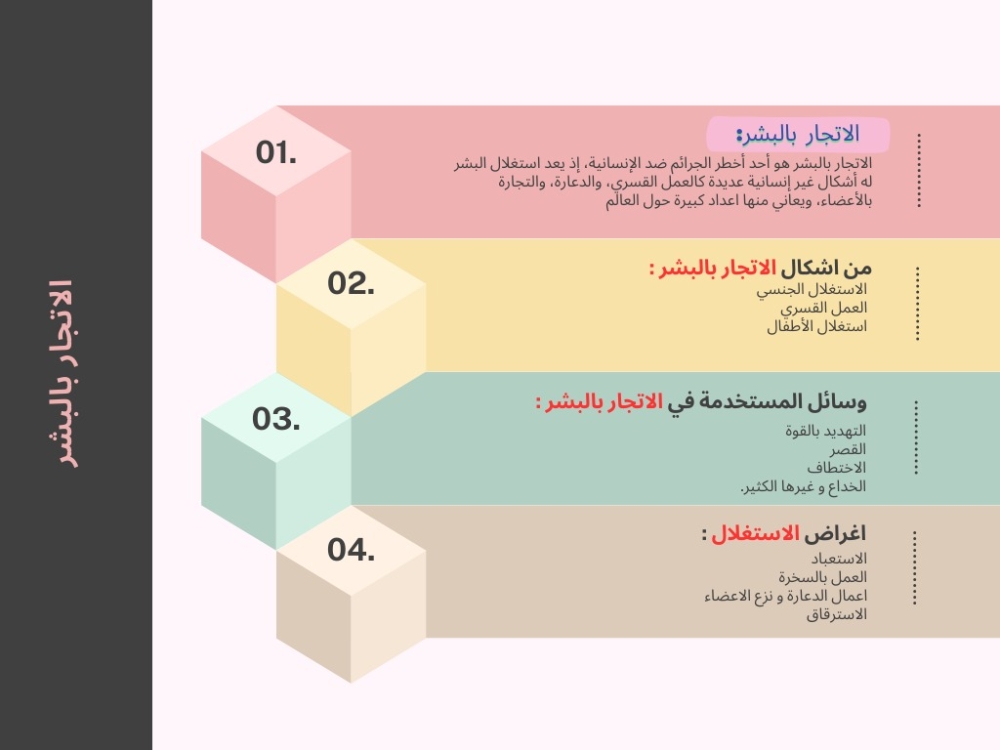 الاتجار بالبشر هو أحد أخطر الجرائم ضد الإنسانية، إذ يعد استغلال البشر له أشكال غير إنسانية عديدة كالعمل القسري، والدعارة، والتجارة بالأعضاء، ويعاني منها اعداد كبيرة حول العالم، ولا تقتصر على دولة او منطقة، بل هي ظاهرة عالمية تتطلب استجابة شاملة وتعاونية.