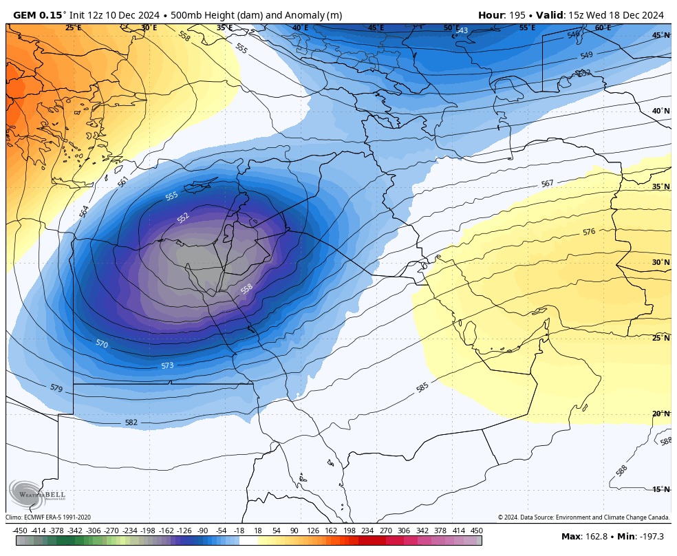 وأوضح المركز أن المؤشرات تشير إلى استمرار تأثر المنطقة بأنظمة جوية باردة جدًا، مع توقعات بحدوث تغيرات جوهرية في المنظومة الجوية اعتبارًا من منتصف الشهر الجاري. كما أشار إلى أن النماذج العددية تظهر تباينًا في التوقعات، حيث تقدم سيناريوهات متعددة للفترة المقبلة، لكن غالبية هذه السيناريوهات تتفق على احتمال عودة النشاط الجوي إلى شمال شرق الشرق الأوسط قبل بداية الثلث الأخير من ديسمبر.