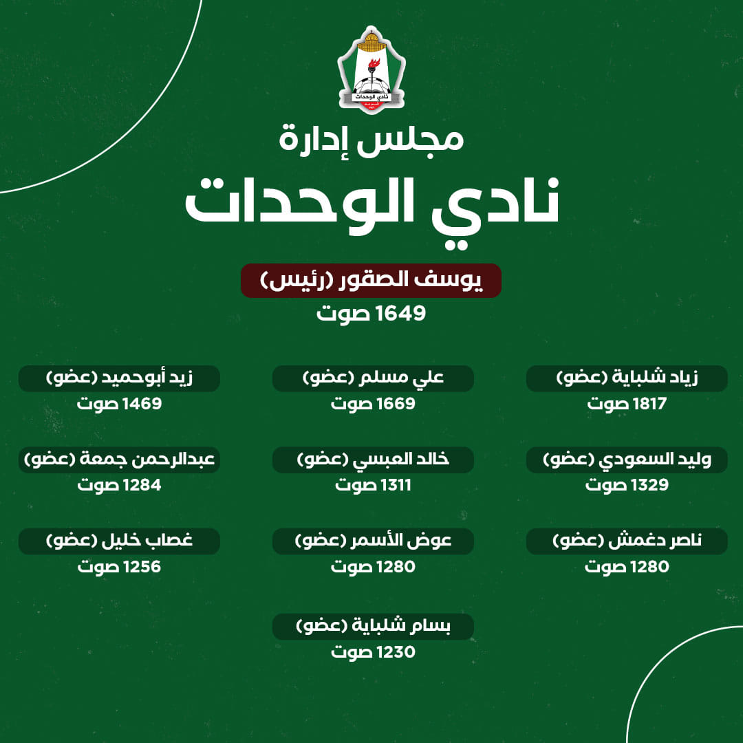 وفاز بعضوية النادي كل من زياد شلباية، وعلي مسلم، وزيد ابو حميد ووليد السعودي، وخالد العبسي، وعبدالرحمن جمعة، وناصر دغمش، وعوض الأسمر، وغصاب خليل، وبسام شلباية.