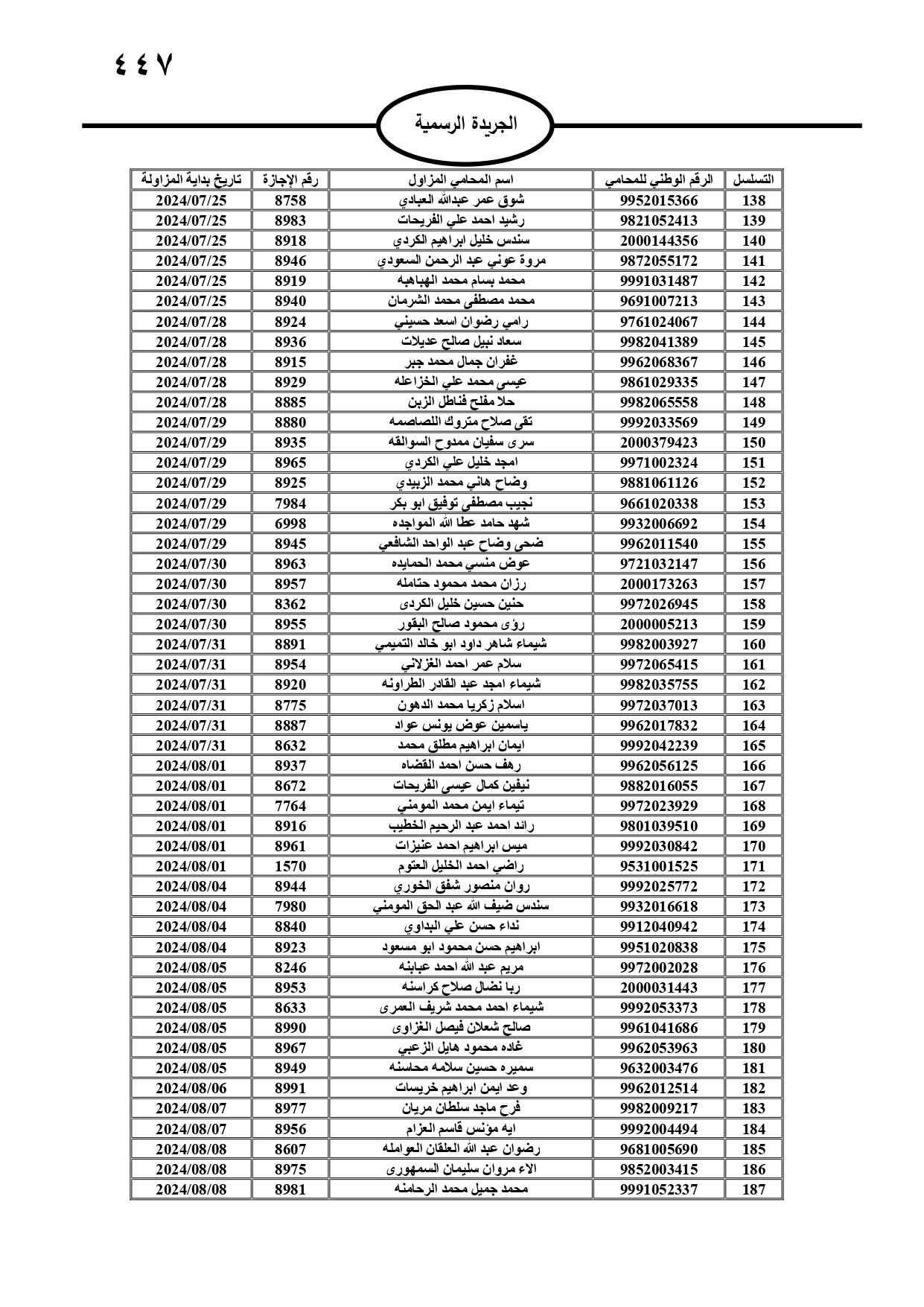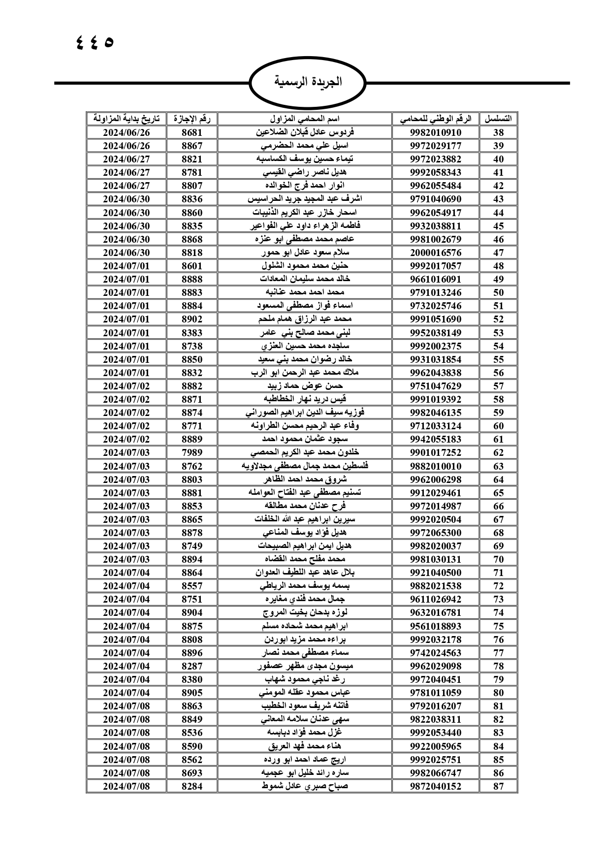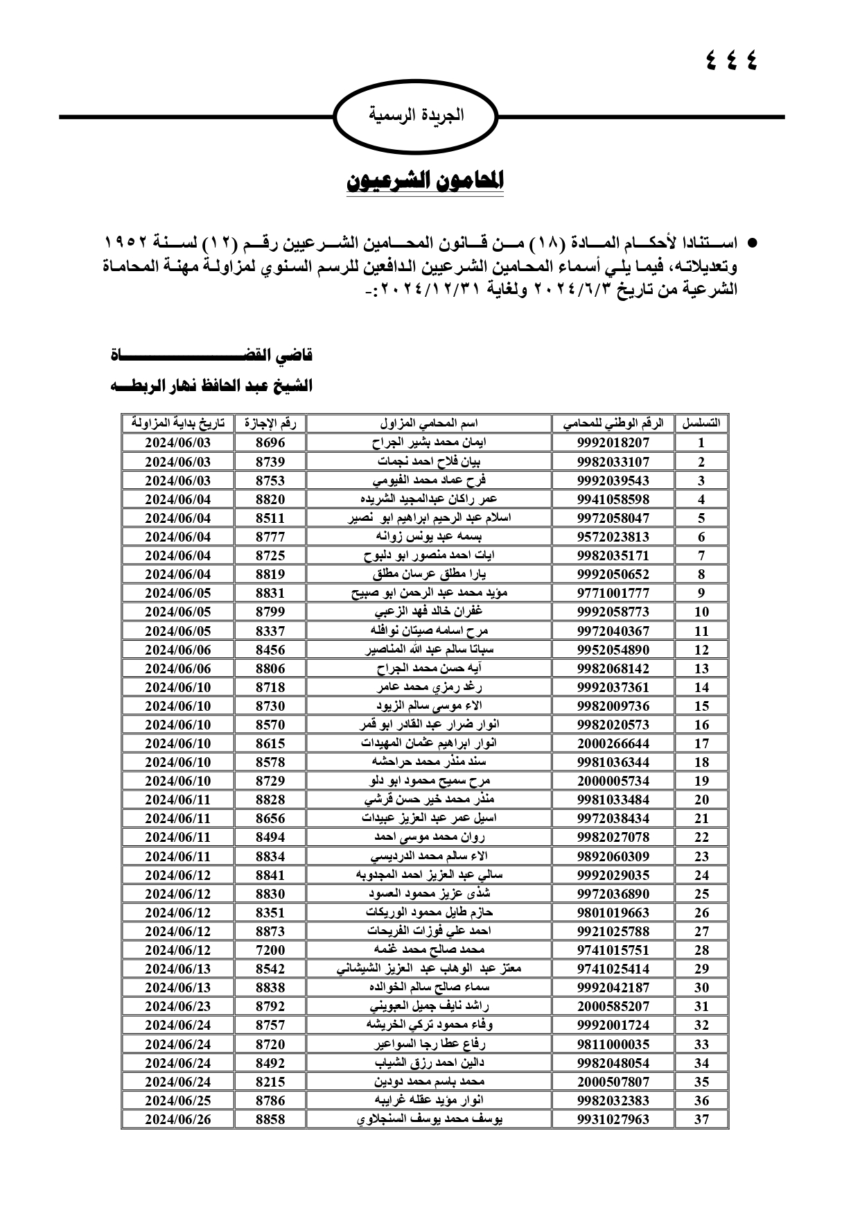 نشر أسماء المحامين الشرعيين المزاولين للمهنة