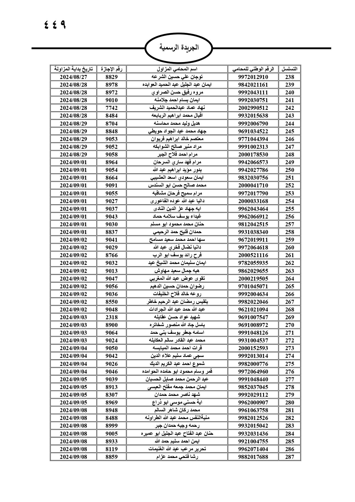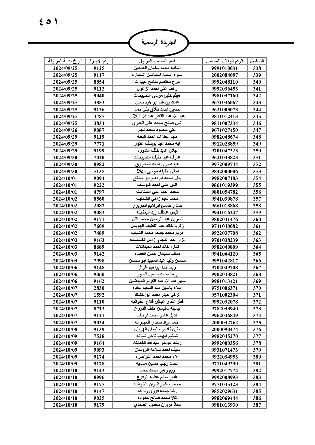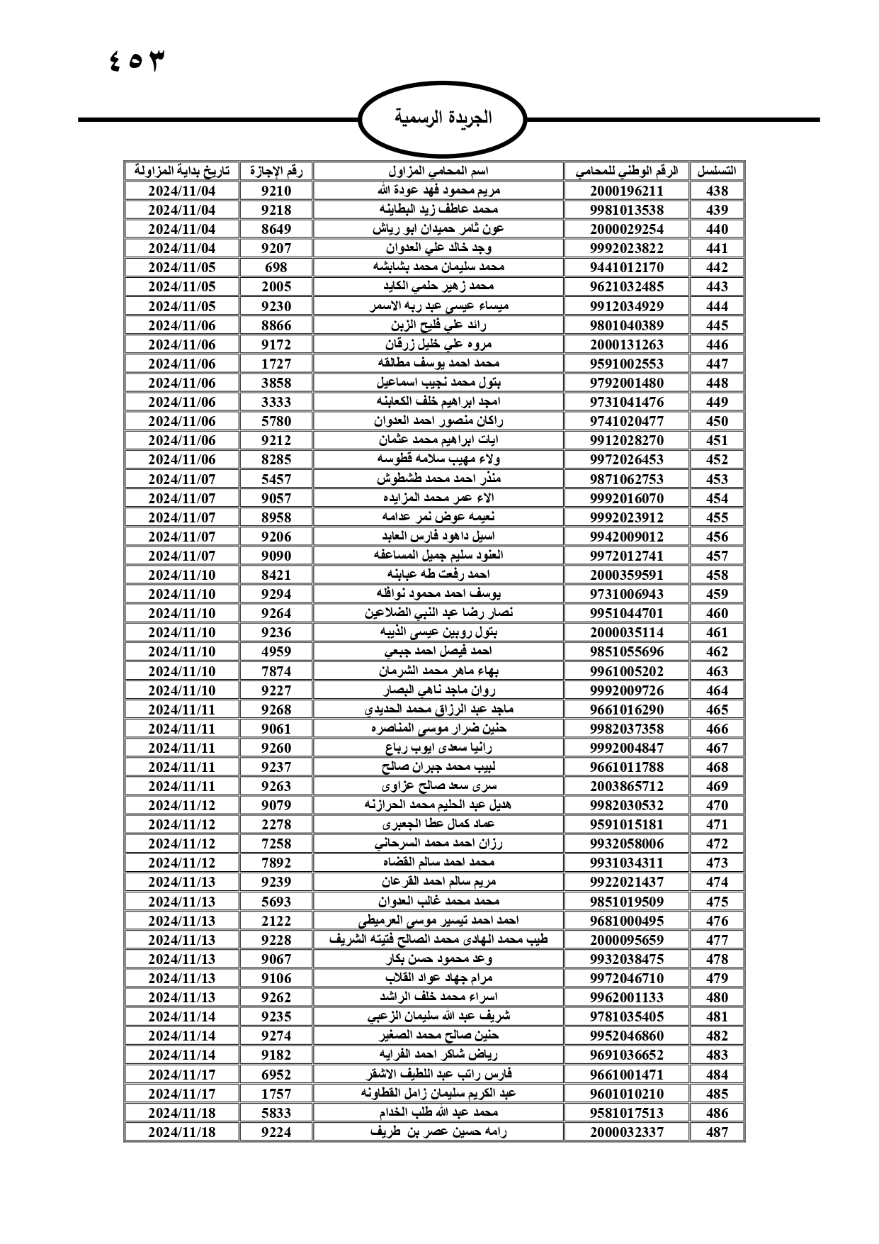 نشر أسماء المحامين الشرعيين المزاولين للمهنة