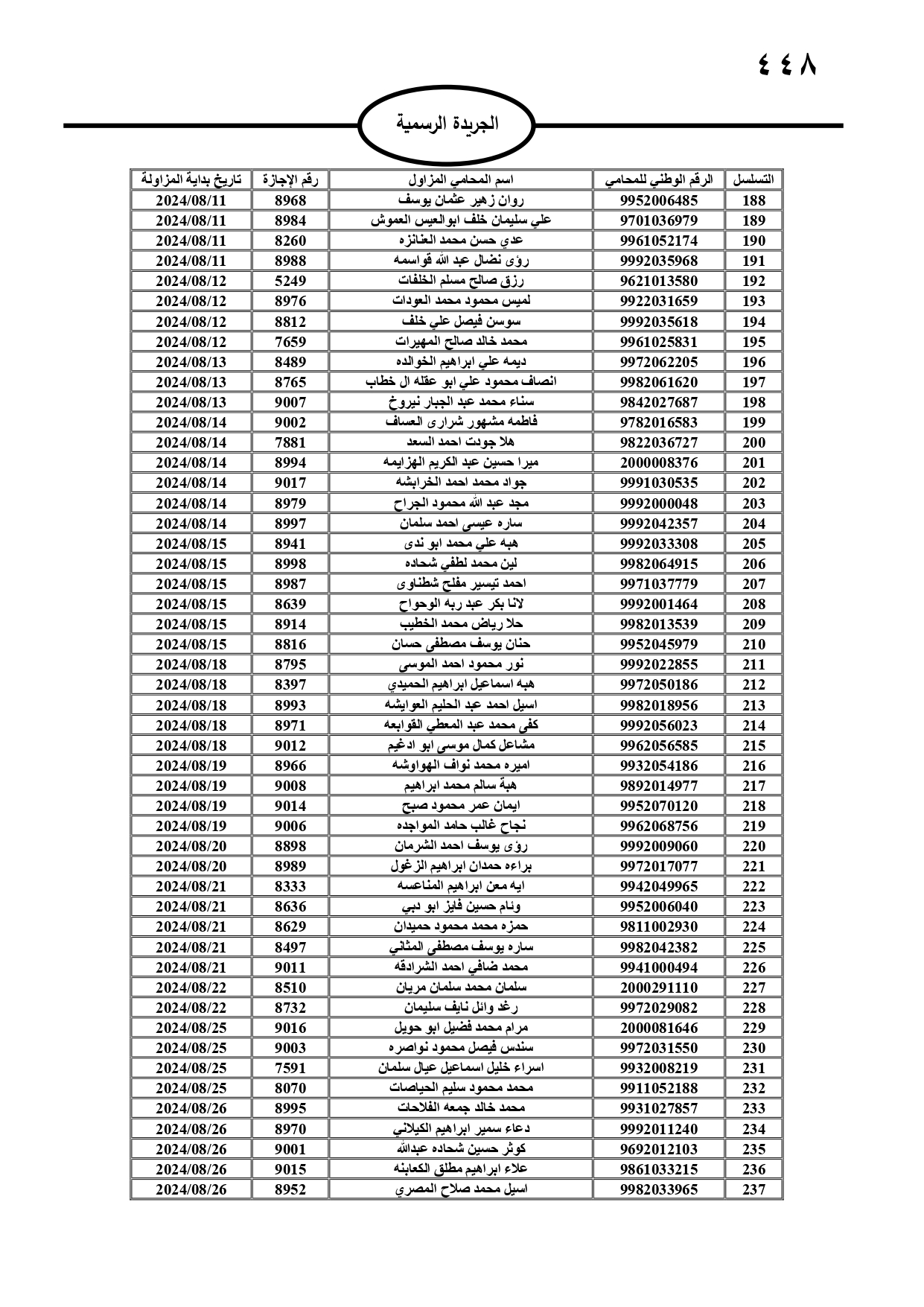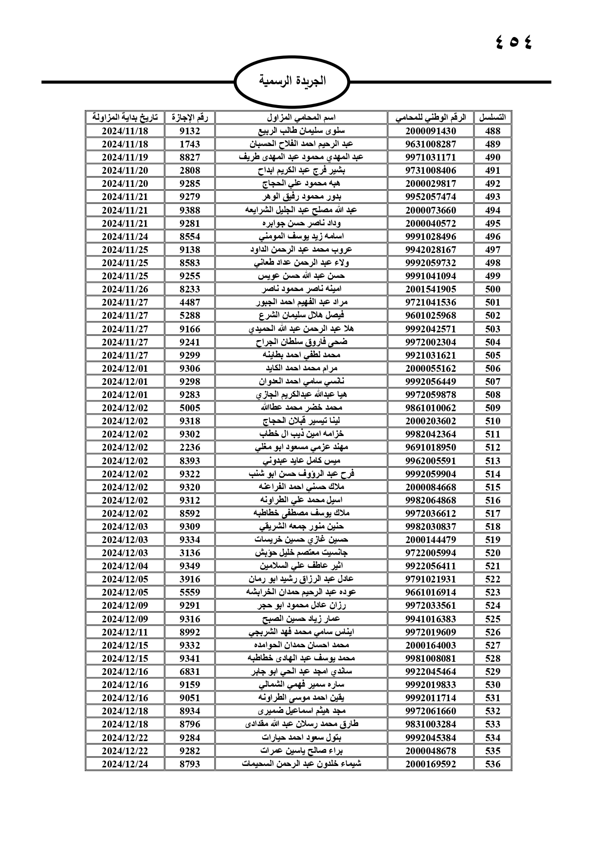 نشرت دائرة قاضي القضاة أسماء المحامين الشرعيين الدافعين للرسم السنوي لمزاولة مهنة المحاماة الشرعية، والبالغ عددهم 536.