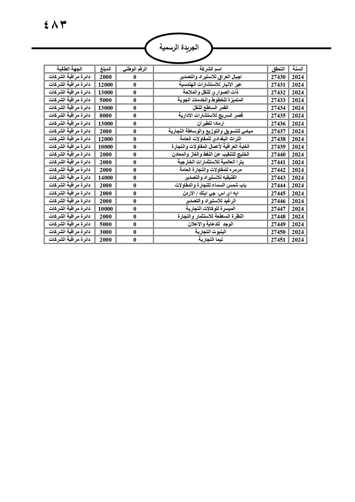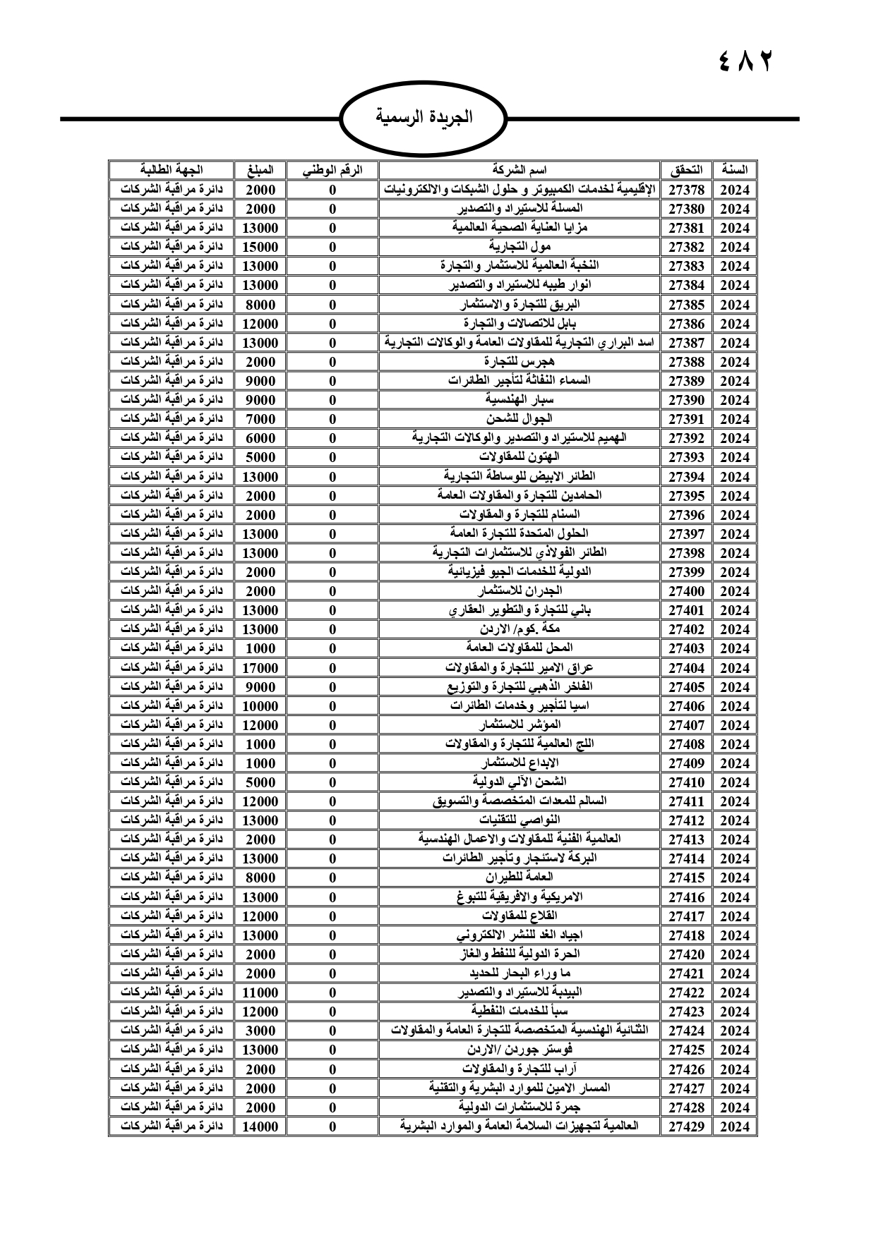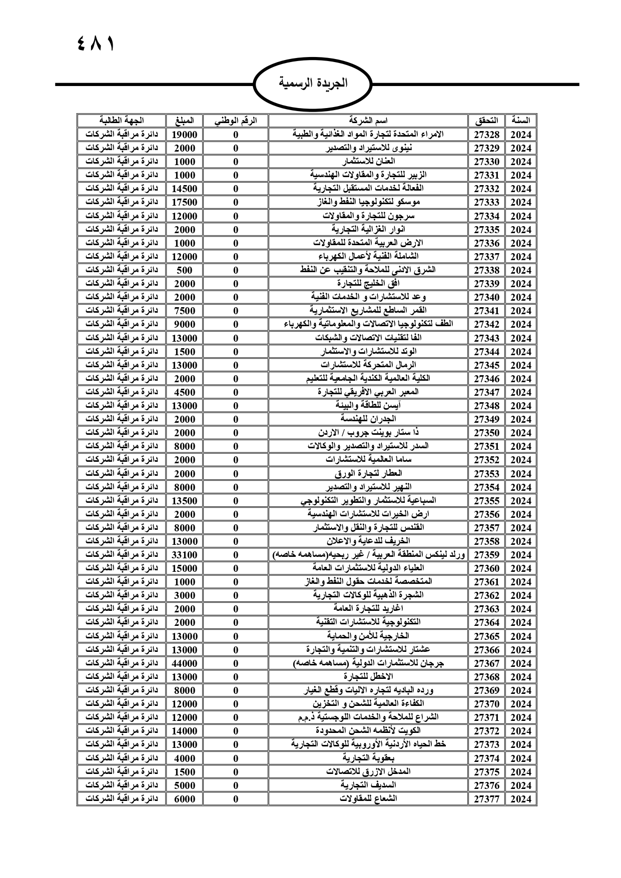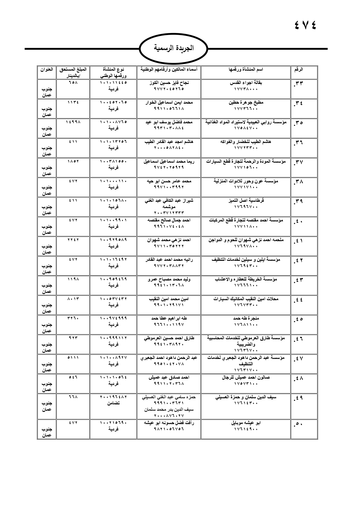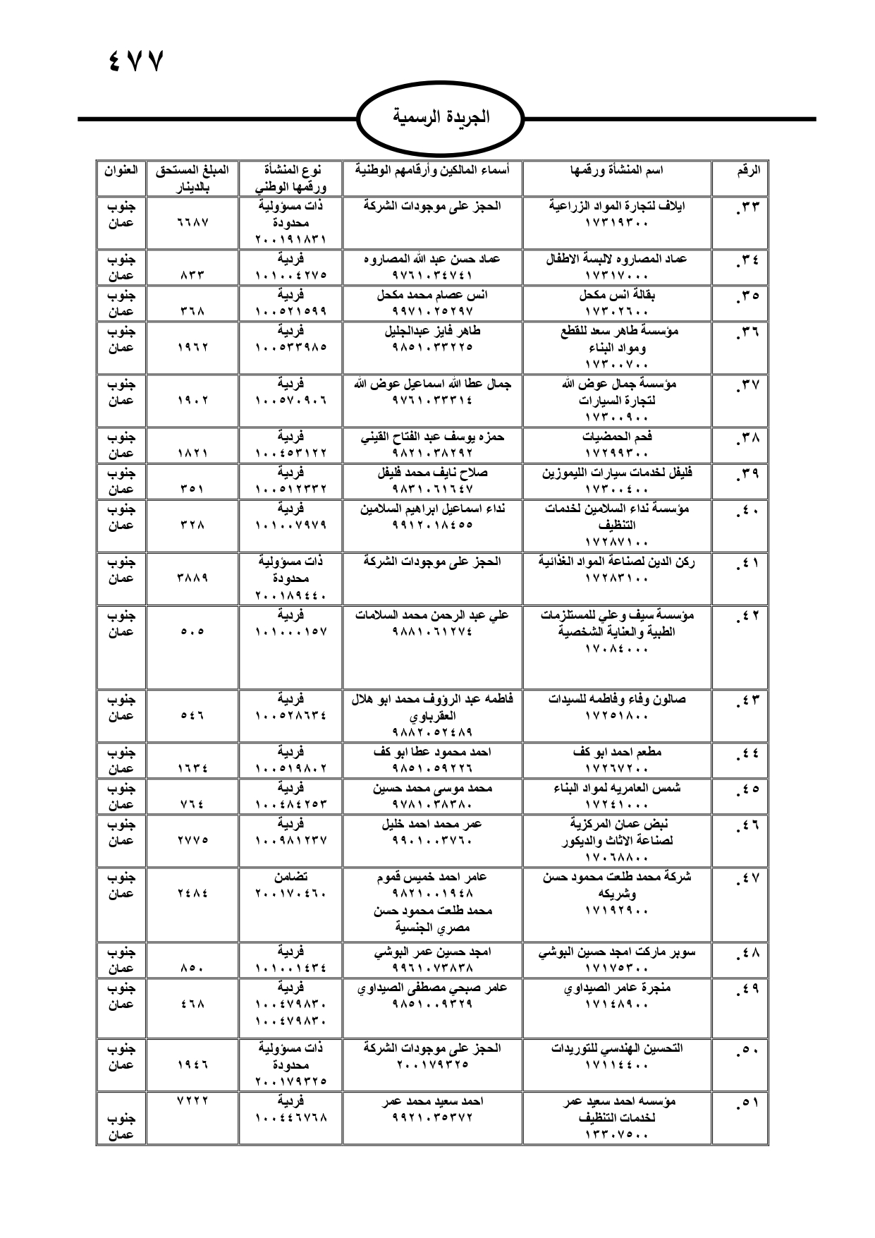 صدر في الجريدة الرسمية، الثلاثاء، مطالبات مالية بحق مدانين لصالح تنمية أموال الأيتام، ومؤسسة تنمية أموال الأيتام، ودائرة الجمارك، والمؤسسة العامة للضمان الاجتماعي، ووزارة المالية، وفي حال عدم تسوية أوضاعهم سيتم اتخاذ الإجراءات القانونية بحقهم