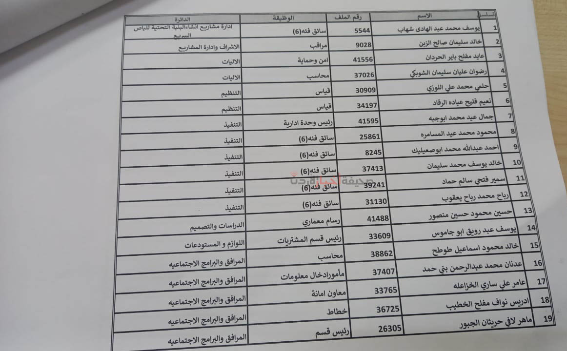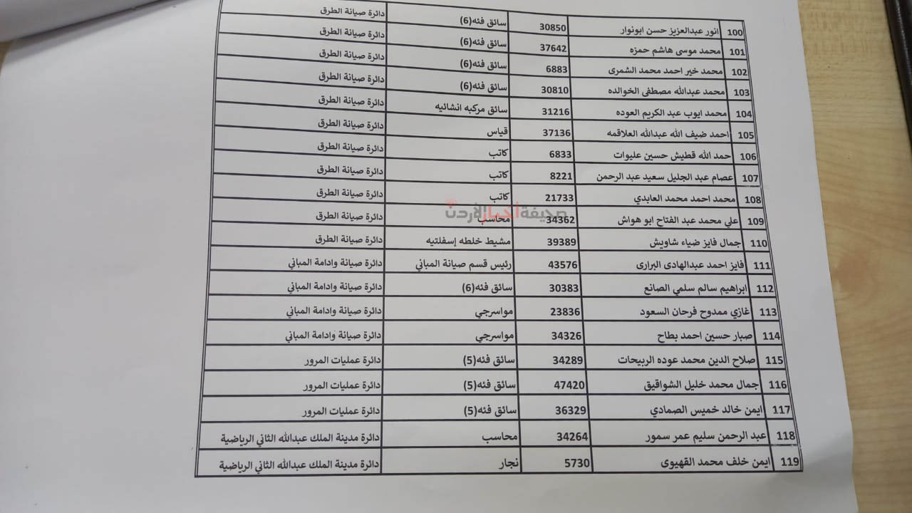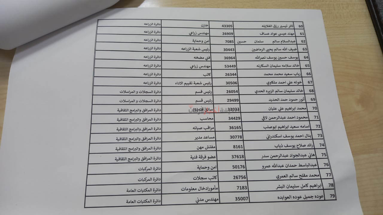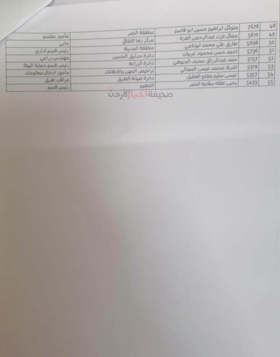 قرر مجلس أمانة عمان الكبرى، خلال جلسته التي عقدها اليوم الثلاثاء، إحالة 620 موظفًا إلى التقاعد، وشملت القائمة رؤساء أقسام، ومديرين، وموظفين مصنفين في درجات عليا.