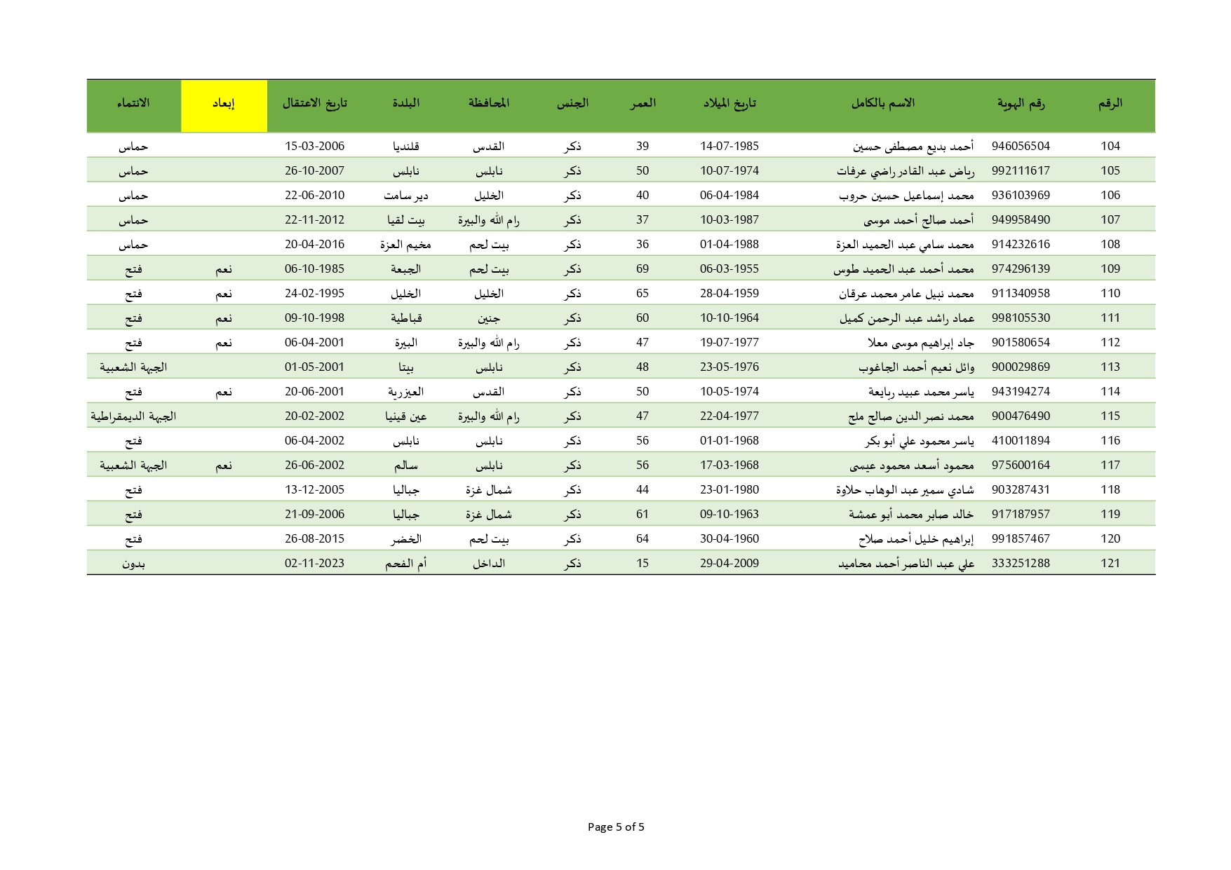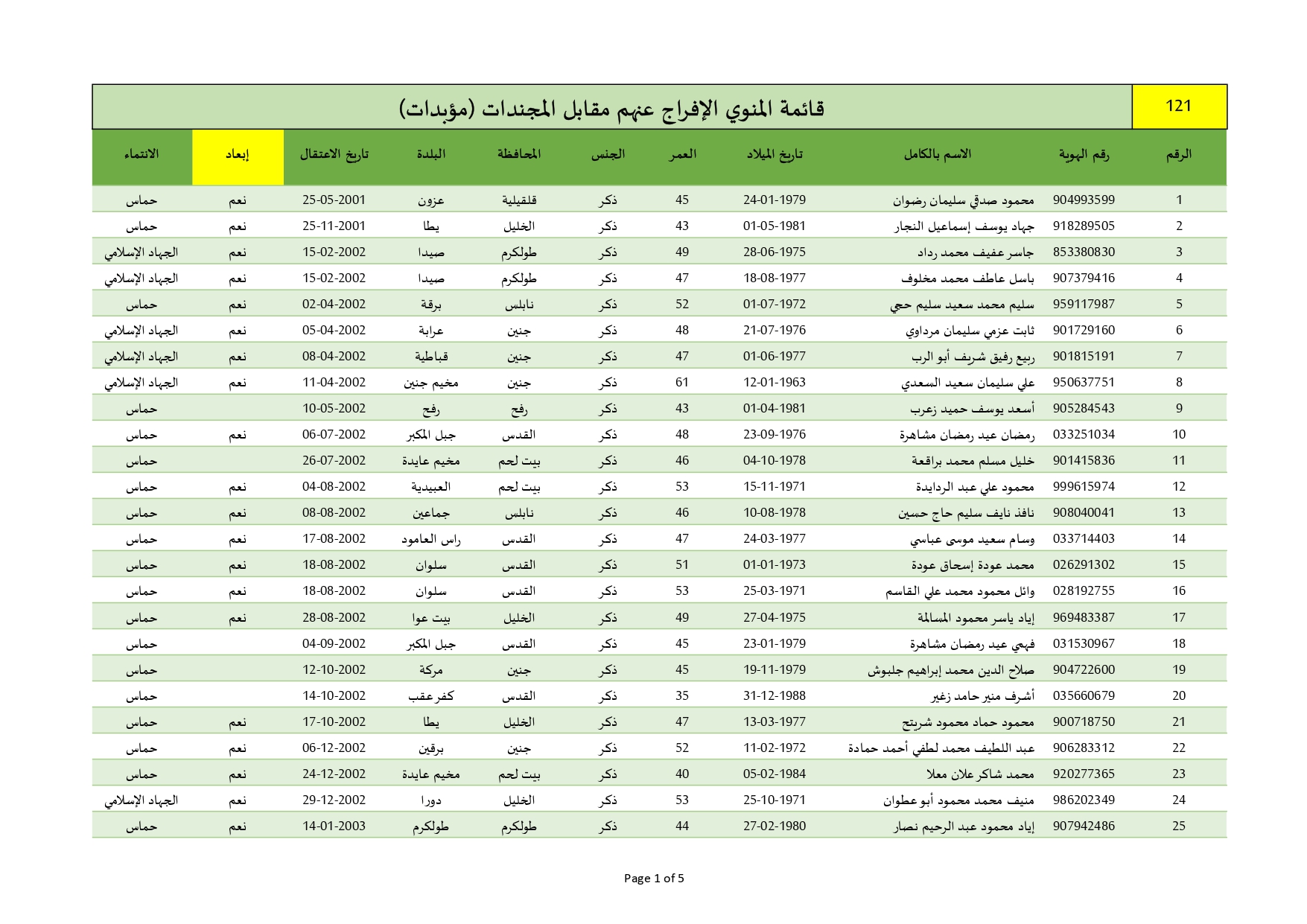 وفيما يلي قائمة الأسرى الذين سيتم الإفراج عنهم اليوم: