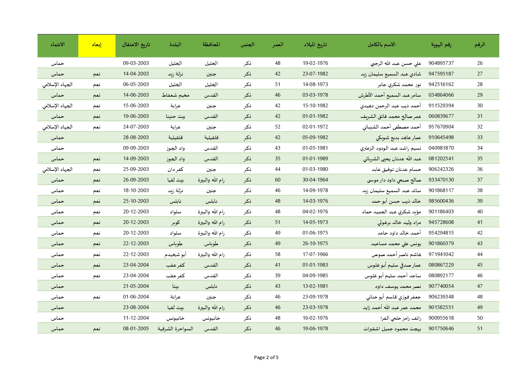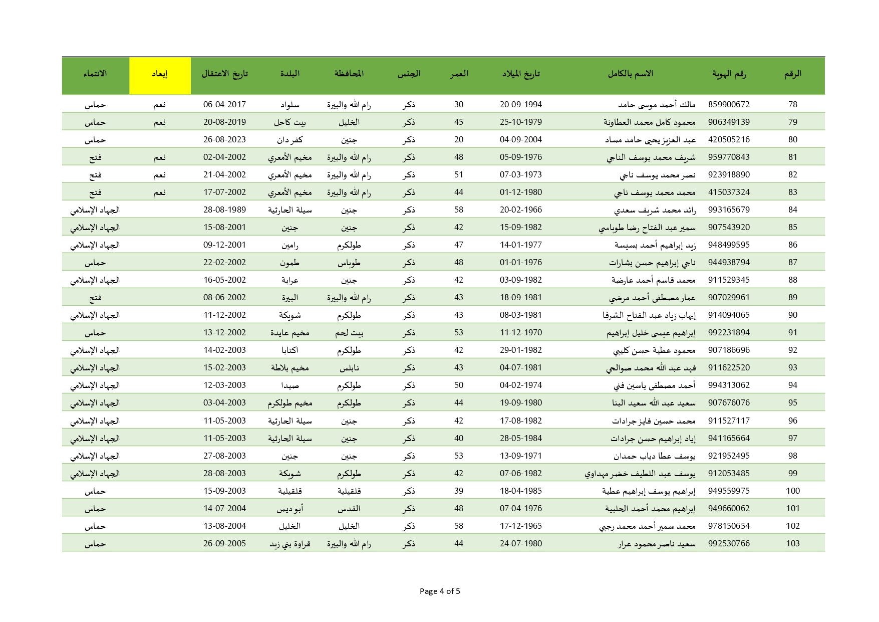 أسماء الأسرى المحررين ضمن الدفعة الثانية