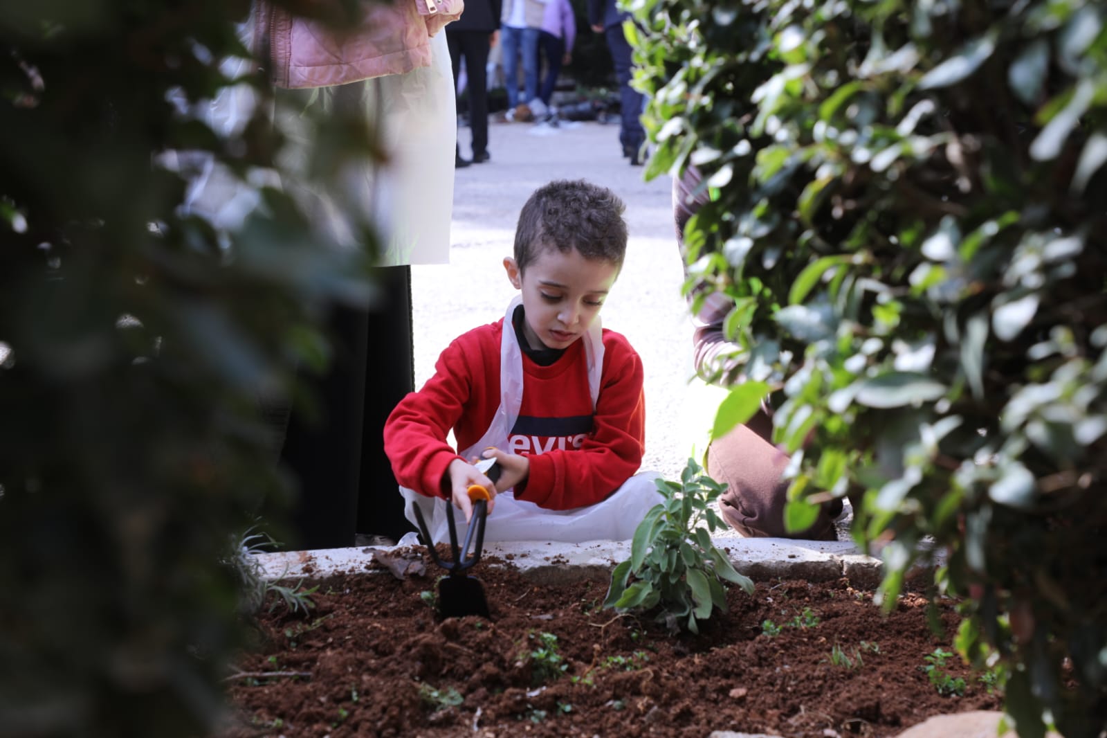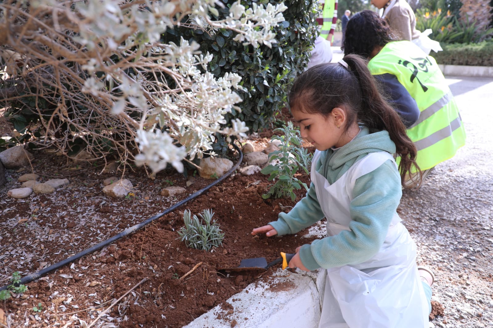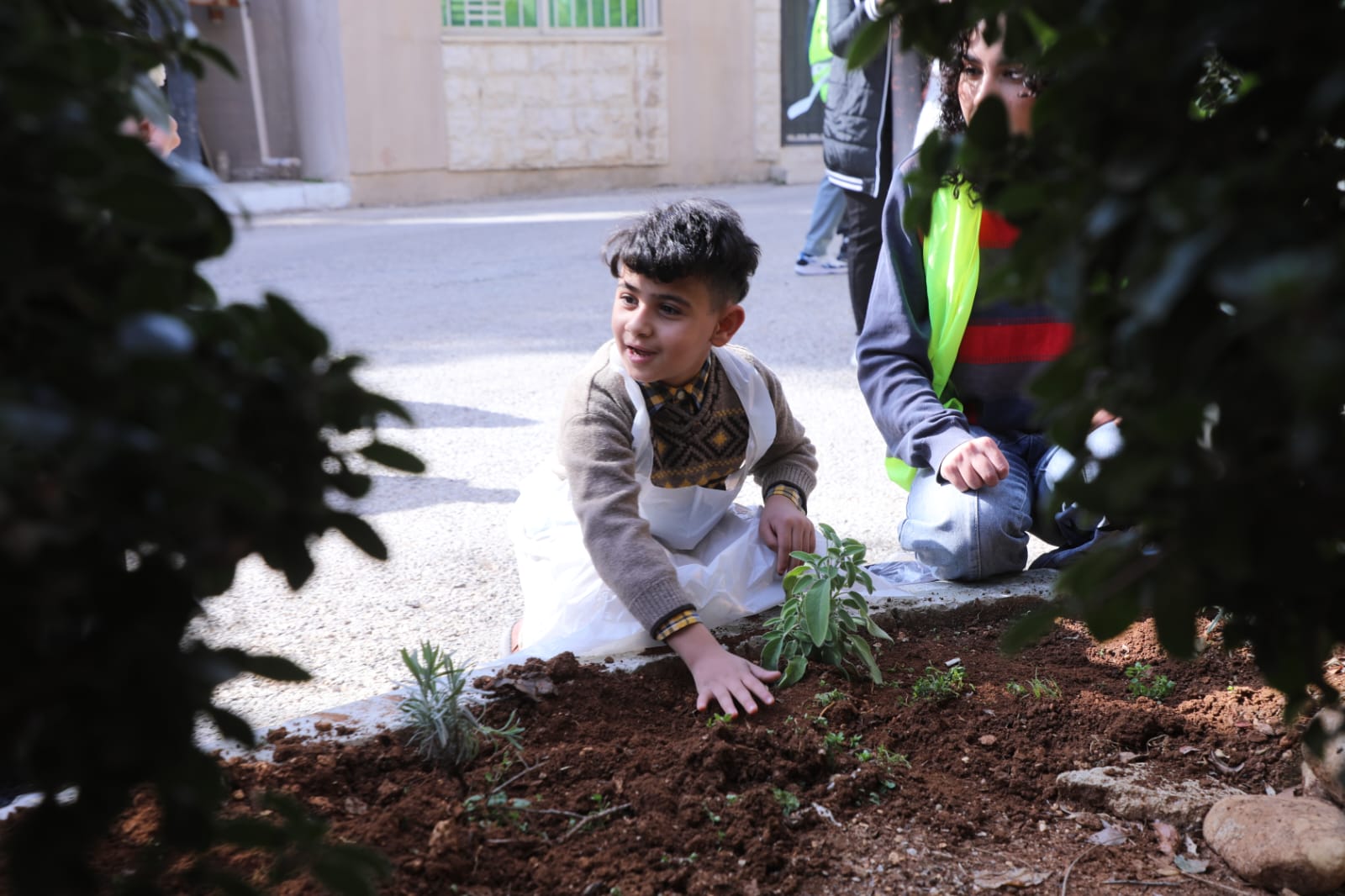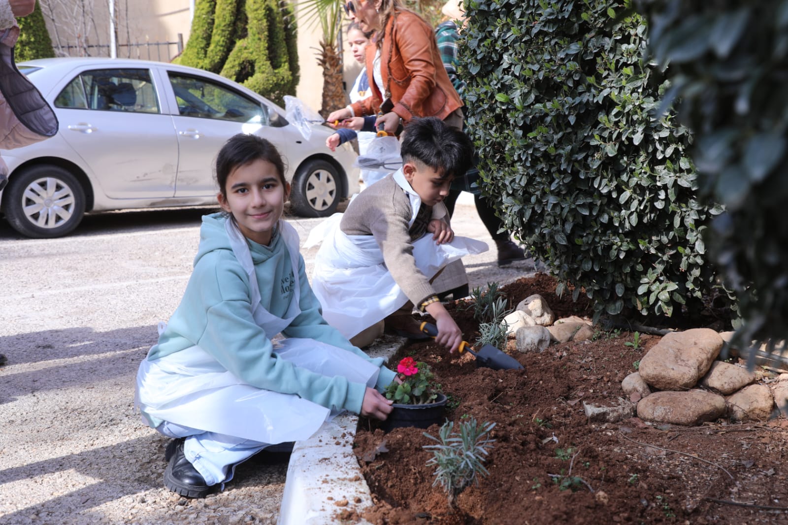 30 طفلا من محاربي السرطان يزرعون النباتات في كلية عمون الجامعية التطبيقية