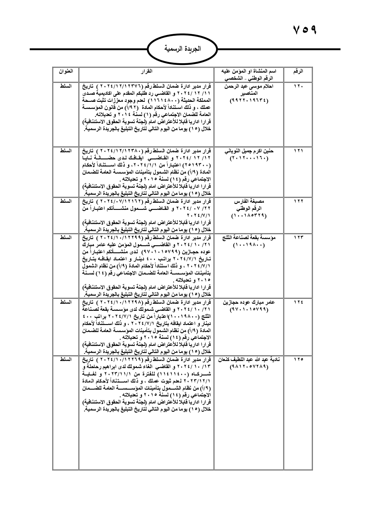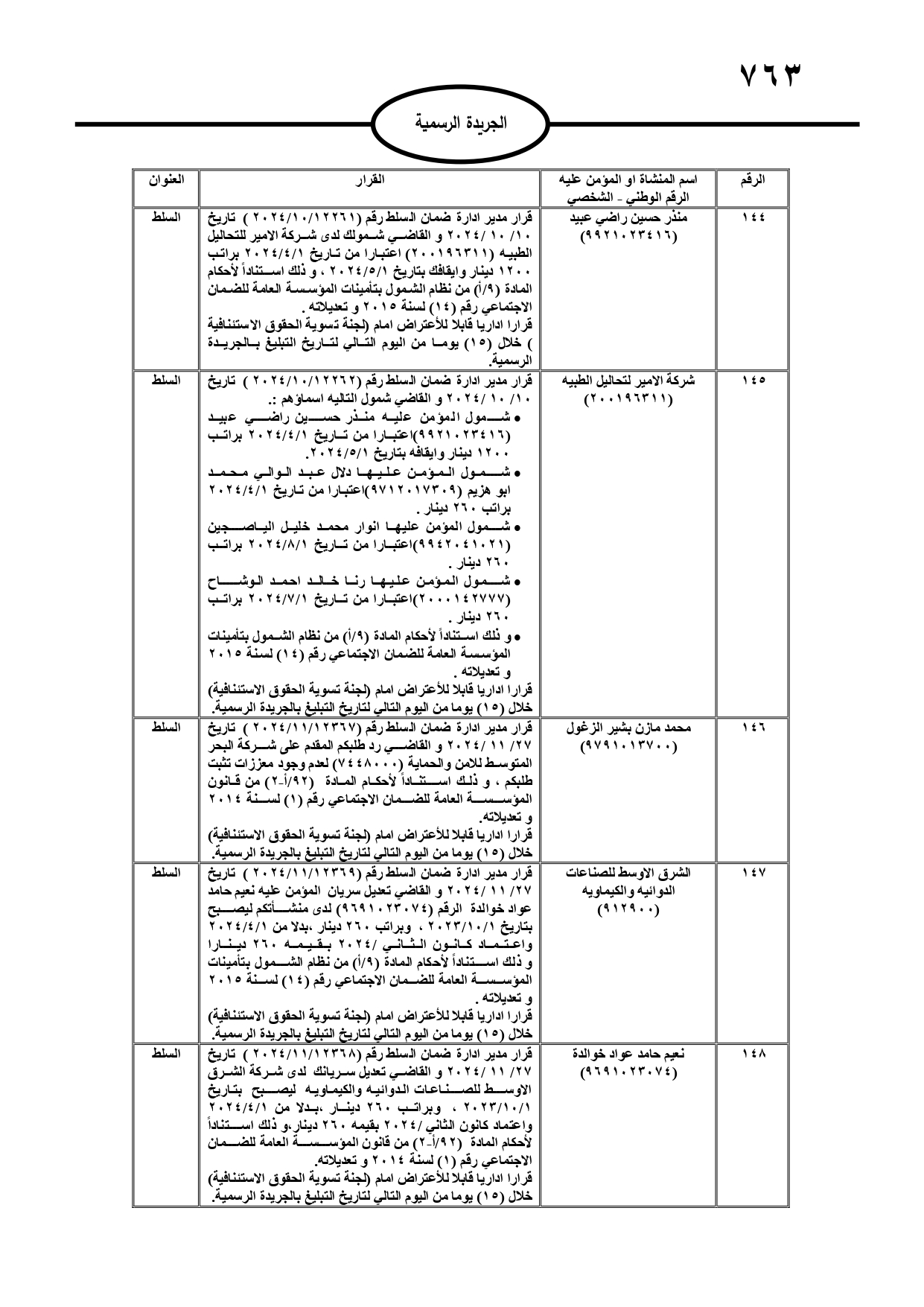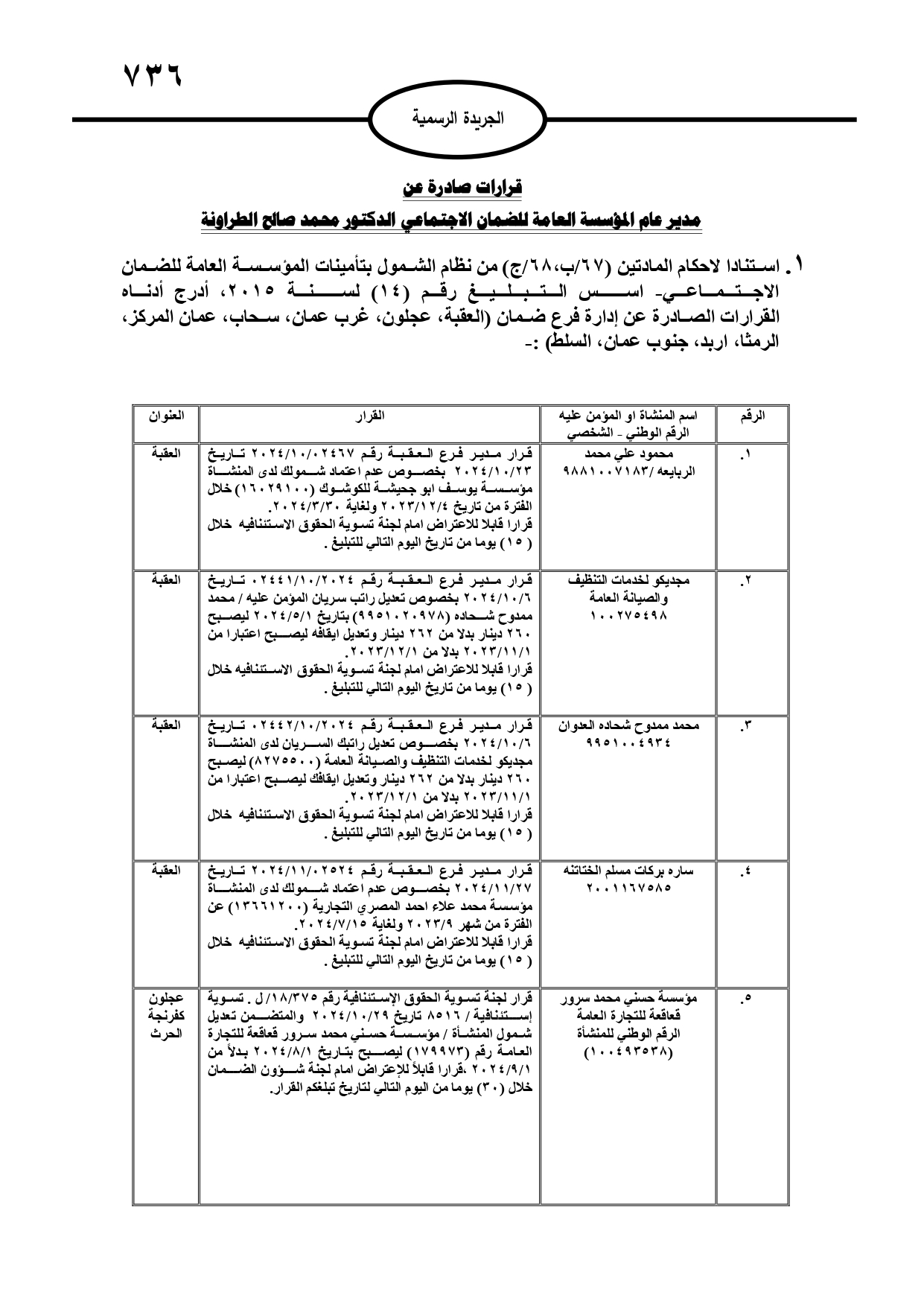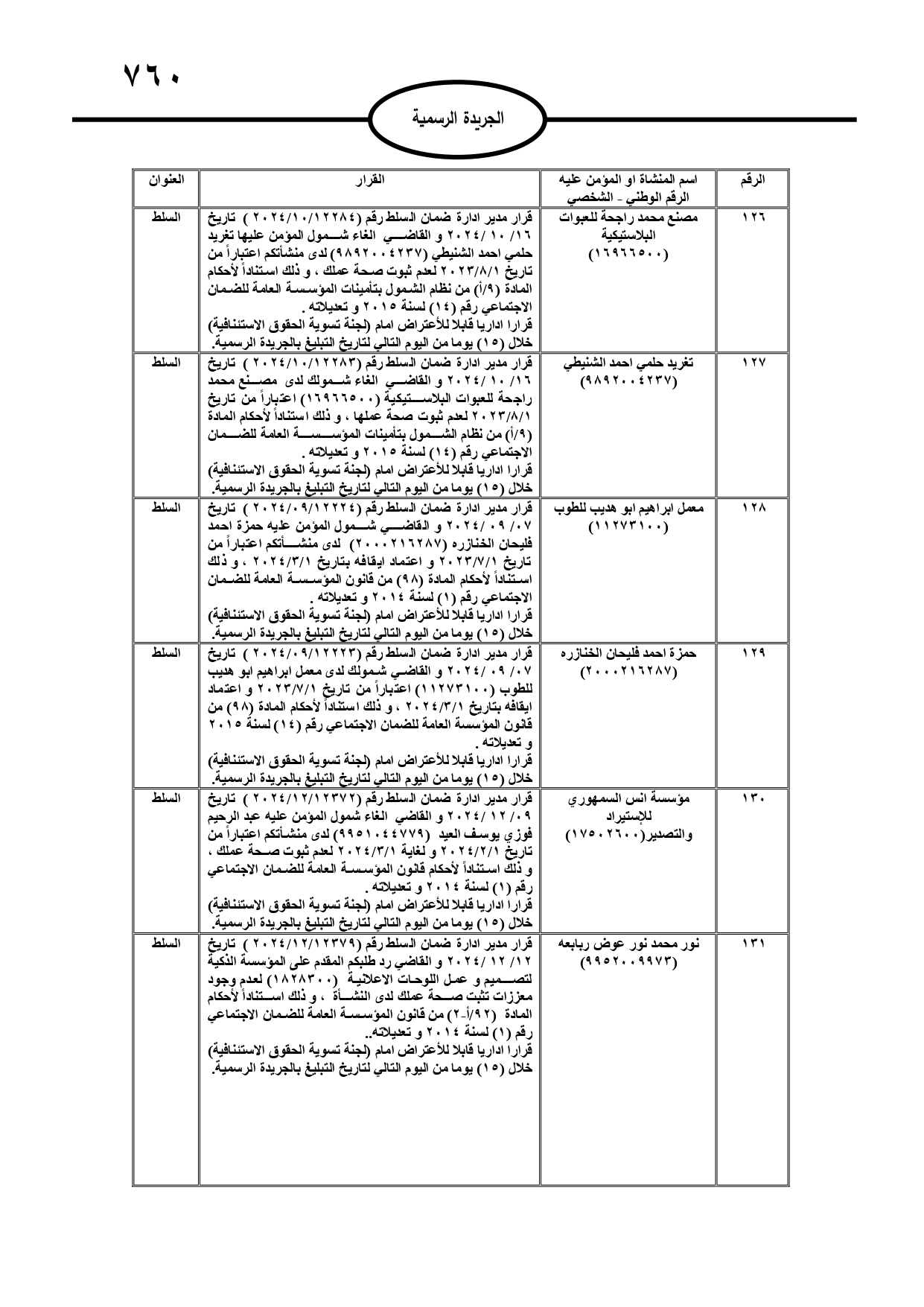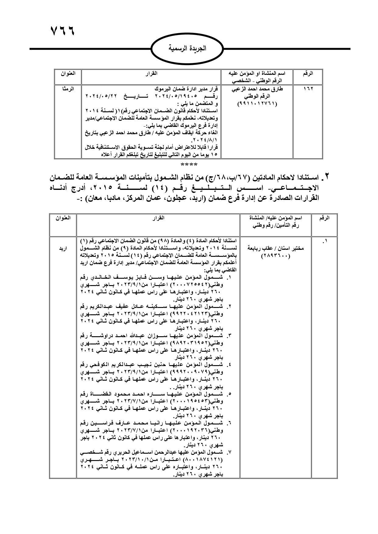 نُشر في عدد الجريدة الرسمية، الأحد، قرارات صادرة عن مدير عام المؤسسة العامة للضمان الاجتماعي.