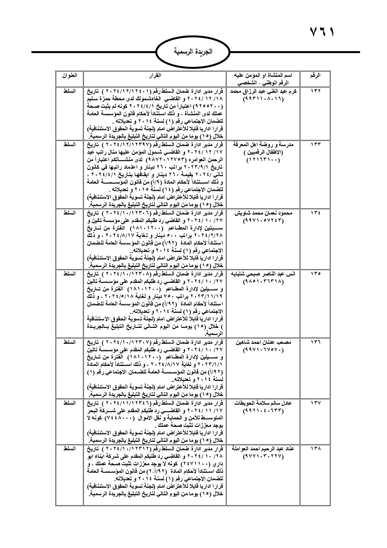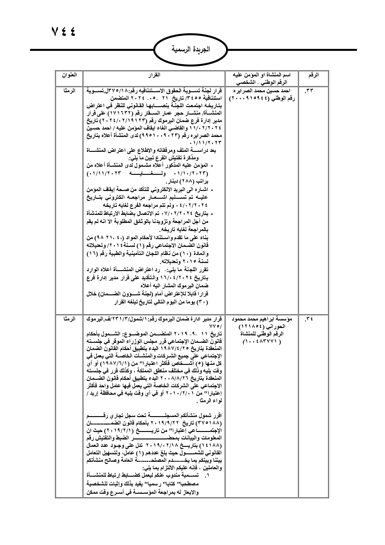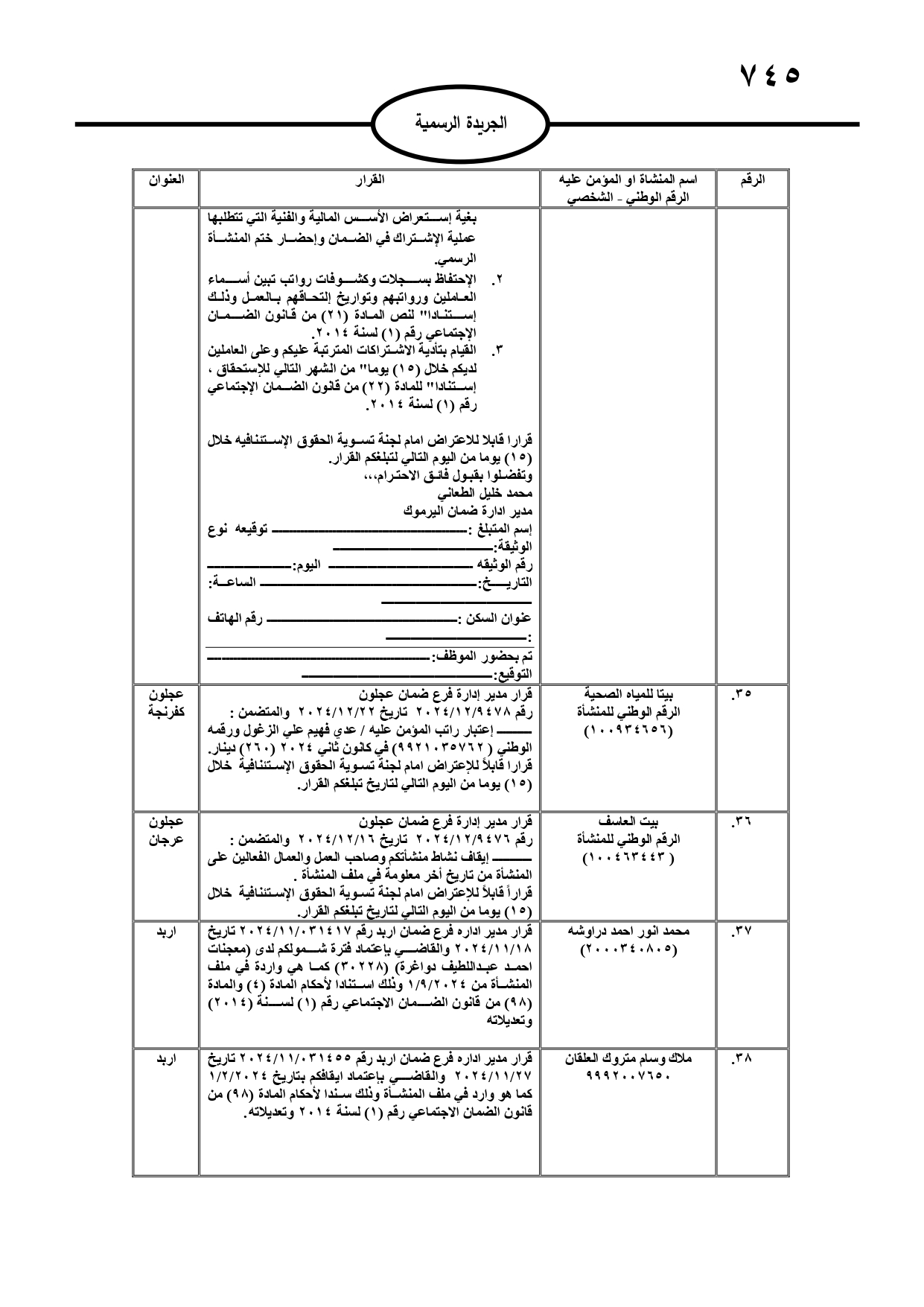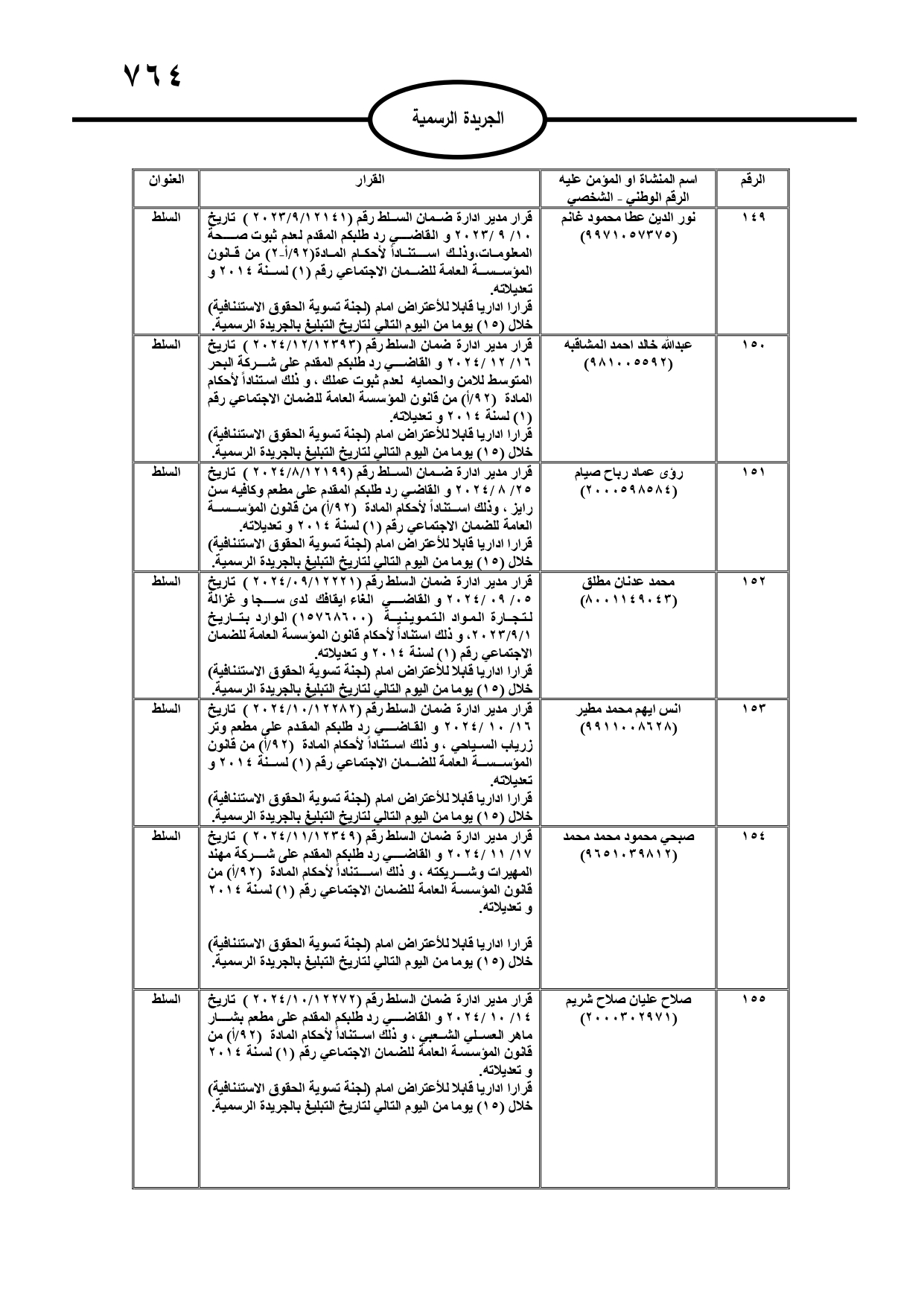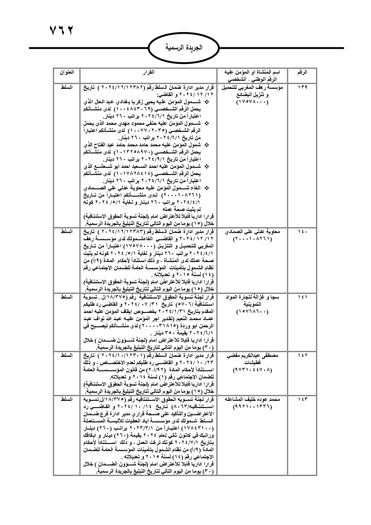 نُشر في عدد الجريدة الرسمية، الأحد، قرارات صادرة عن مدير عام المؤسسة العامة للضمان الاجتماعي.