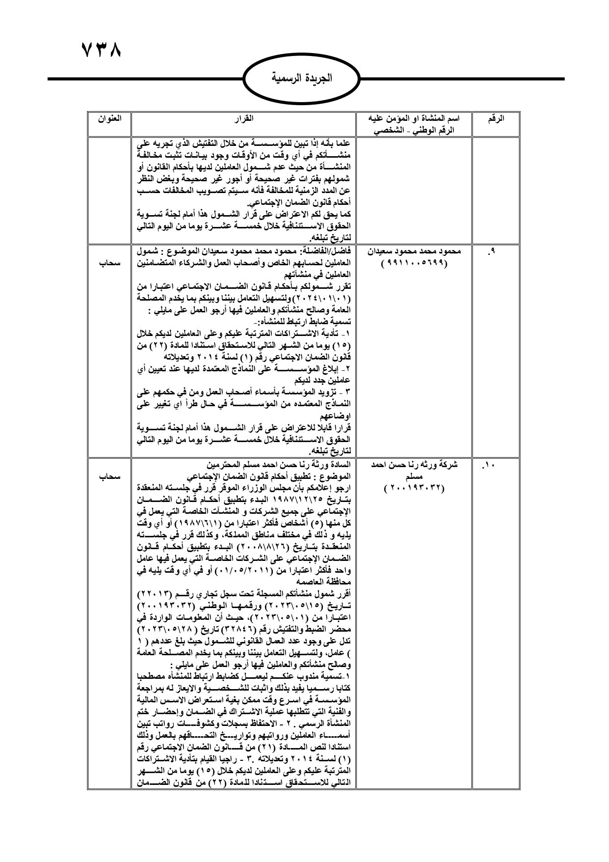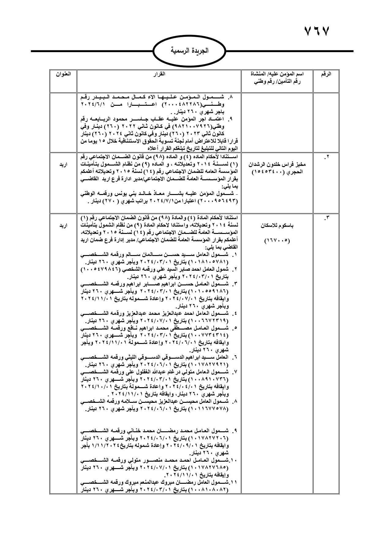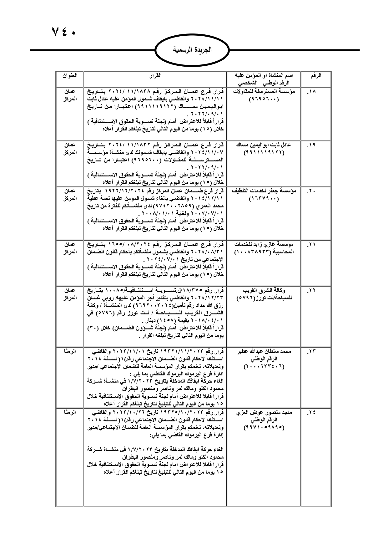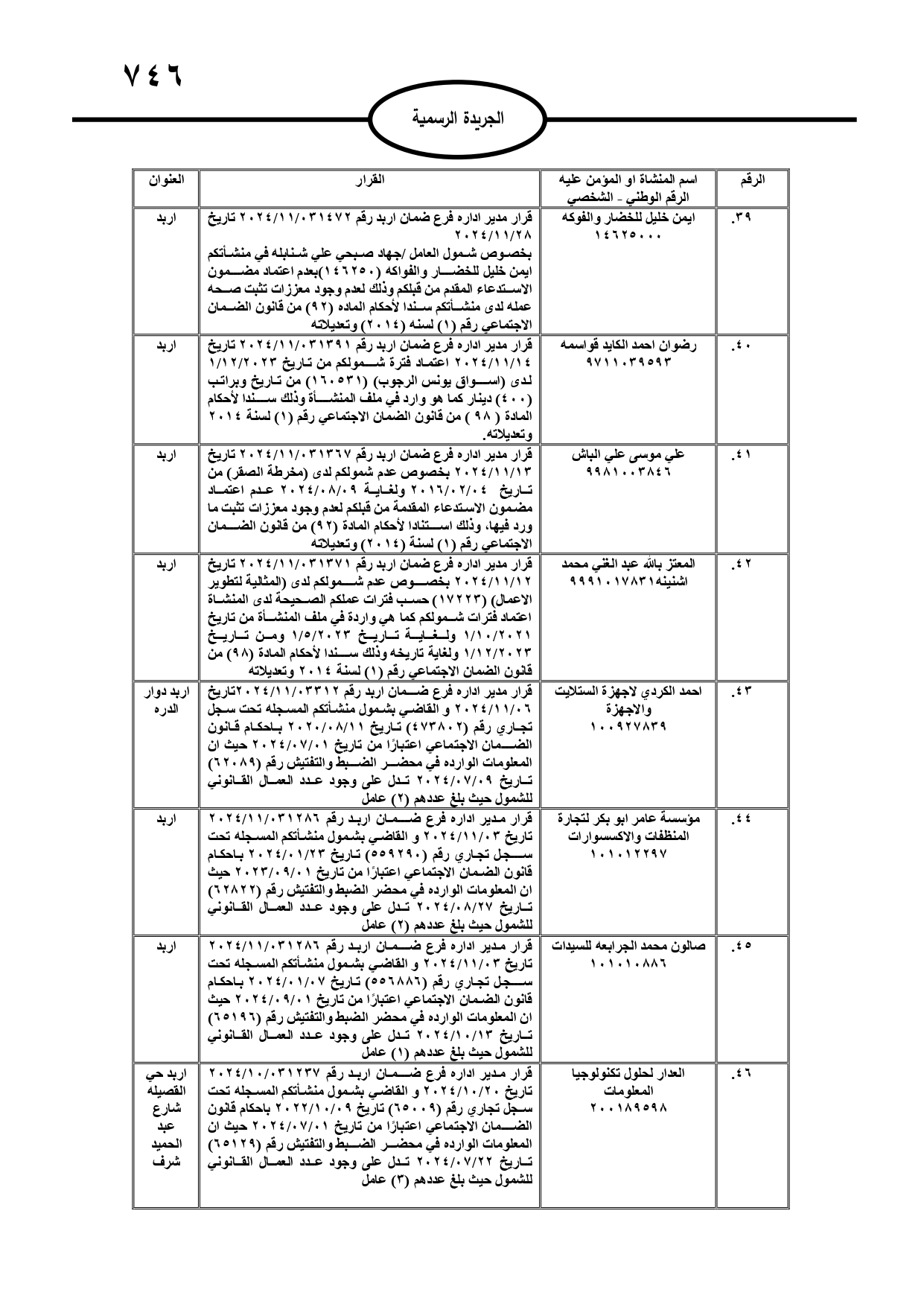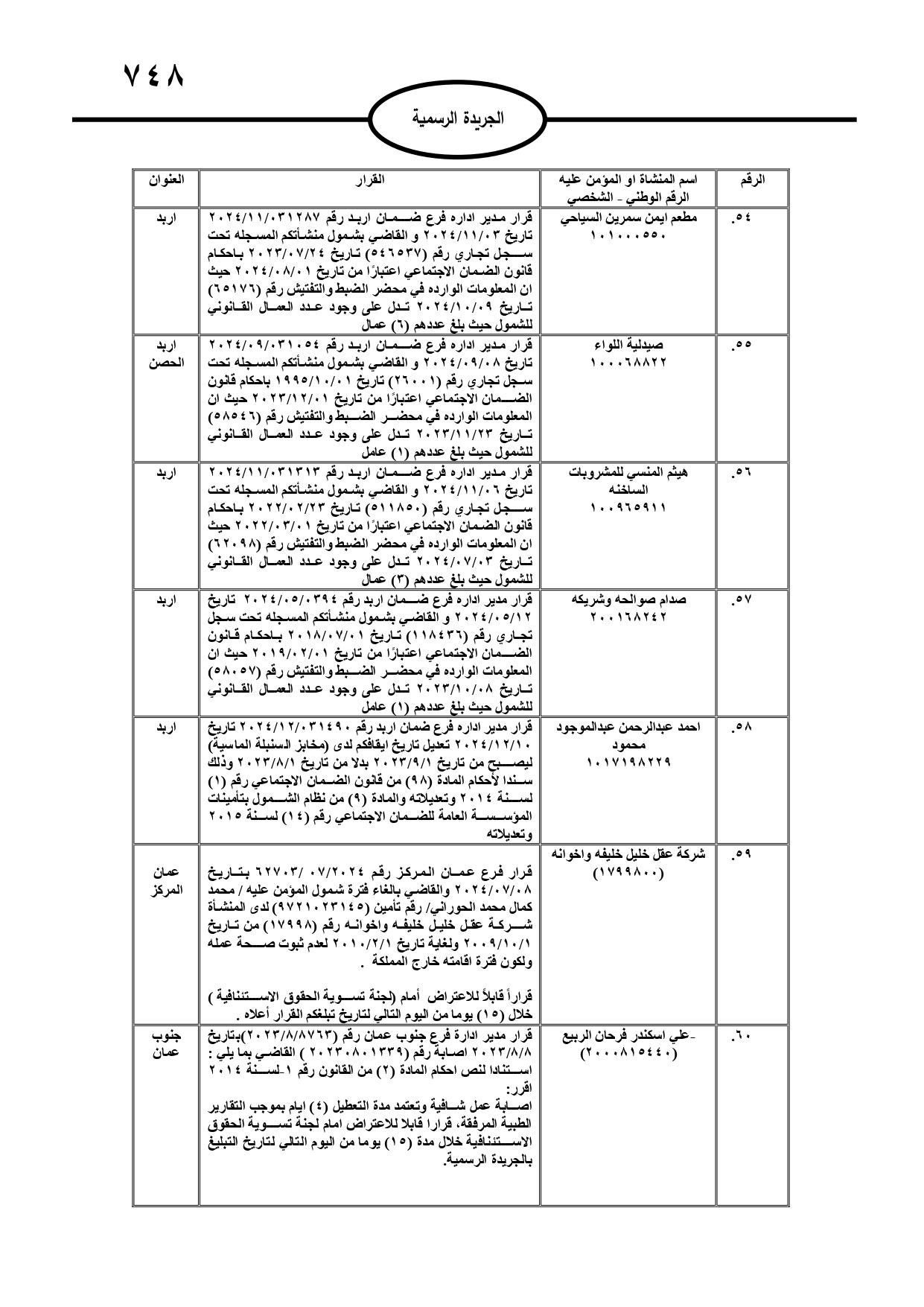 نُشر في عدد الجريدة الرسمية، الأحد، قرارات صادرة عن مدير عام المؤسسة العامة للضمان الاجتماعي.