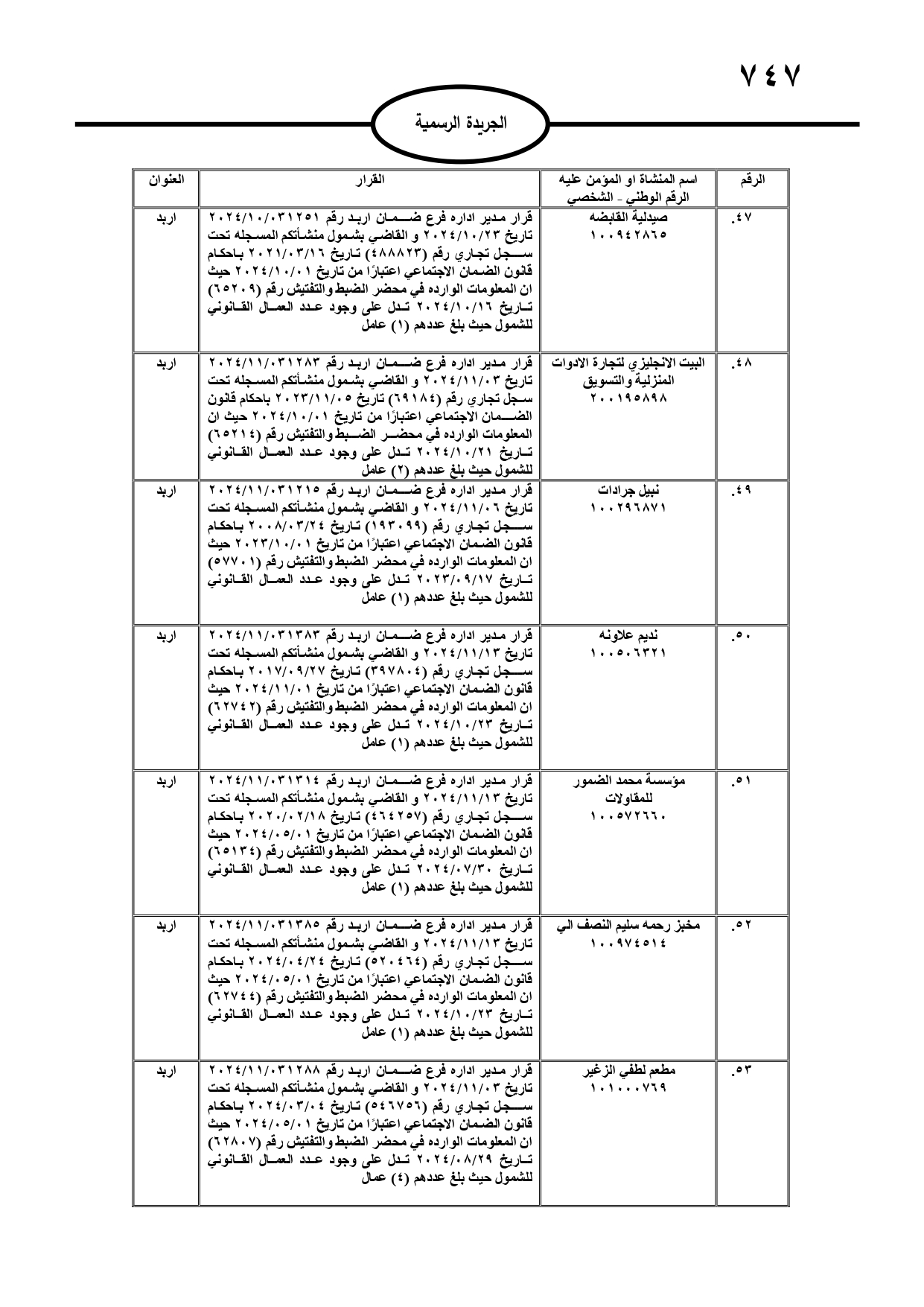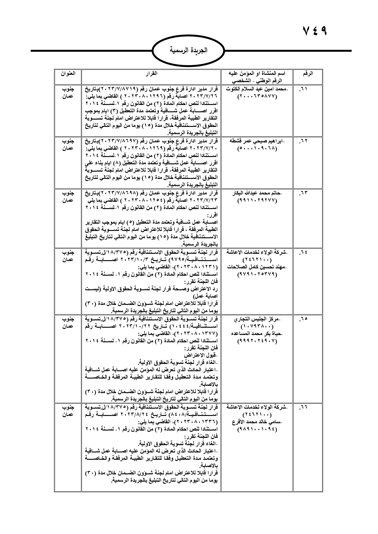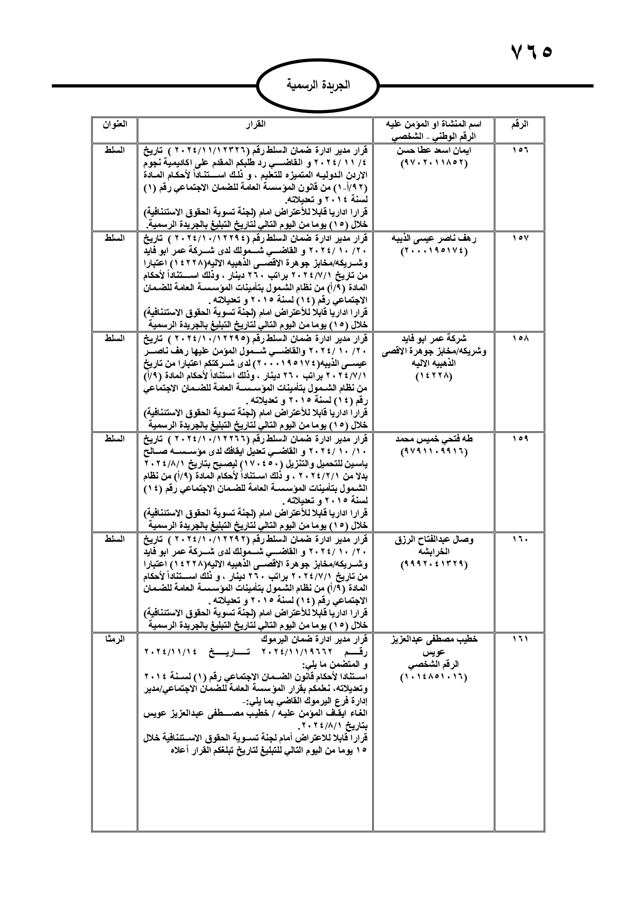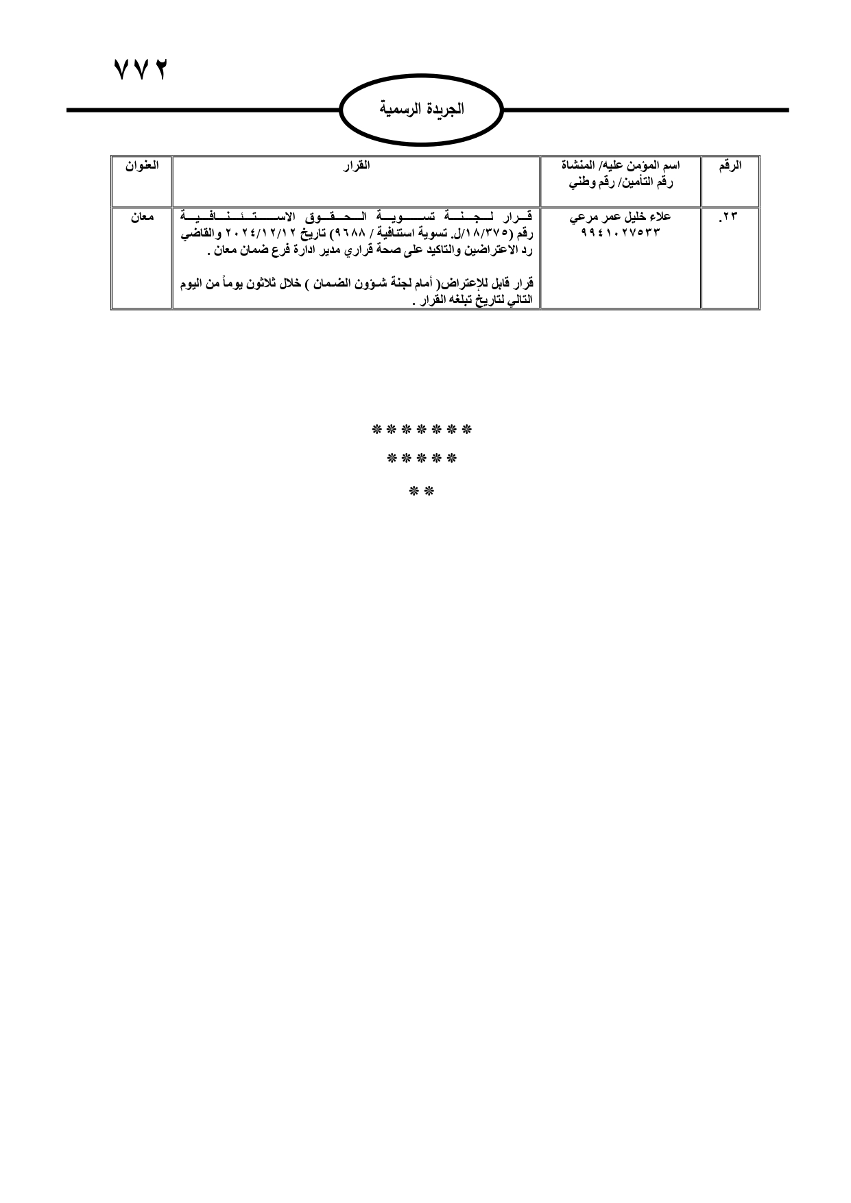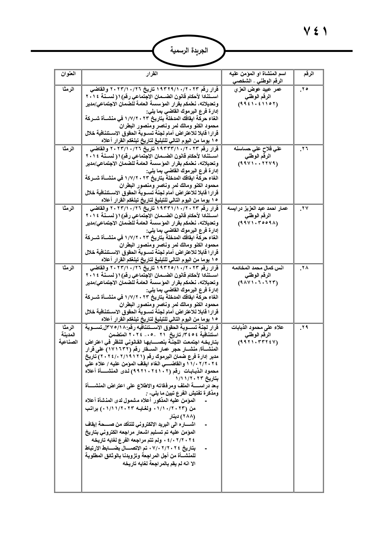 نُشر في عدد الجريدة الرسمية، الأحد، قرارات صادرة عن مدير عام المؤسسة العامة للضمان الاجتماعي.