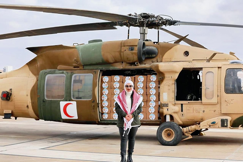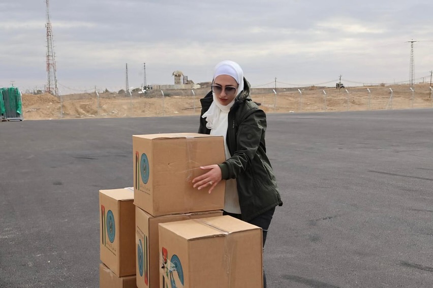 وشاركت الاستشارية النفسية الأسرية والتربوية، حنين البطوش، جنود القوات المسلحة الأردنية في إيصال المساعدات إلى قطاع غزة.