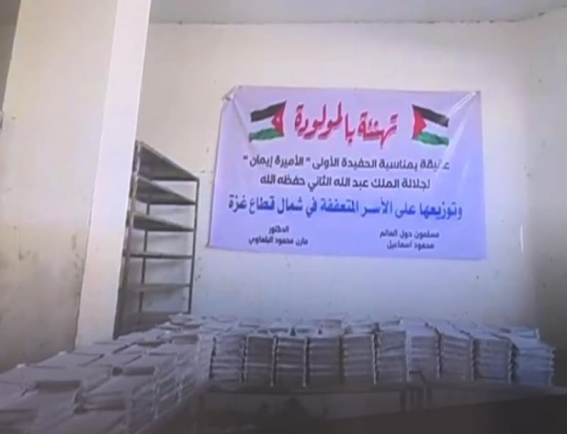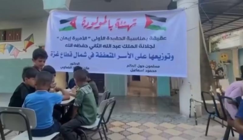 في لفتة إنسانية مليئة بالفرح رغم ما يعانيه أهالي شمال غزة من حصار ودمار نتيجة الحرب المستمرة منذ عام ونصف، أقاموا "عقيقة" بمناسبة قدوم سمو الأميرة إيمان بنت الحسين.