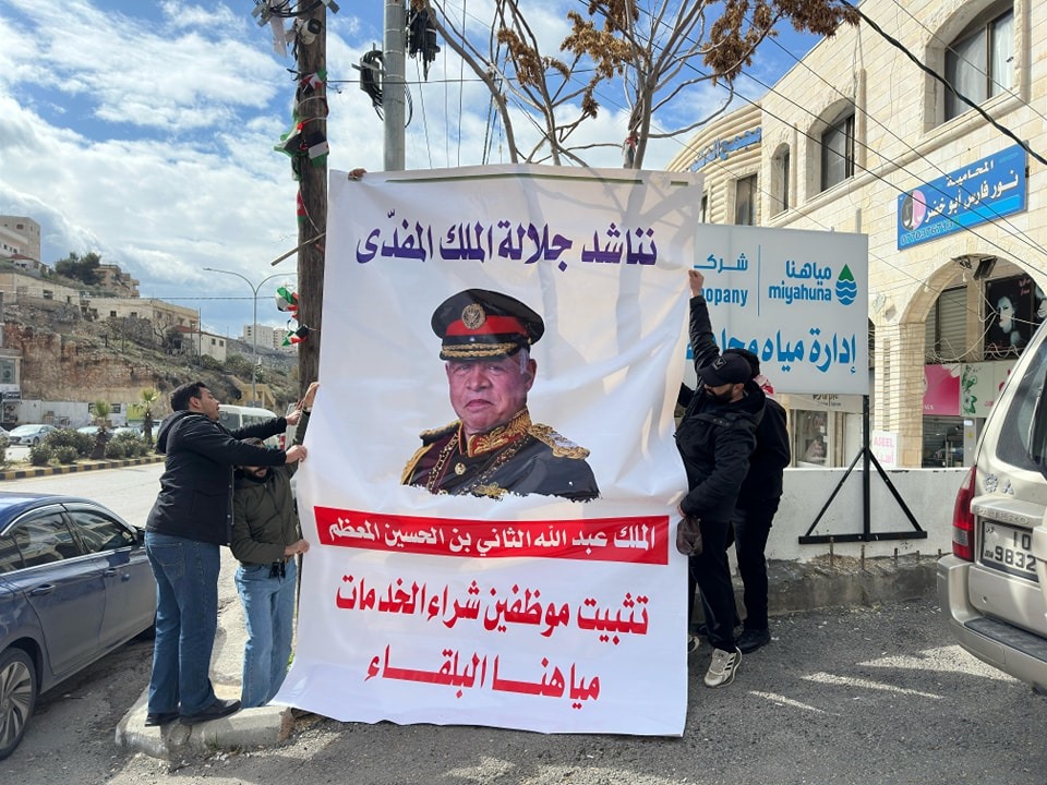 نفذ عدد من موظفي شراء الخدمات اعتصامًا اليوم أمام مقر شركة مياهنا في مدينة السلط، للمطالبة بتثبيتهم في وظائفهم وتحسين أوضاعهم الوظيفية.