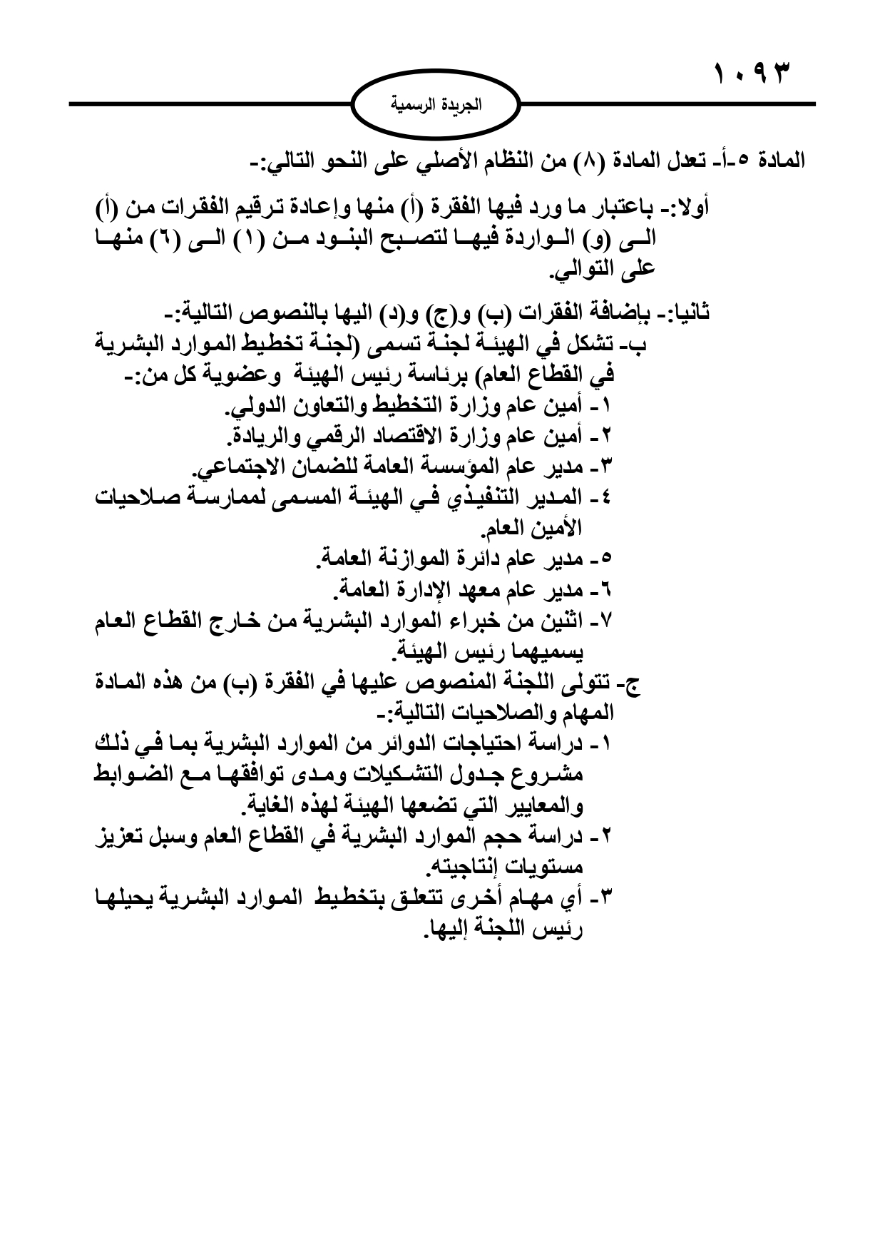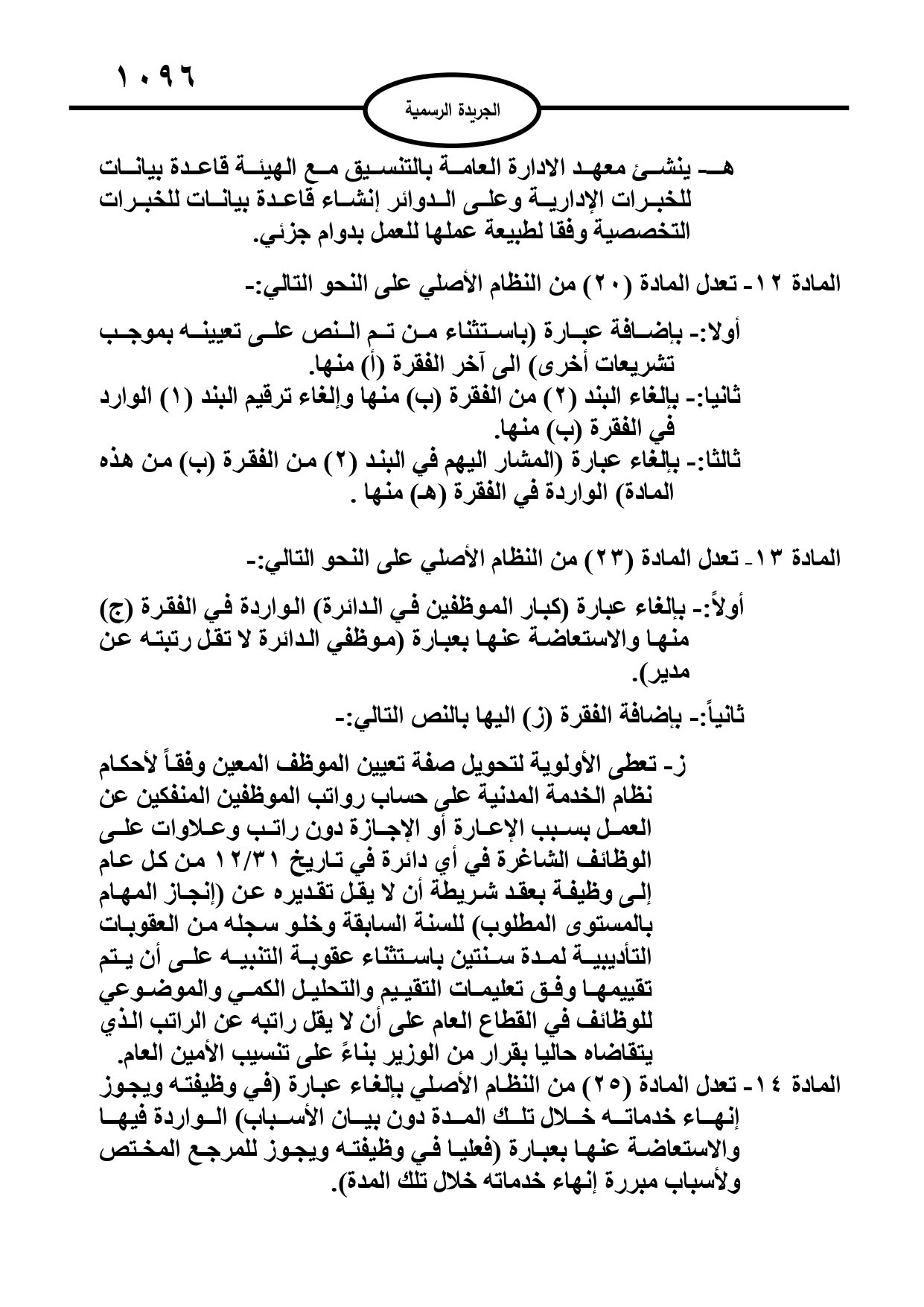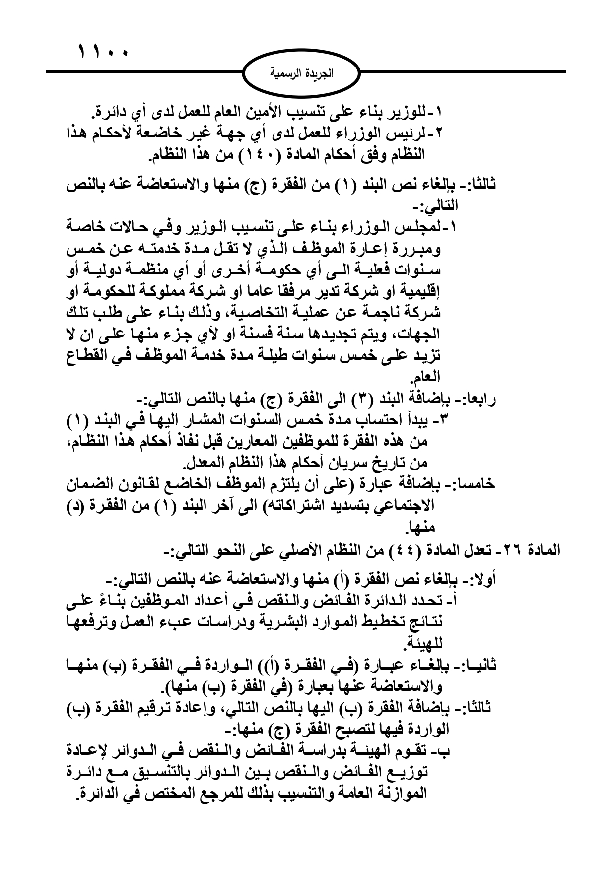 صدر في الجريدة الرسمية نظام معدل لنظام الموارد البشرية في القطاع العام، وتاليا نص النظام: