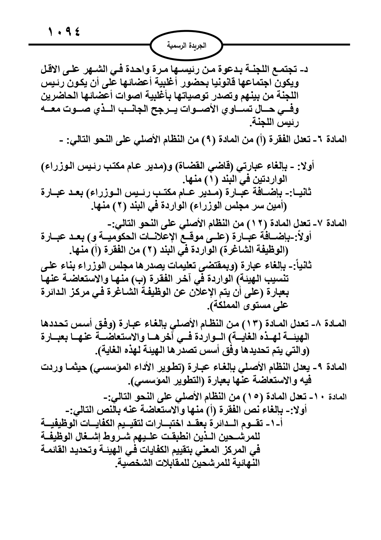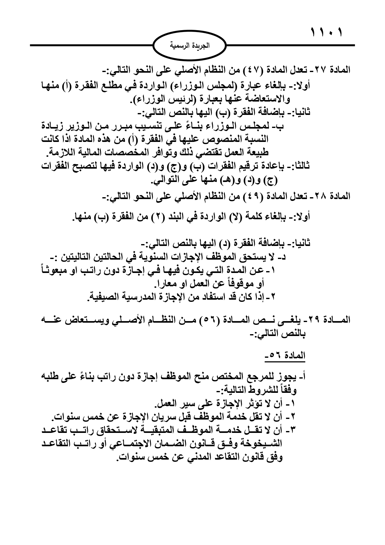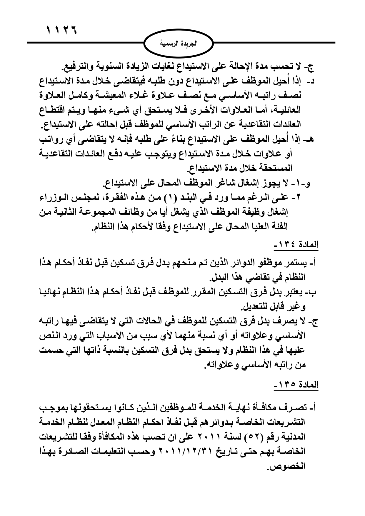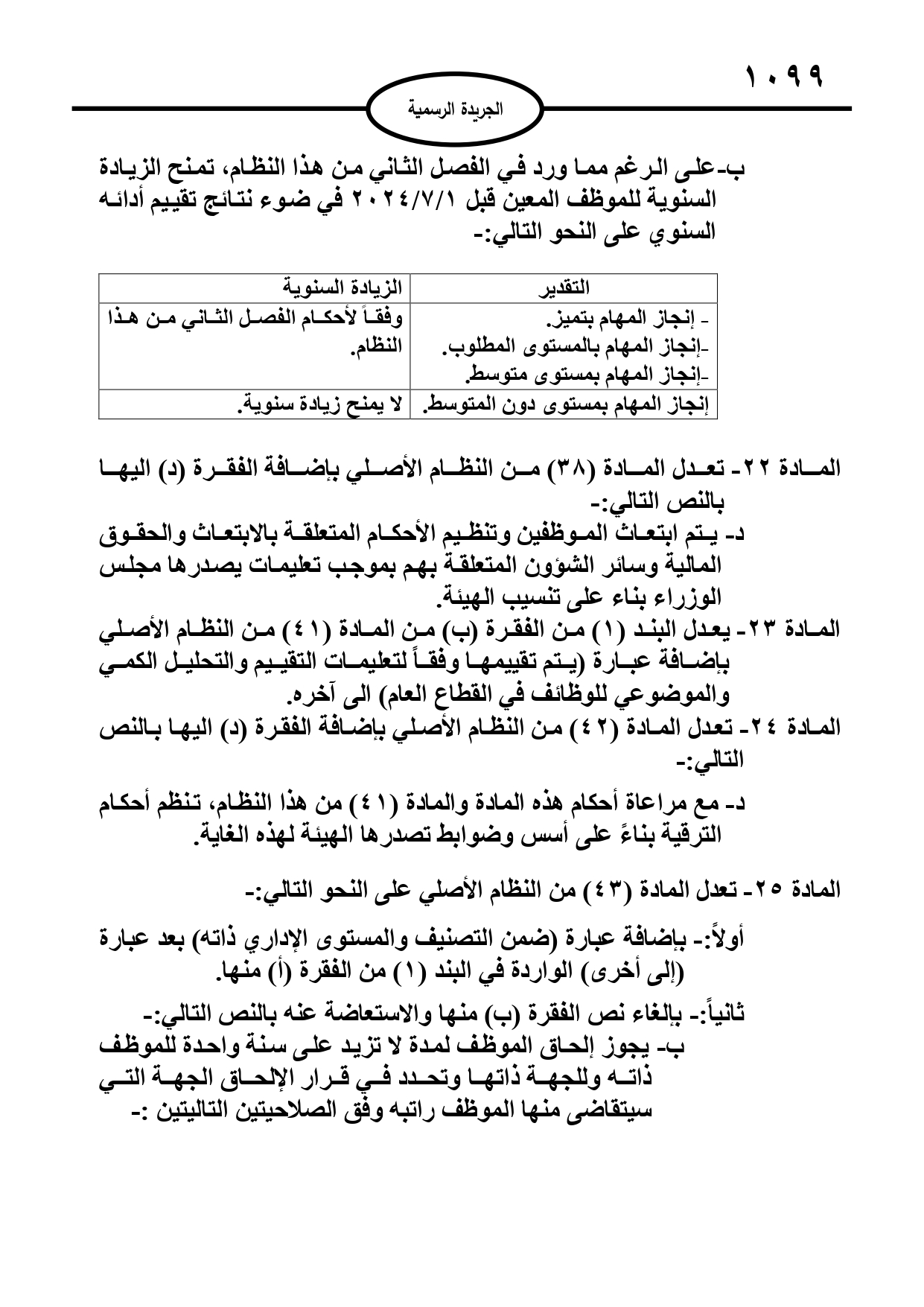 صدر في الجريدة الرسمية نظام معدل لنظام الموارد البشرية في القطاع العام، وتاليا نص النظام: