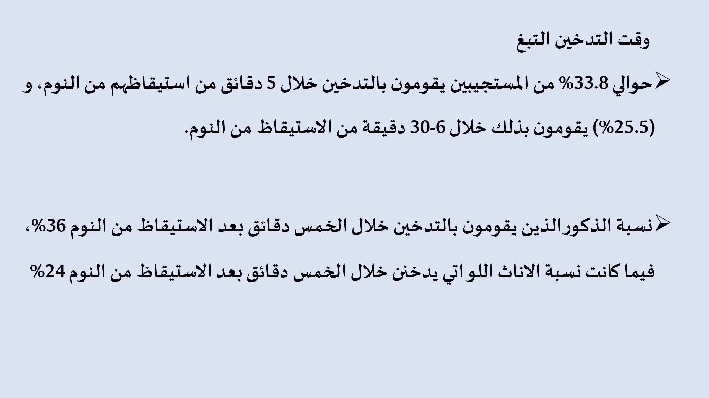 🔹 النسبة التي تدخن خلال أول 5 دقائق من الاستيقاظ: 33.8%