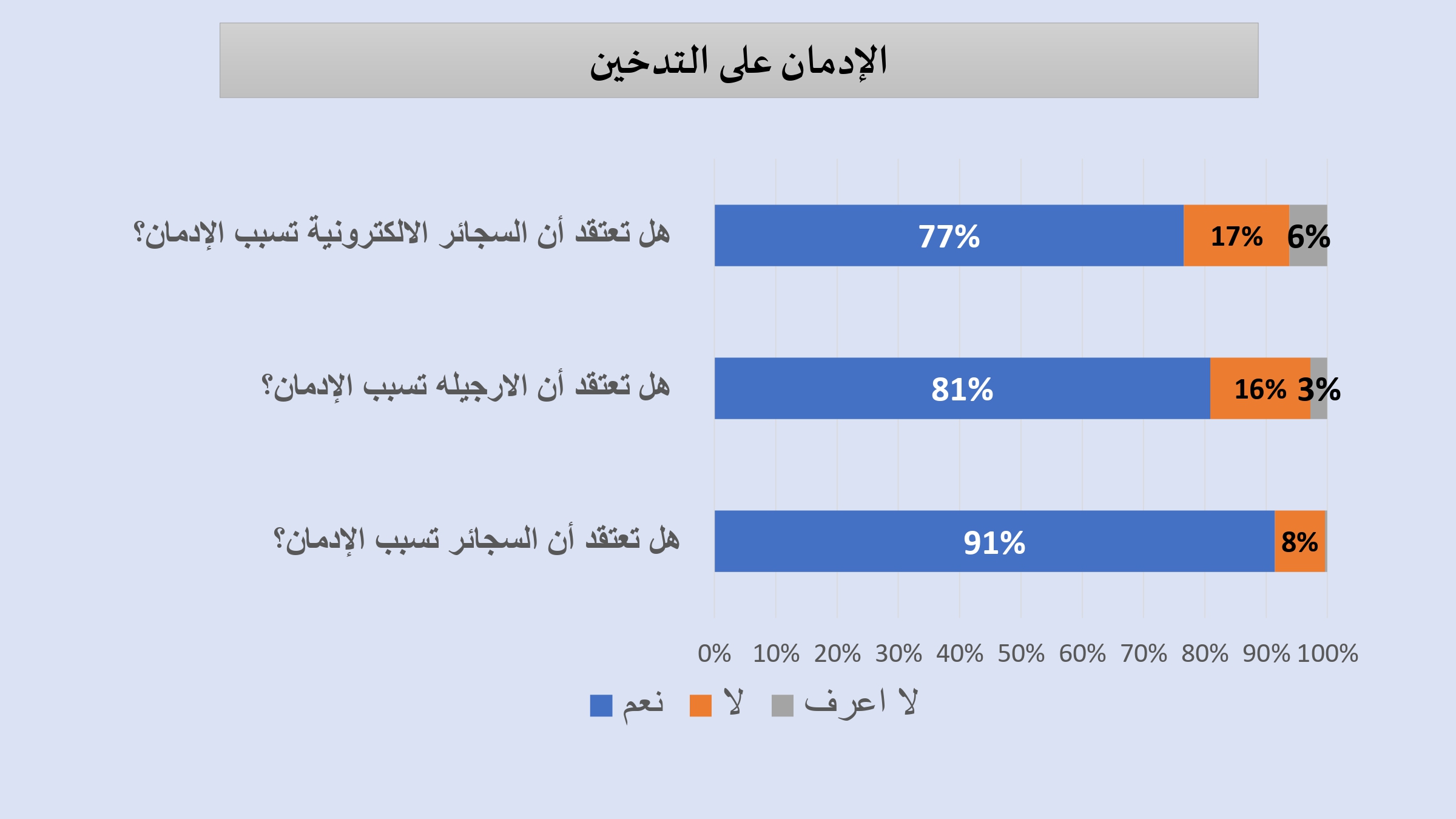وفيما يتعلق بالضرائب على التبغ، أبدى 53% من المشاركين تأييدهم لزيادة الضرائب على منتجات التبغ، من بينهم 33% من المدخنين أنفسهم، مما يعكس تزايد الوعي حول مخاطر التدخين وآثاره الصحية والاقتصادية.