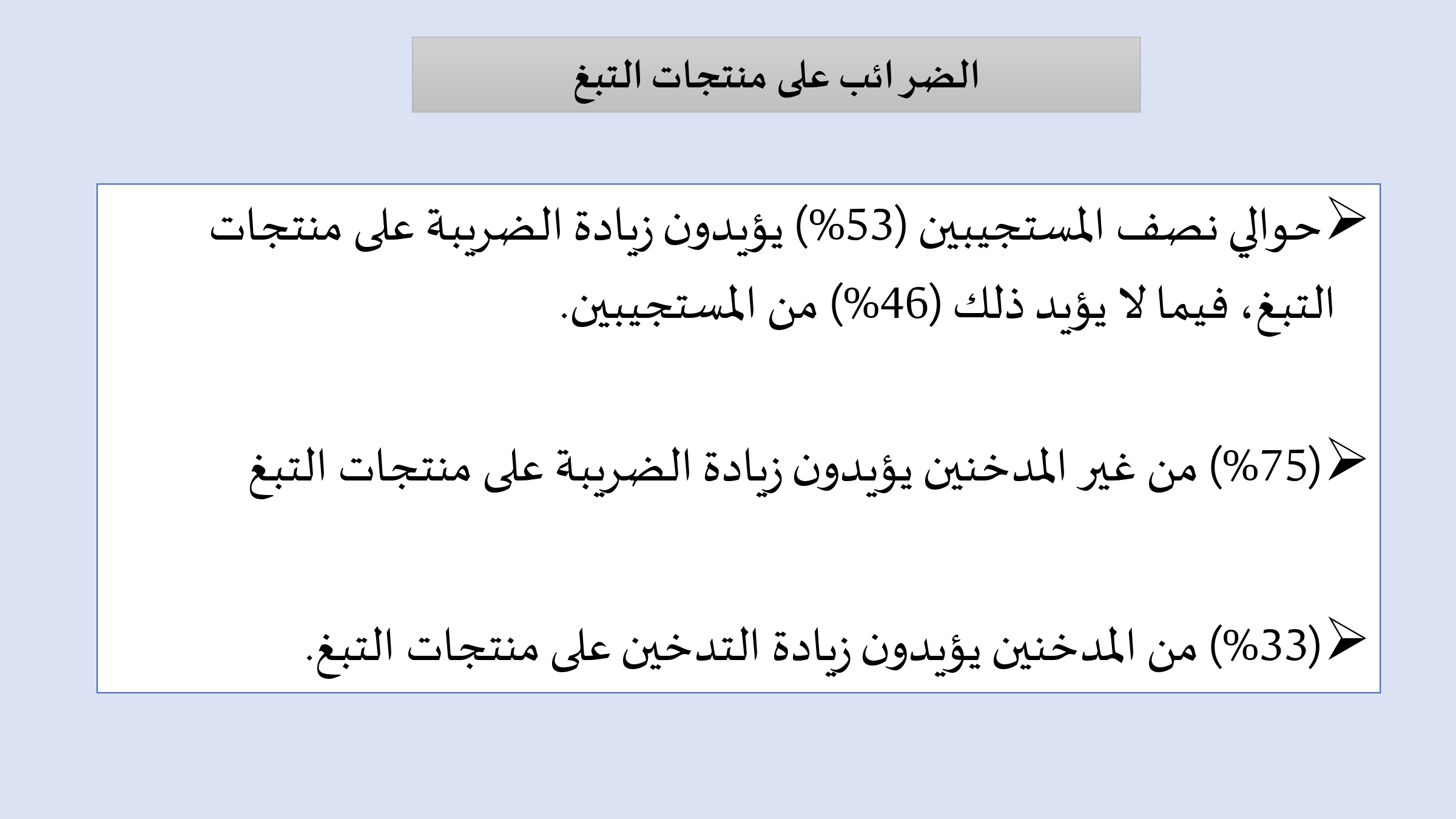 🔹 المؤيدون لزيادة الضرائب على التبغ: 53% (33% منهم مدخنون)
