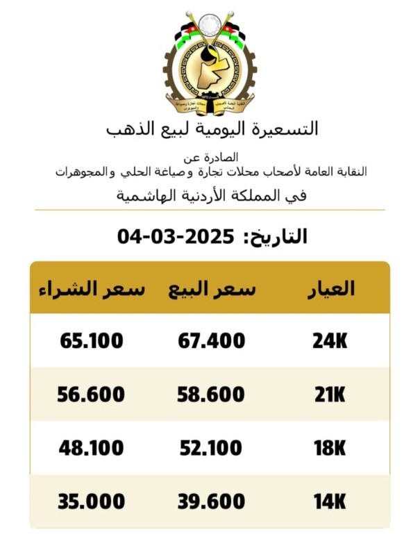 شهدت أسعار الذهب ارتفاعًا ملحوظًا اليوم الثلاثاء، حيث زاد سعر غرام الذهب عيار 21 بمقدار 60 قرشًا، ليصل إلى 58.6 دينار لغايات البيع من محلات الصاغة، مقابل 56.1 دينارًا لجهة الشراء.