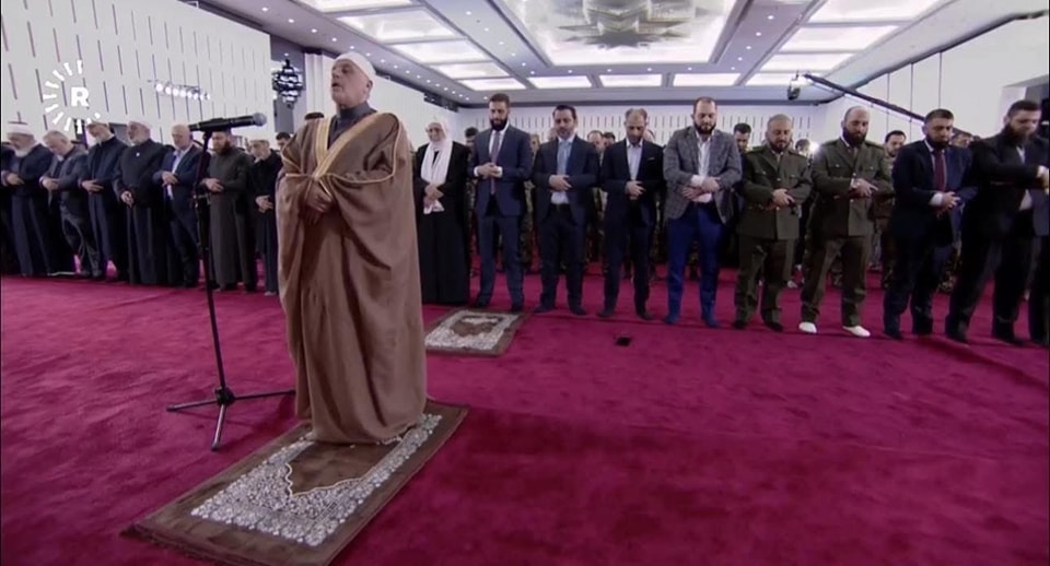أدى الرئيس السوري أحمد الشرع وحشد من المصلين صلاة عيد الفطر المبارك من مصلى قصر الشعب في العاصمة السورية دمشق في أول مرة يشهد فيها هذا المكان حدثا من هذا النوع.