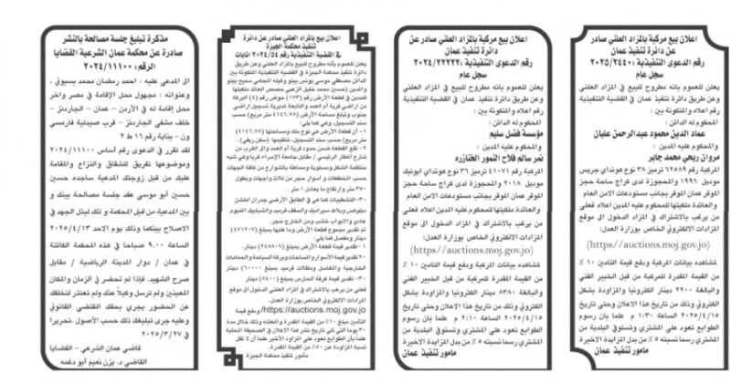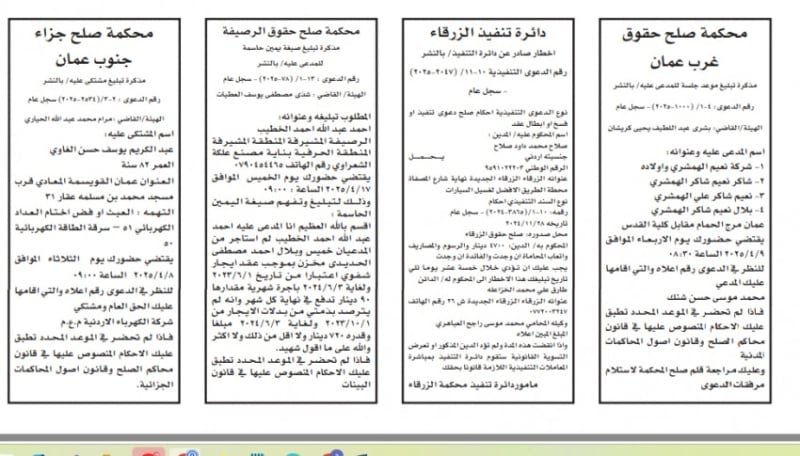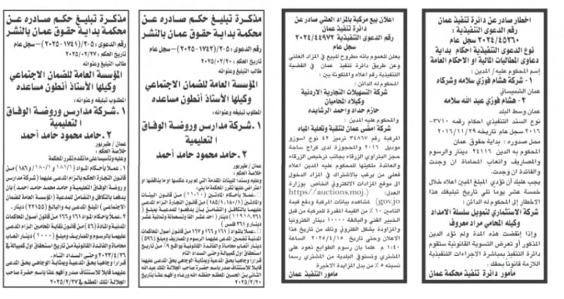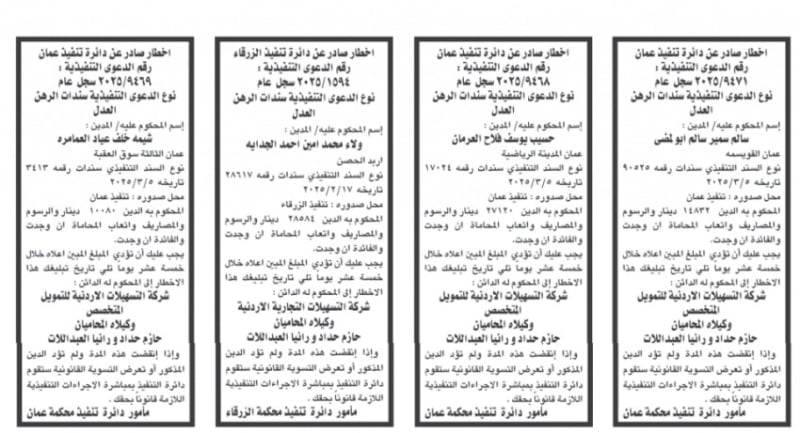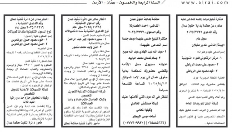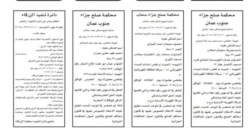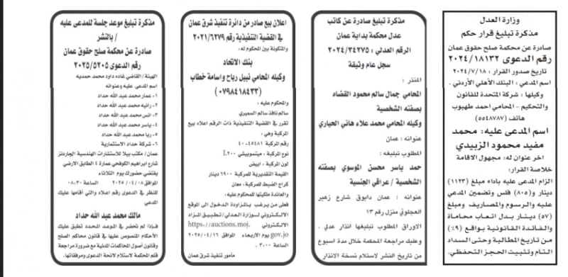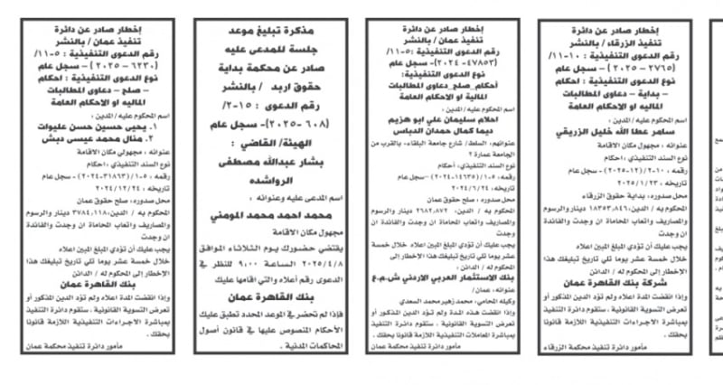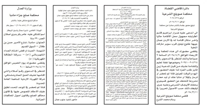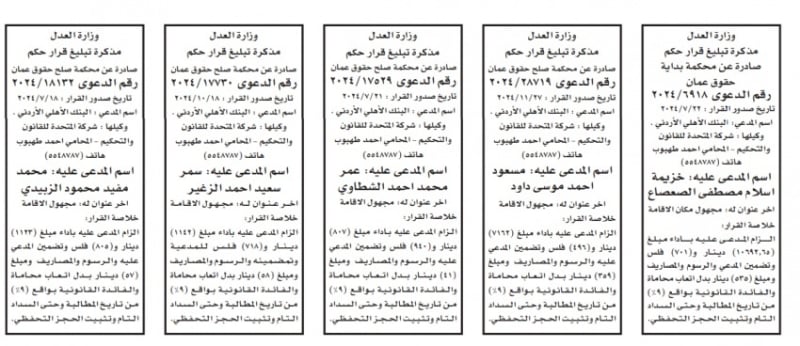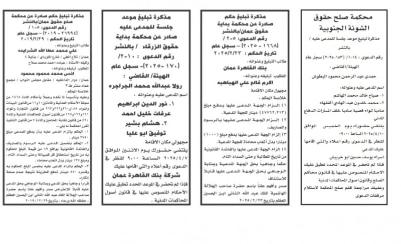 الأردن.. إصدار مذكرات تبليغ مواعيد جلسات المحاكمة وقرارات محاكم جديدة