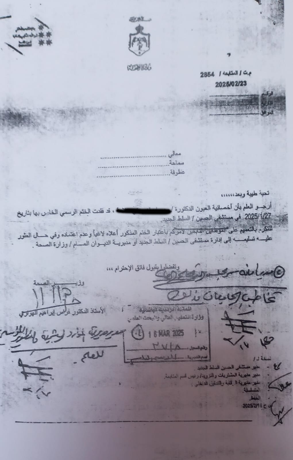 وتأتي هذه الخطوة ضمن الإجراءات الاحترازية التي تتخذها وزارة الصحة والمؤسسات الحكومية للحد من أي تلاعب أو تزوير قد يحدث باستخدام الأختام المفقودة في الوصفات الطبية أو التقارير الطبية أو لأغراض أخرى.