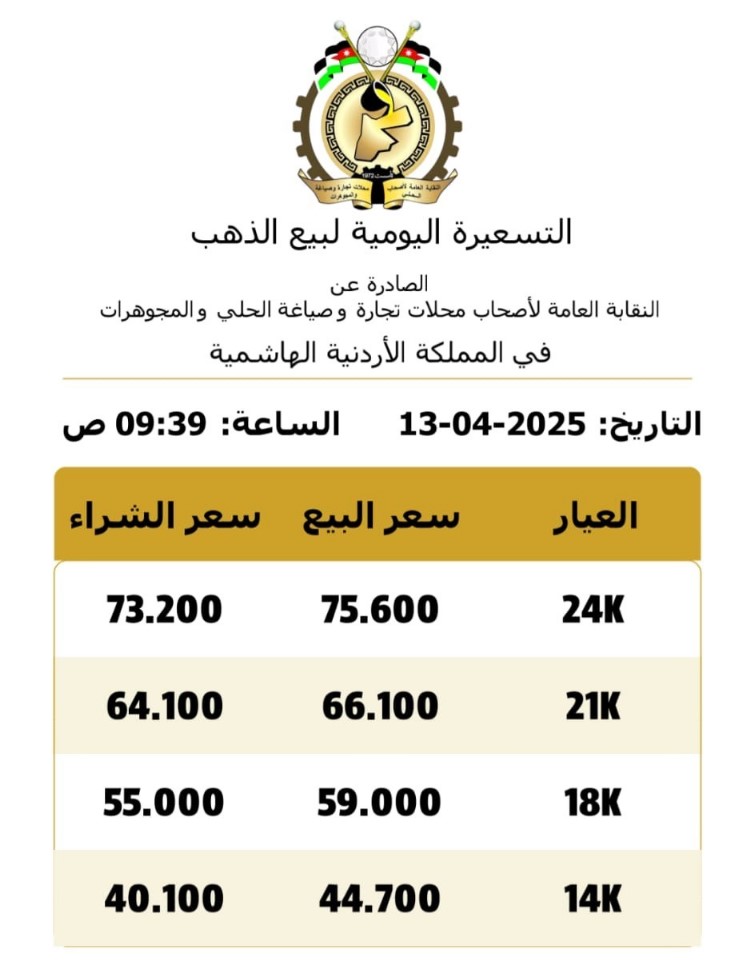 وبحسب النقابة، فقد جاءت أسعار بيع الذهب للأصناف الأخرى كما يلي: