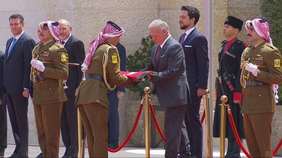 الملك يشهد مراسم رفع العلم في قصر الحسينية (صور)