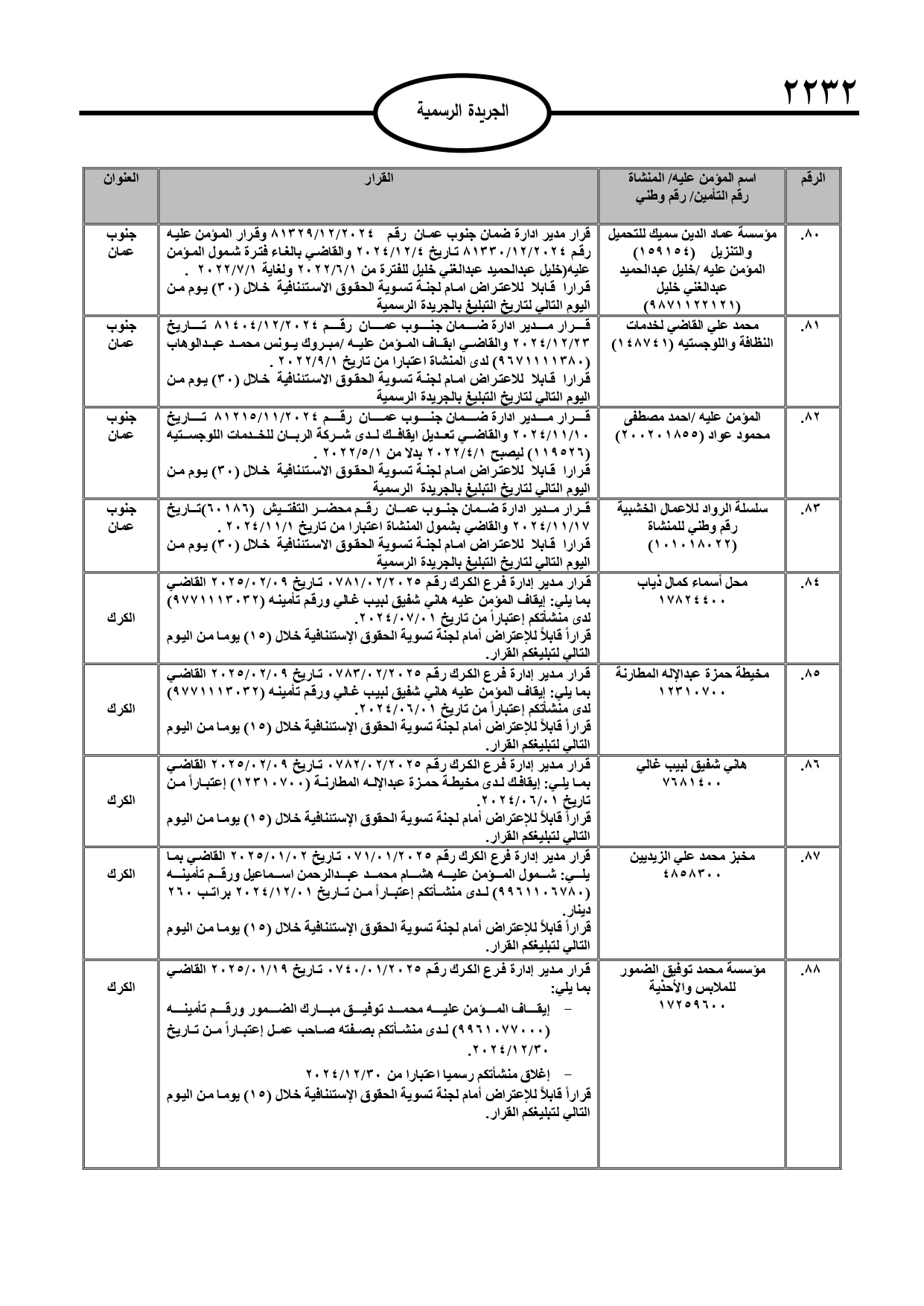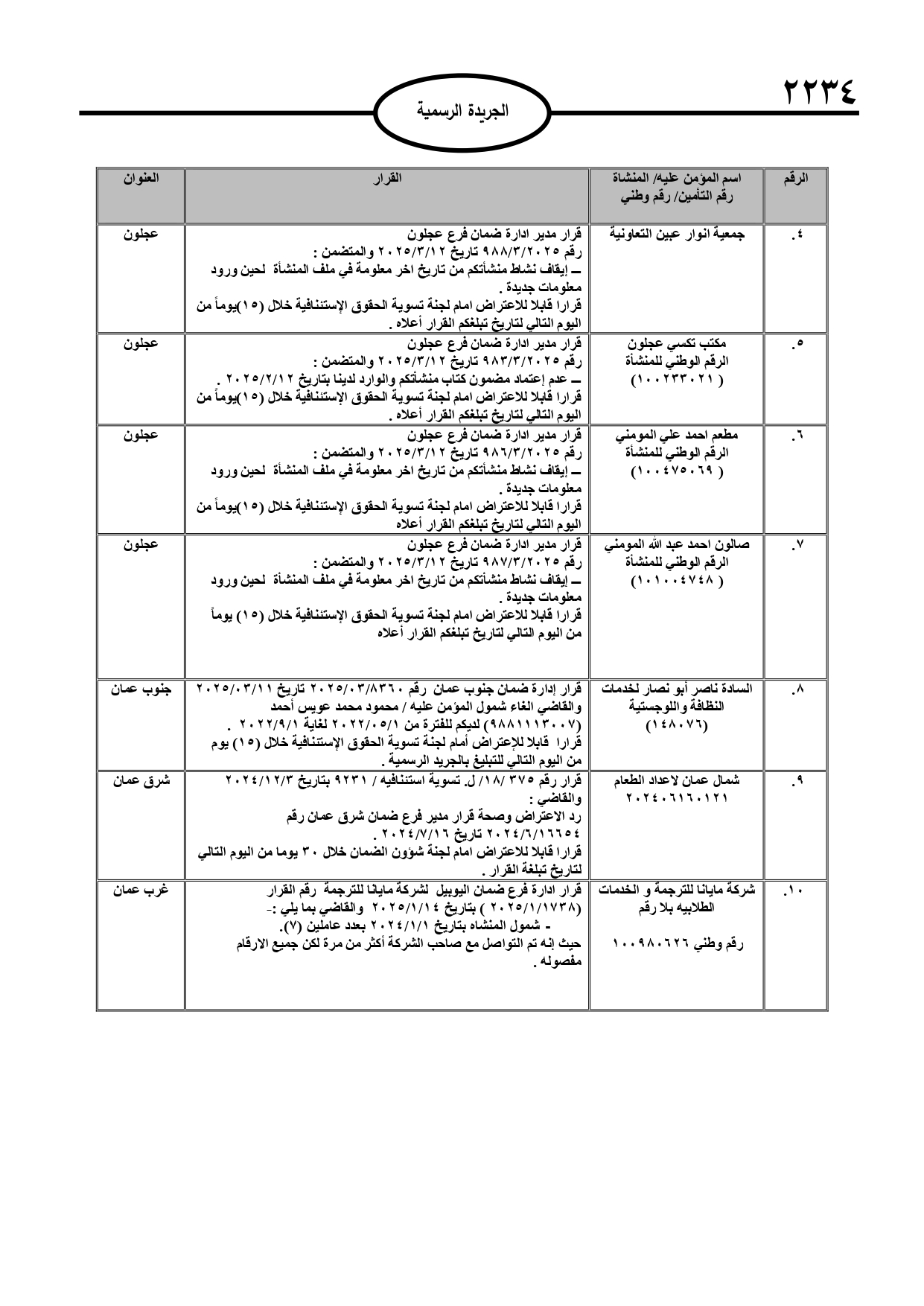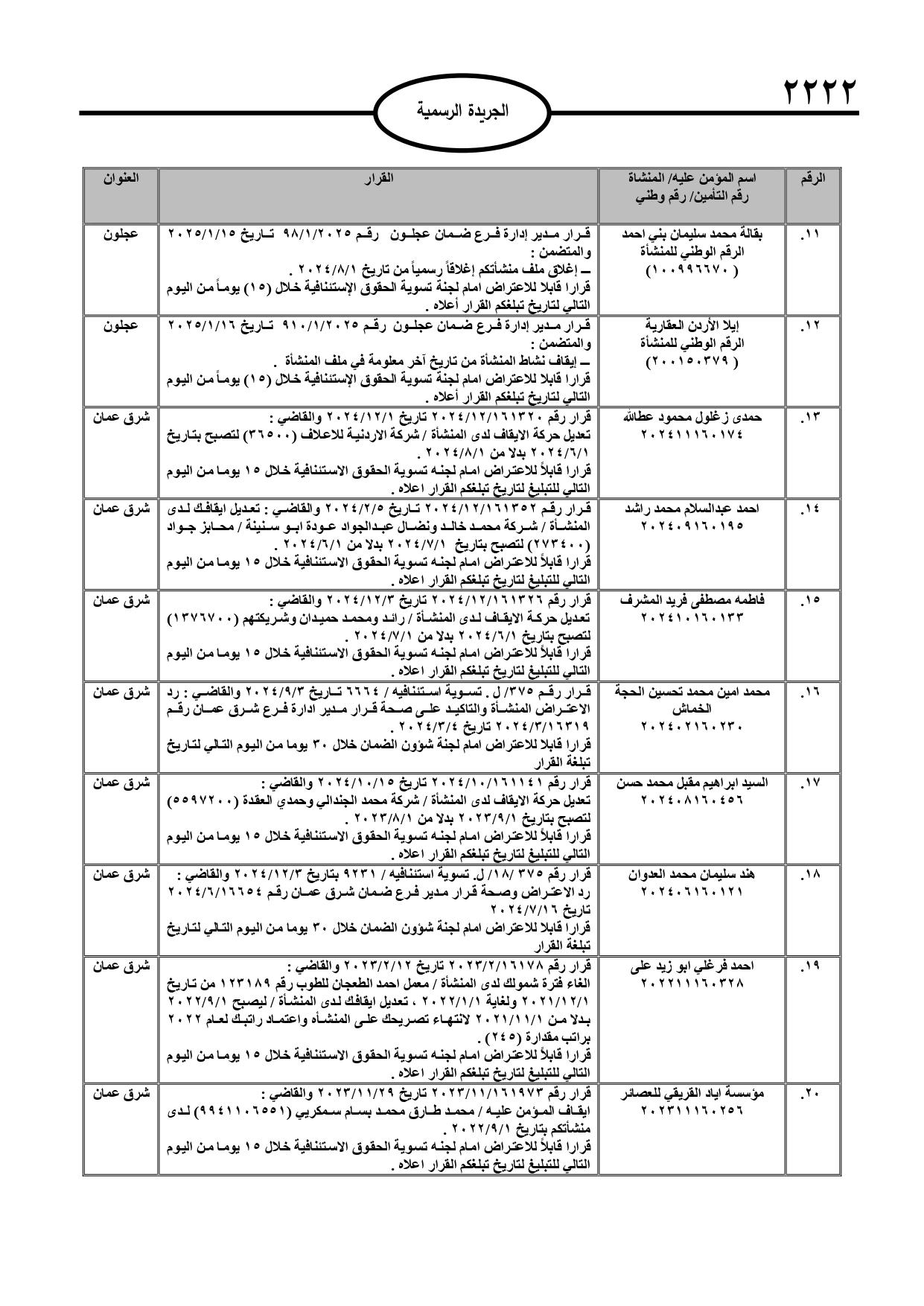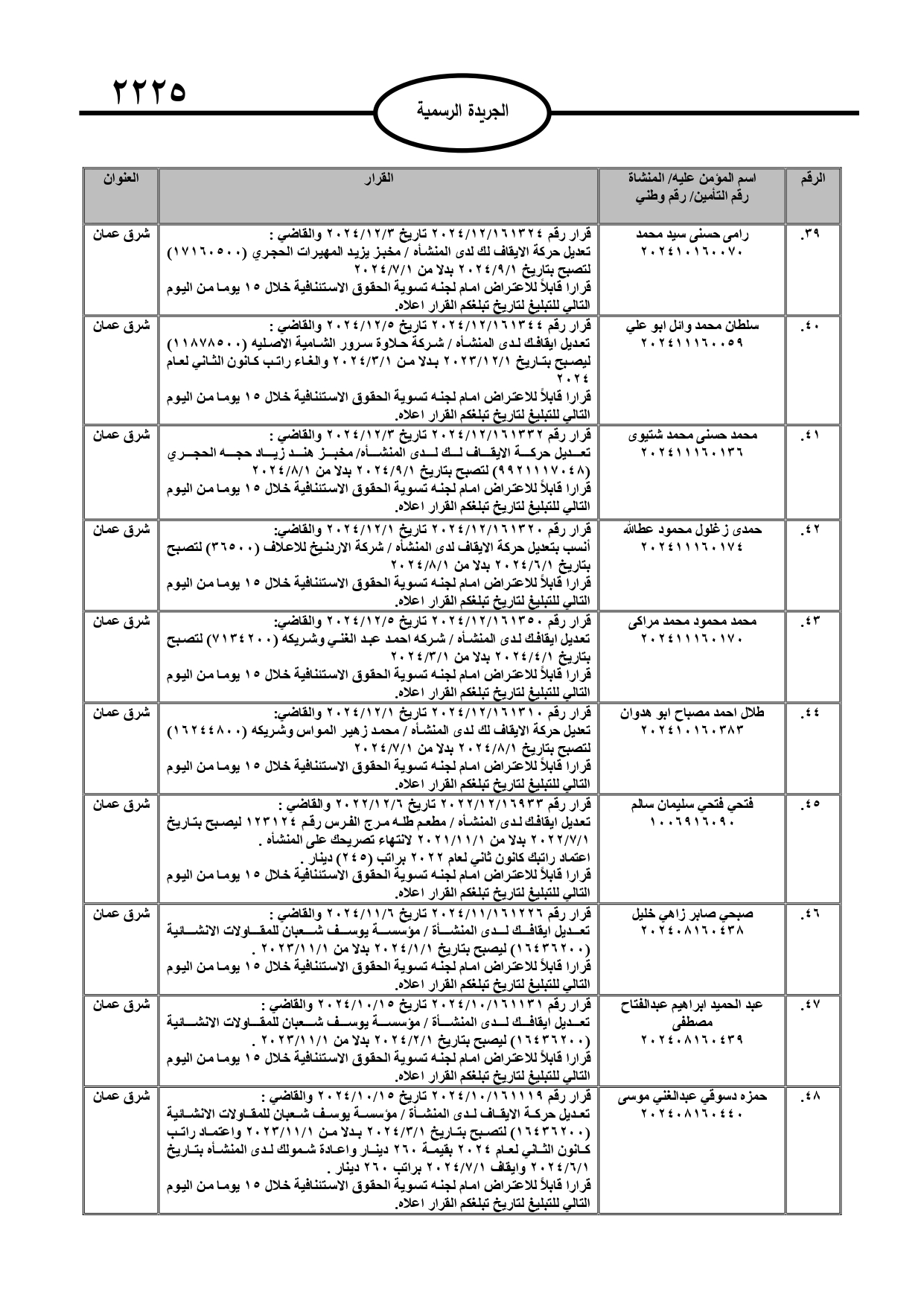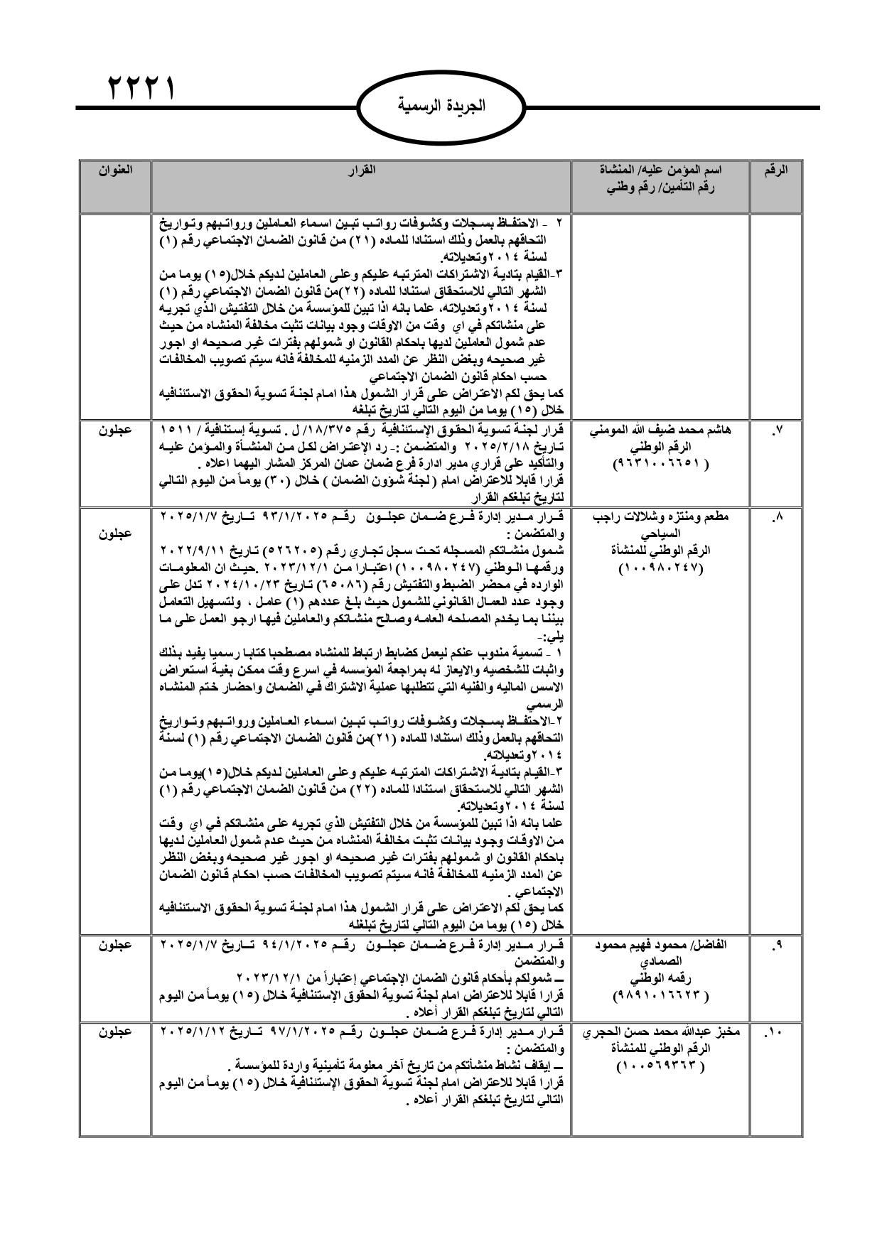 نُشر في عدد الجريدة الرسمية، الأربعاء، قرارات صادرة عن مدير عام المؤسسة العامة للضمان الاجتماعي.
