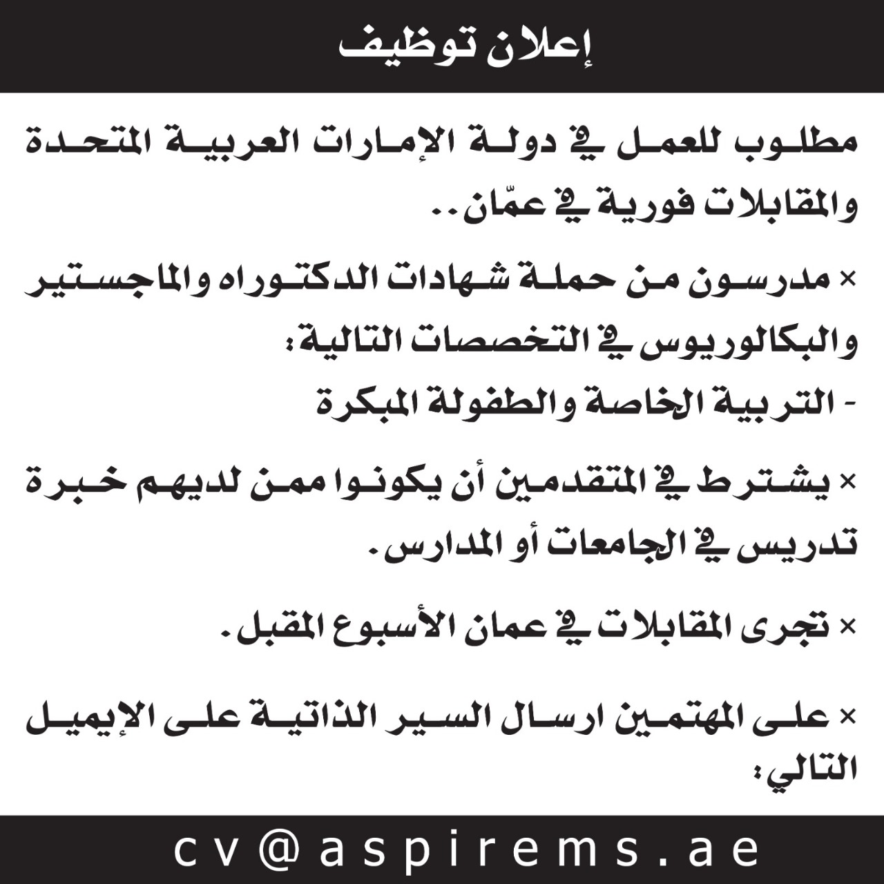 على الراغبين بالتقدم إرسال السيرة الذاتية عبر البريد الإلكتروني التالي: cv@aspirems.ae