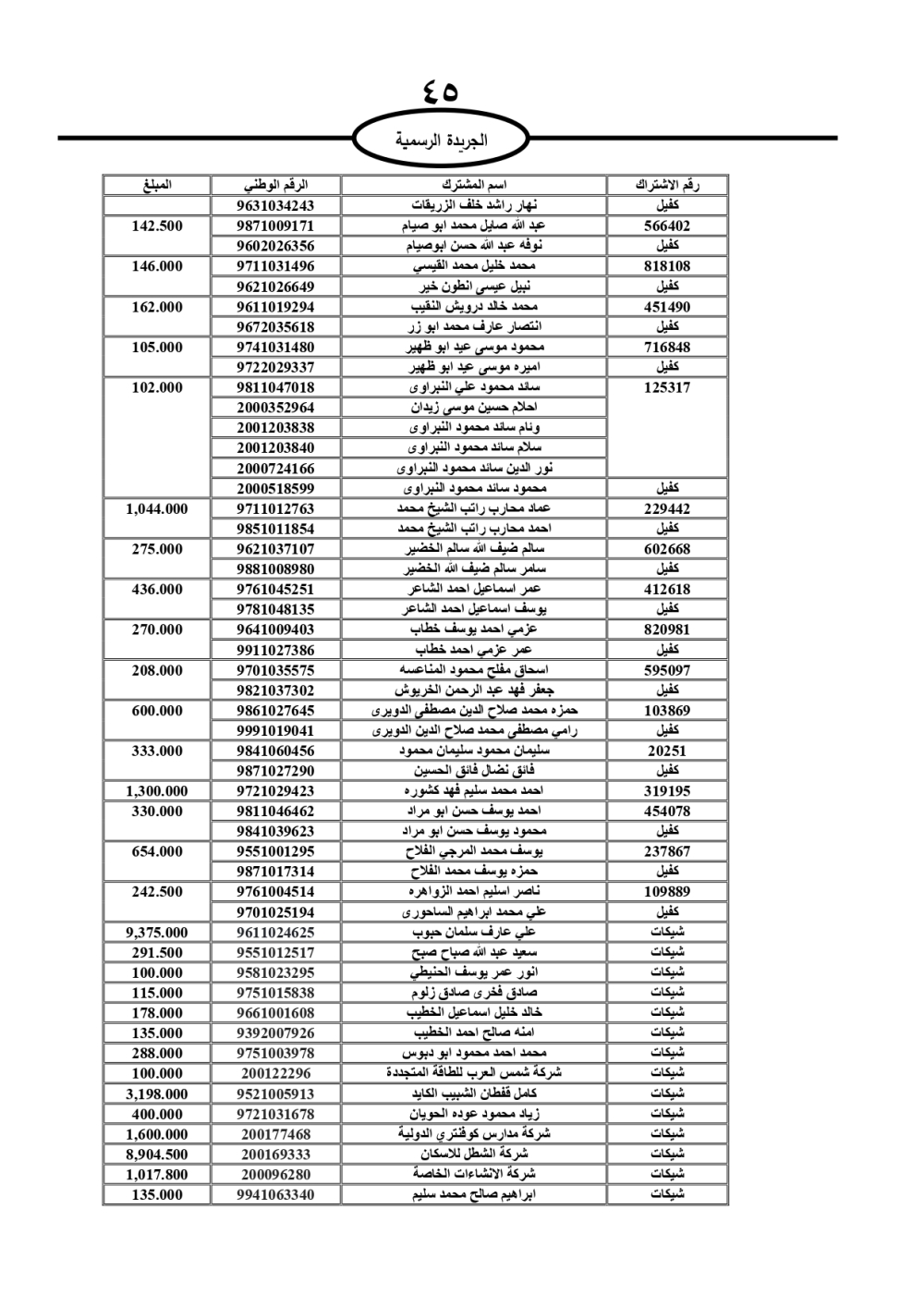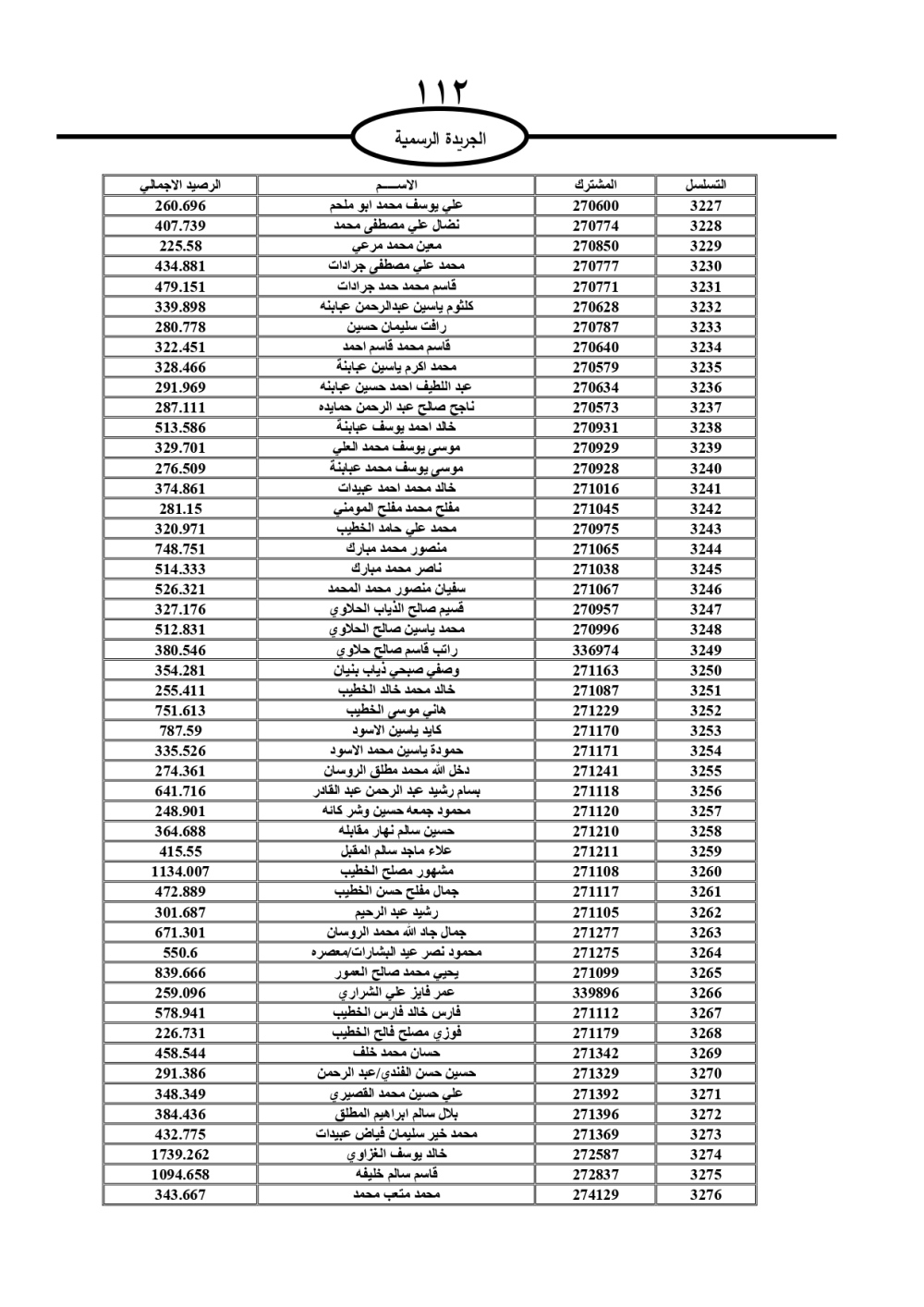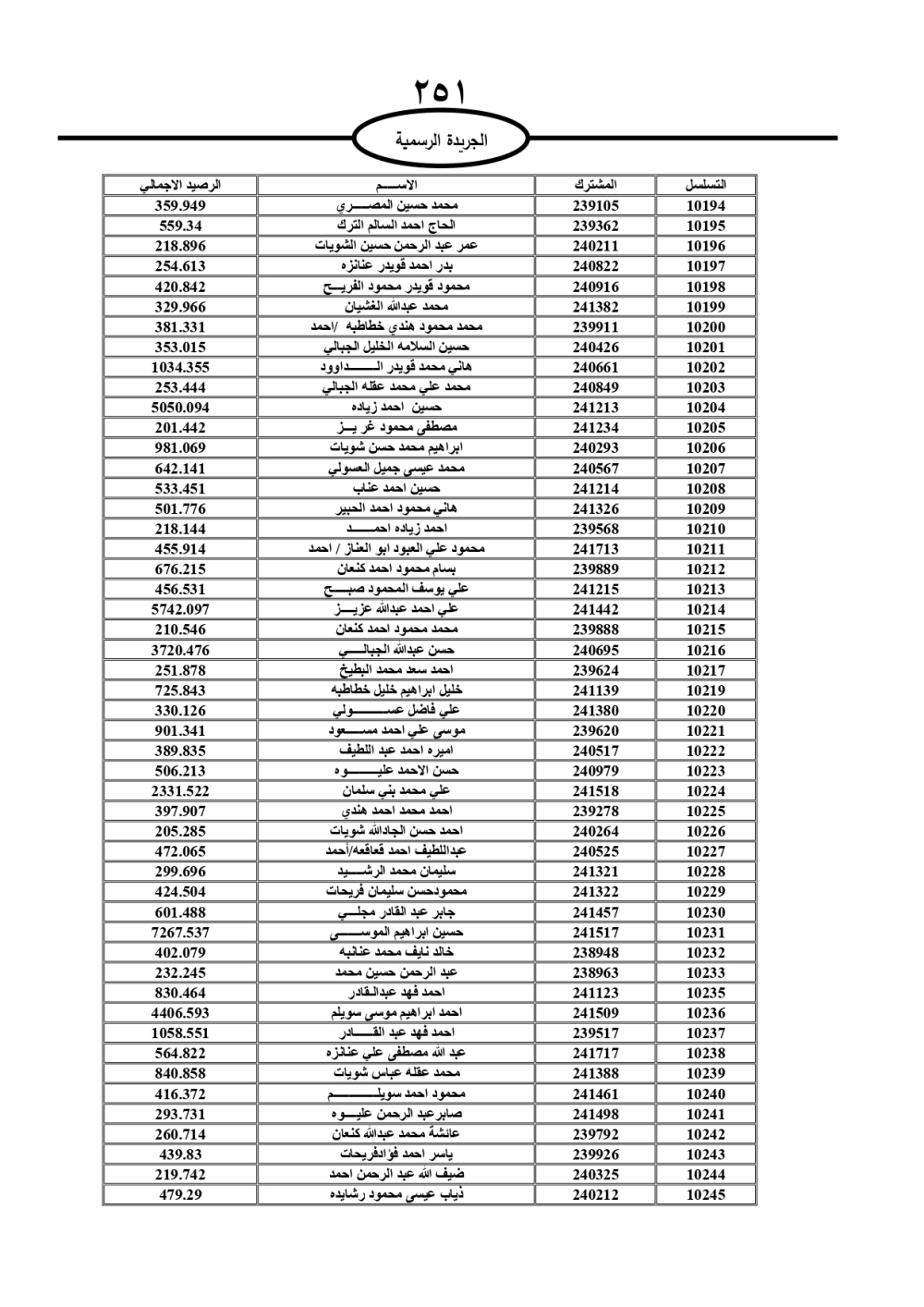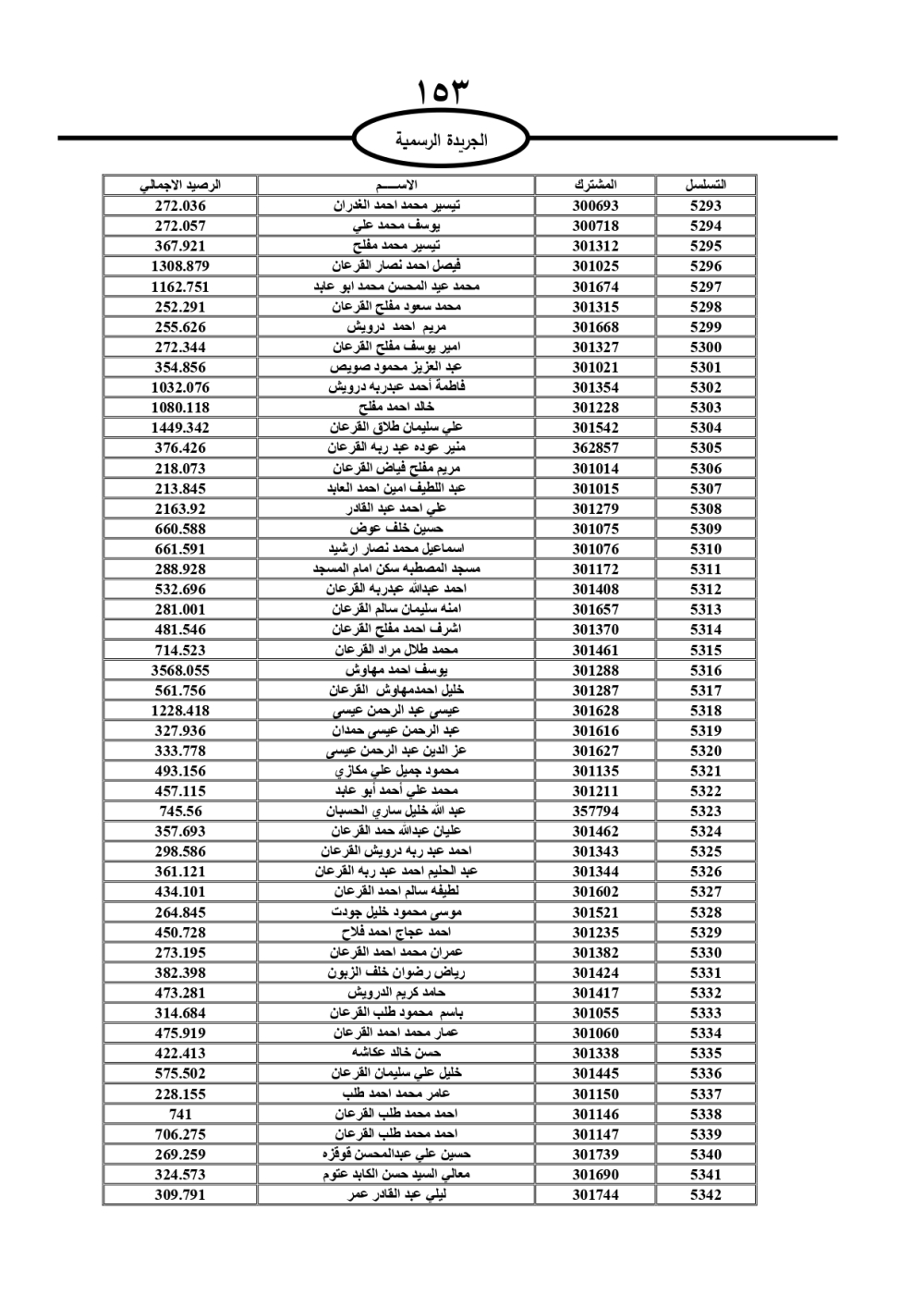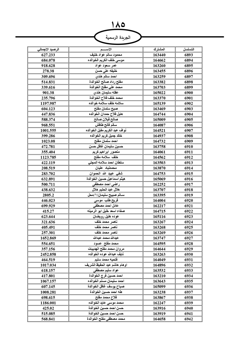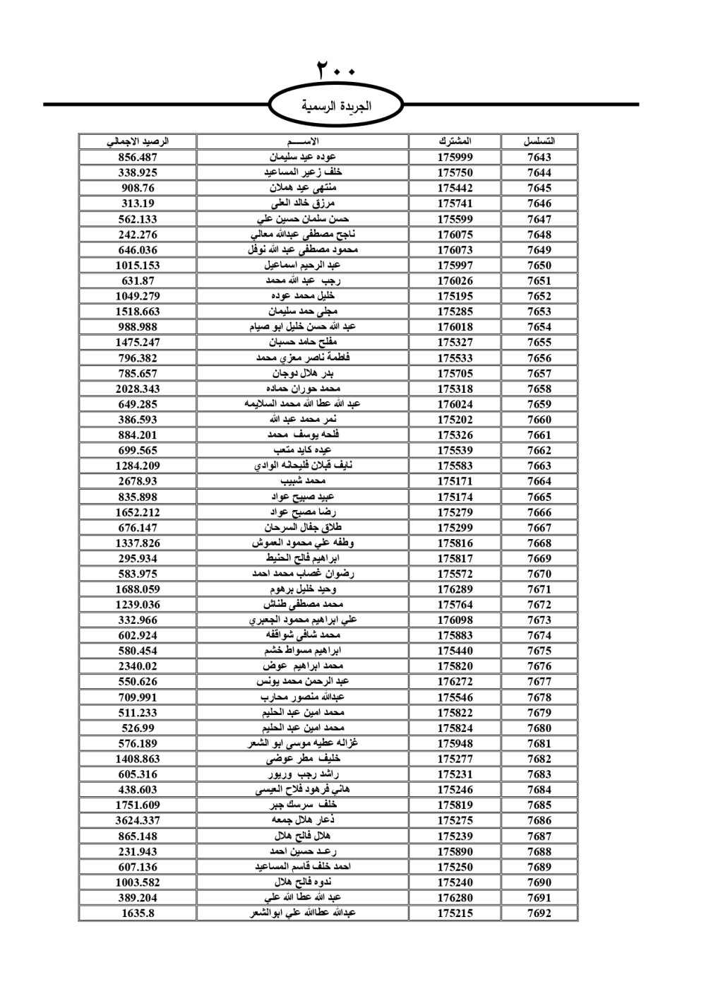 دعت سلطة المياه وبلدية الزرقاء، عشرات آلاف الأردنيين الواردة أسماؤهم بالكشوفات المرفقة، إلى ضرورة مراجعتها لتسوية أوضاعهم المالية كونه ترتب عليهم ذمم مالية، وذلك لتجنب الحجز على الأموال المنقولة وغير المنقولة بعد انقضاء 60 يوما من تاريخ النشر، علما أنه تم نشر هذه الأسماء في الجريدة الرسمية بتاريخ 16/2/2025.