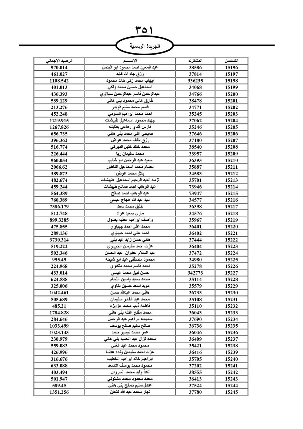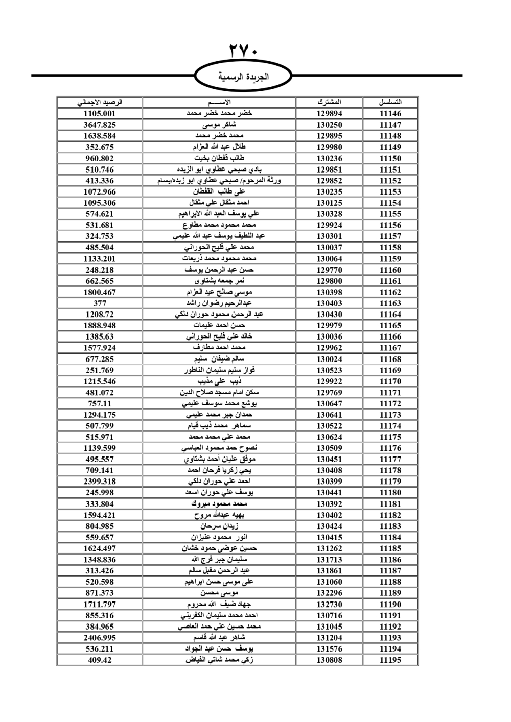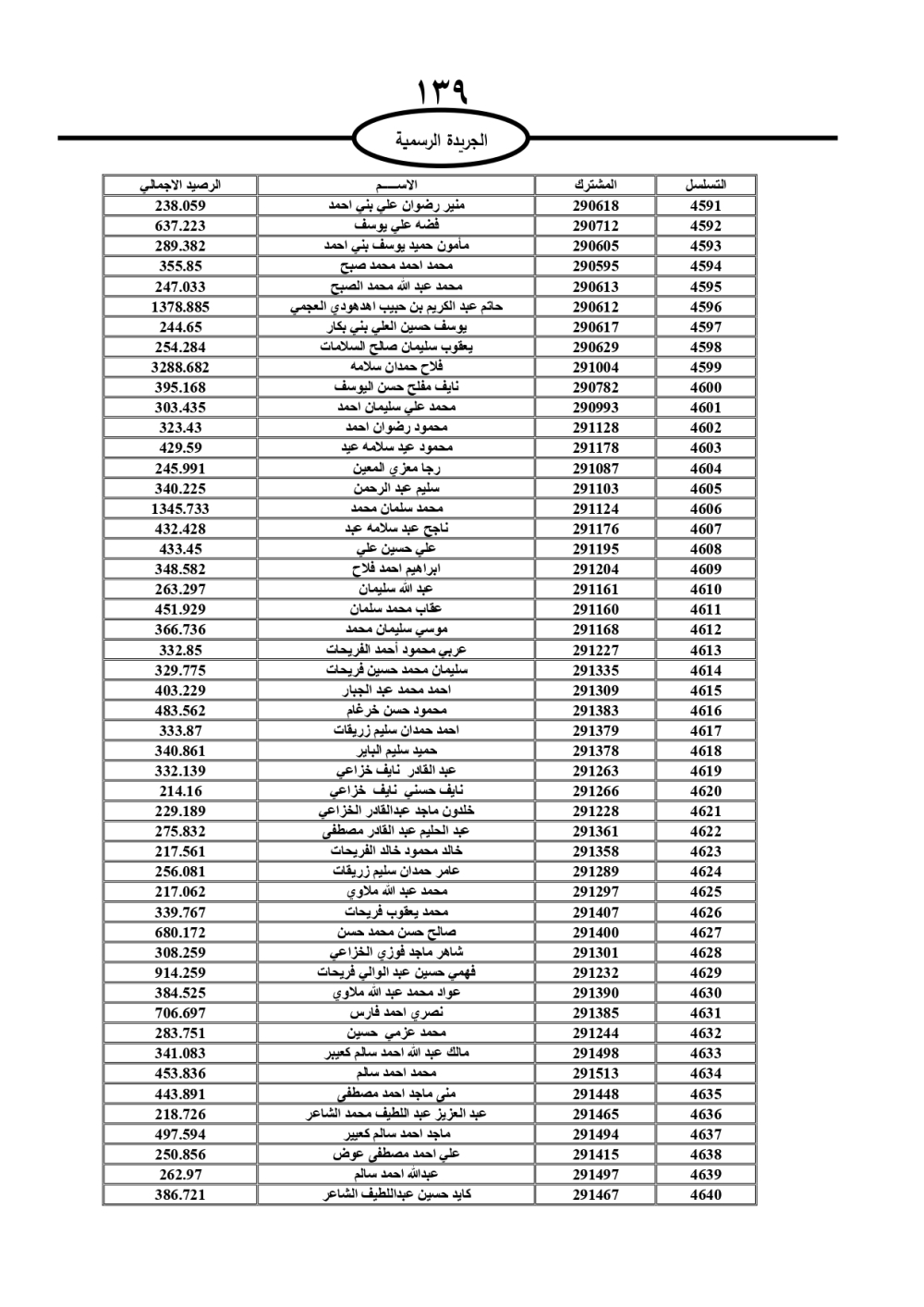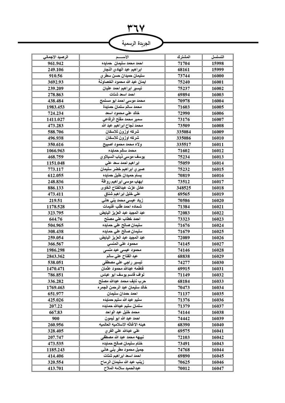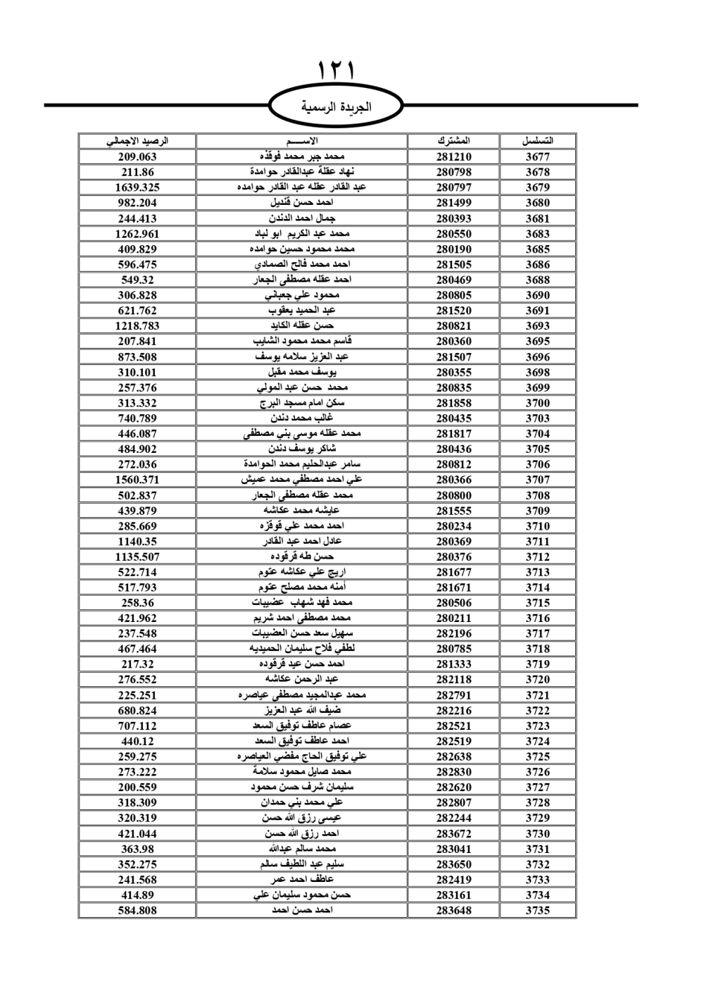 دعت سلطة المياه وبلدية الزرقاء، عشرات آلاف الأردنيين الواردة أسماؤهم بالكشوفات المرفقة، إلى ضرورة مراجعتها لتسوية أوضاعهم المالية كونه ترتب عليهم ذمم مالية، وذلك لتجنب الحجز على الأموال المنقولة وغير المنقولة بعد انقضاء 60 يوما من تاريخ النشر، علما أنه تم نشر هذه الأسماء في الجريدة الرسمية بتاريخ 16/2/2025.