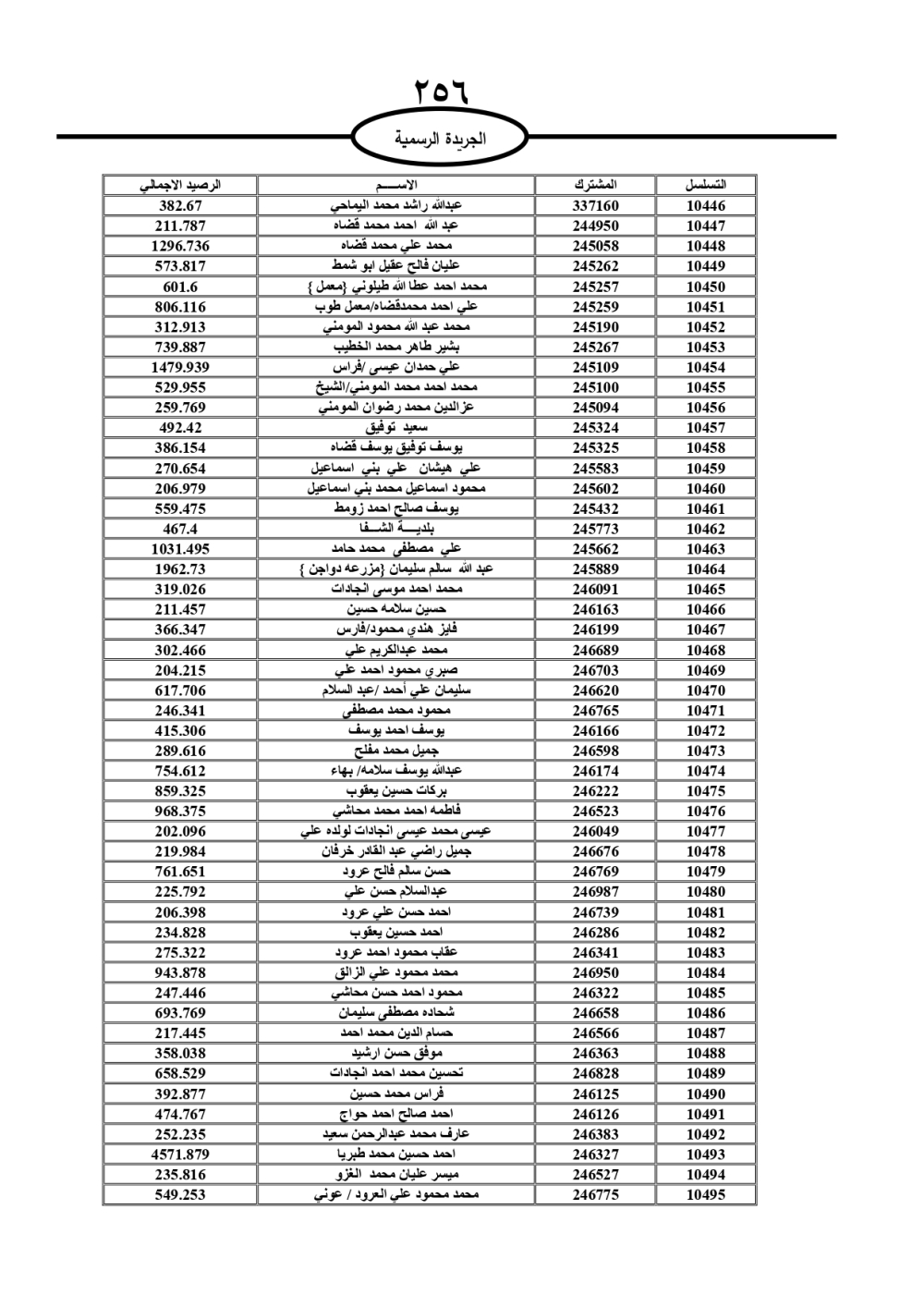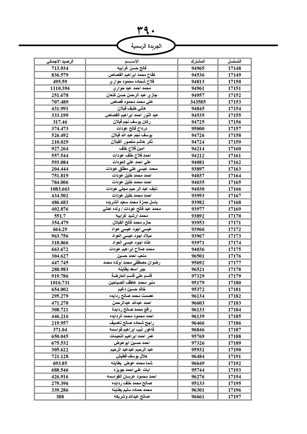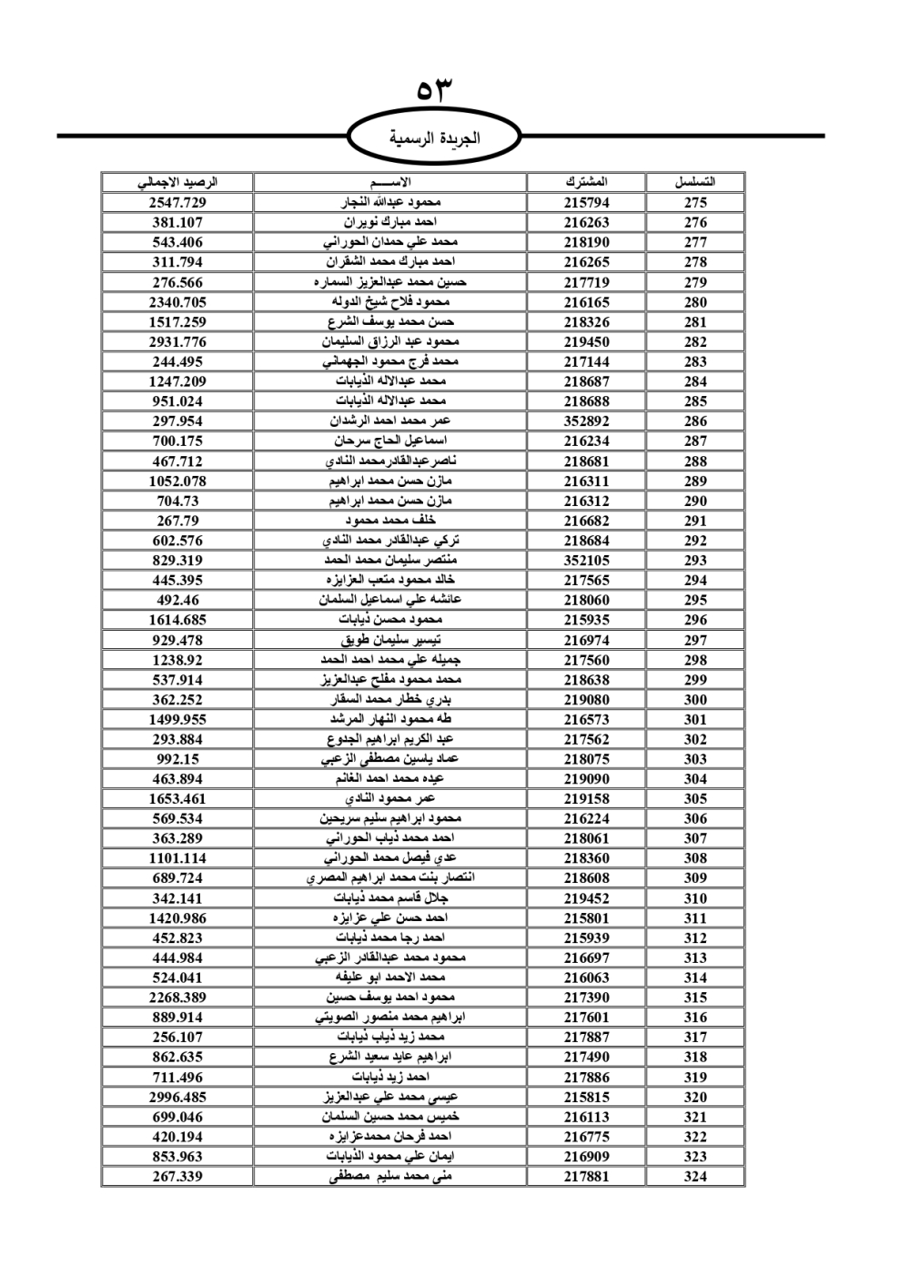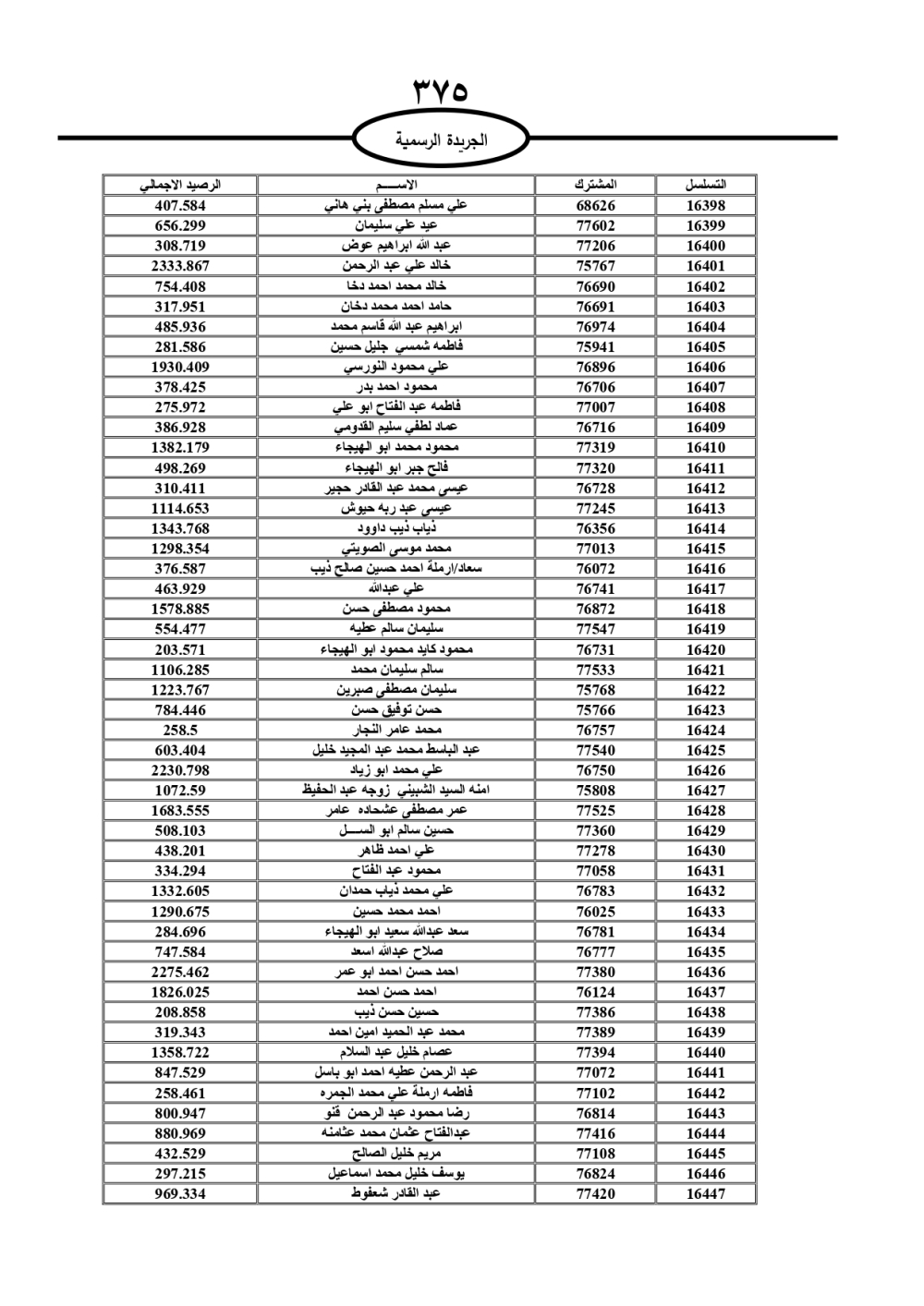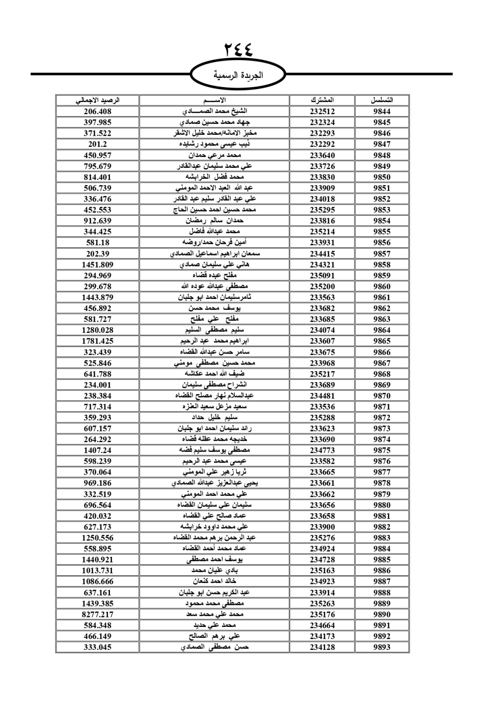 دعت سلطة المياه وبلدية الزرقاء، عشرات آلاف الأردنيين الواردة أسماؤهم بالكشوفات المرفقة، إلى ضرورة مراجعتها لتسوية أوضاعهم المالية كونه ترتب عليهم ذمم مالية، وذلك لتجنب الحجز على الأموال المنقولة وغير المنقولة بعد انقضاء 60 يوما من تاريخ النشر، علما أنه تم نشر هذه الأسماء في الجريدة الرسمية بتاريخ 16/2/2025.