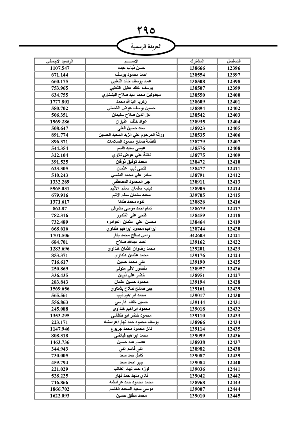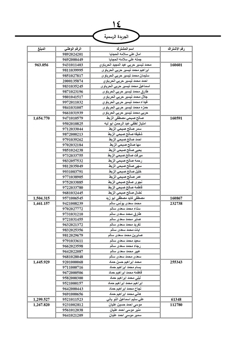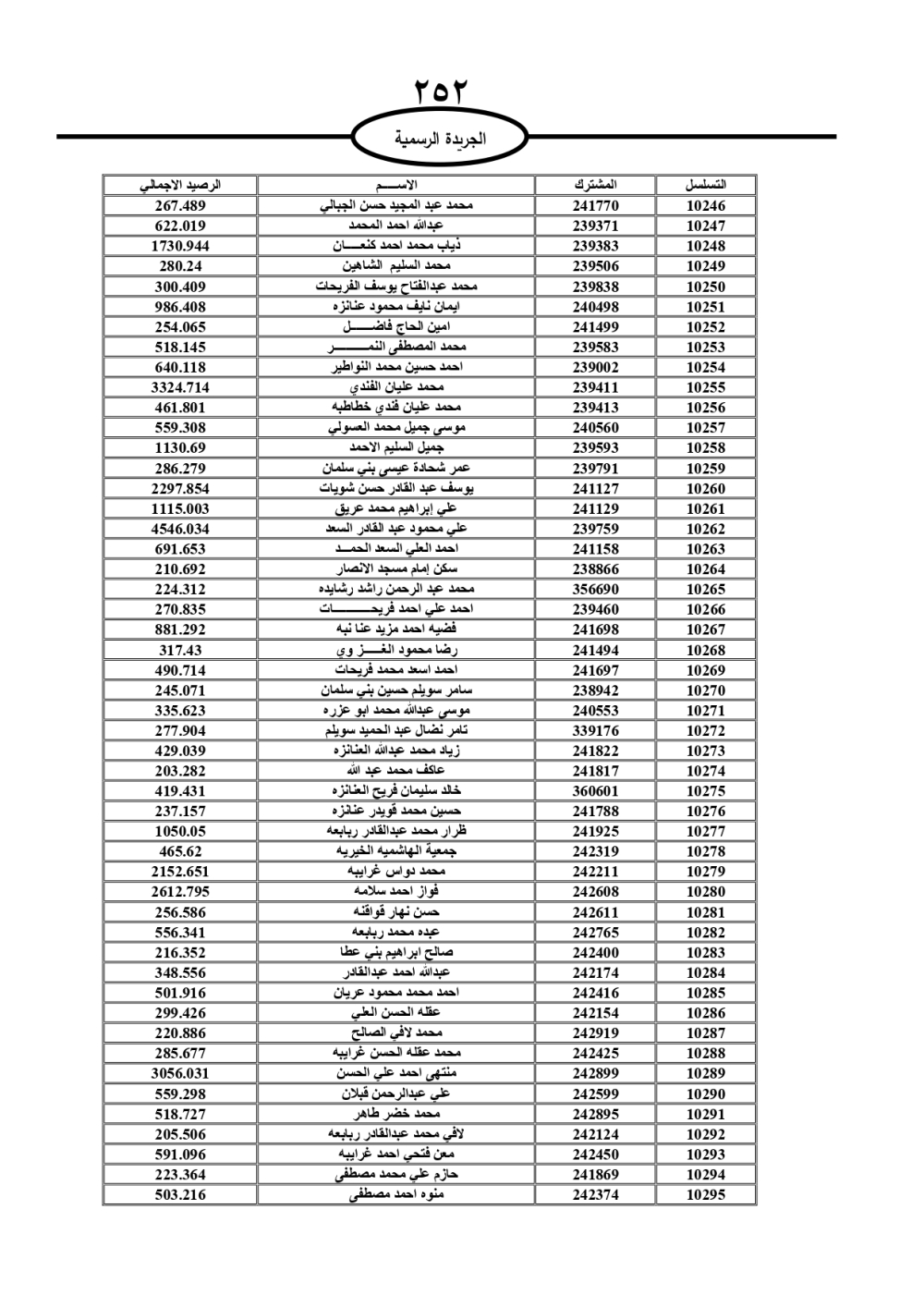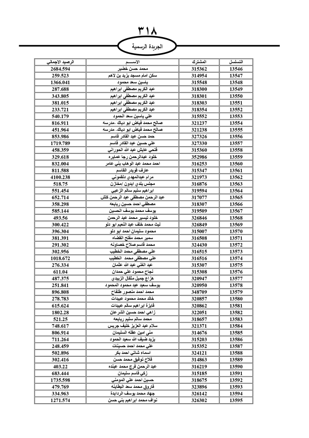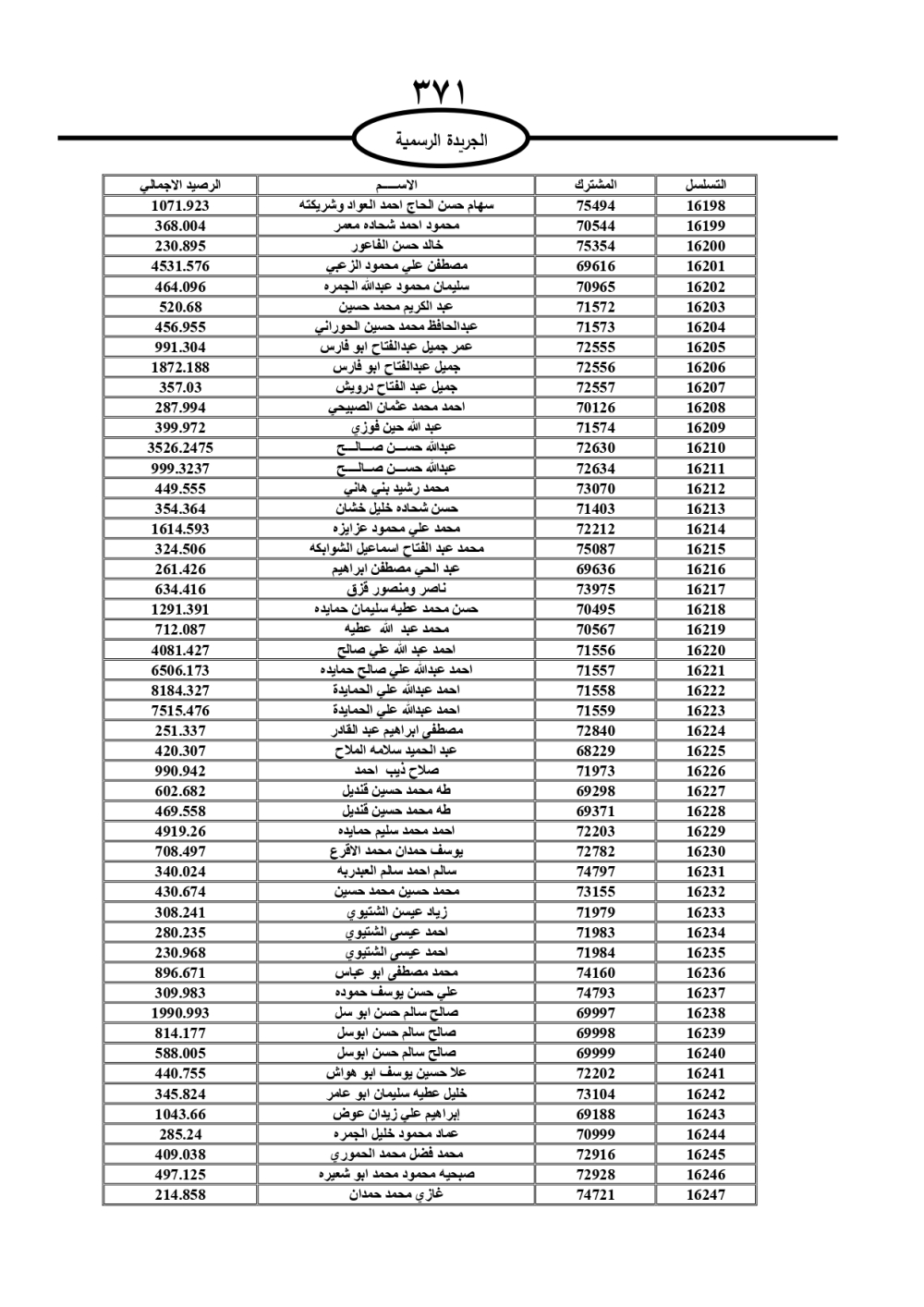 دعت سلطة المياه وبلدية الزرقاء، عشرات آلاف الأردنيين الواردة أسماؤهم بالكشوفات المرفقة، إلى ضرورة مراجعتها لتسوية أوضاعهم المالية كونه ترتب عليهم ذمم مالية، وذلك لتجنب الحجز على الأموال المنقولة وغير المنقولة بعد انقضاء 60 يوما من تاريخ النشر، علما أنه تم نشر هذه الأسماء في الجريدة الرسمية بتاريخ 16/2/2025.