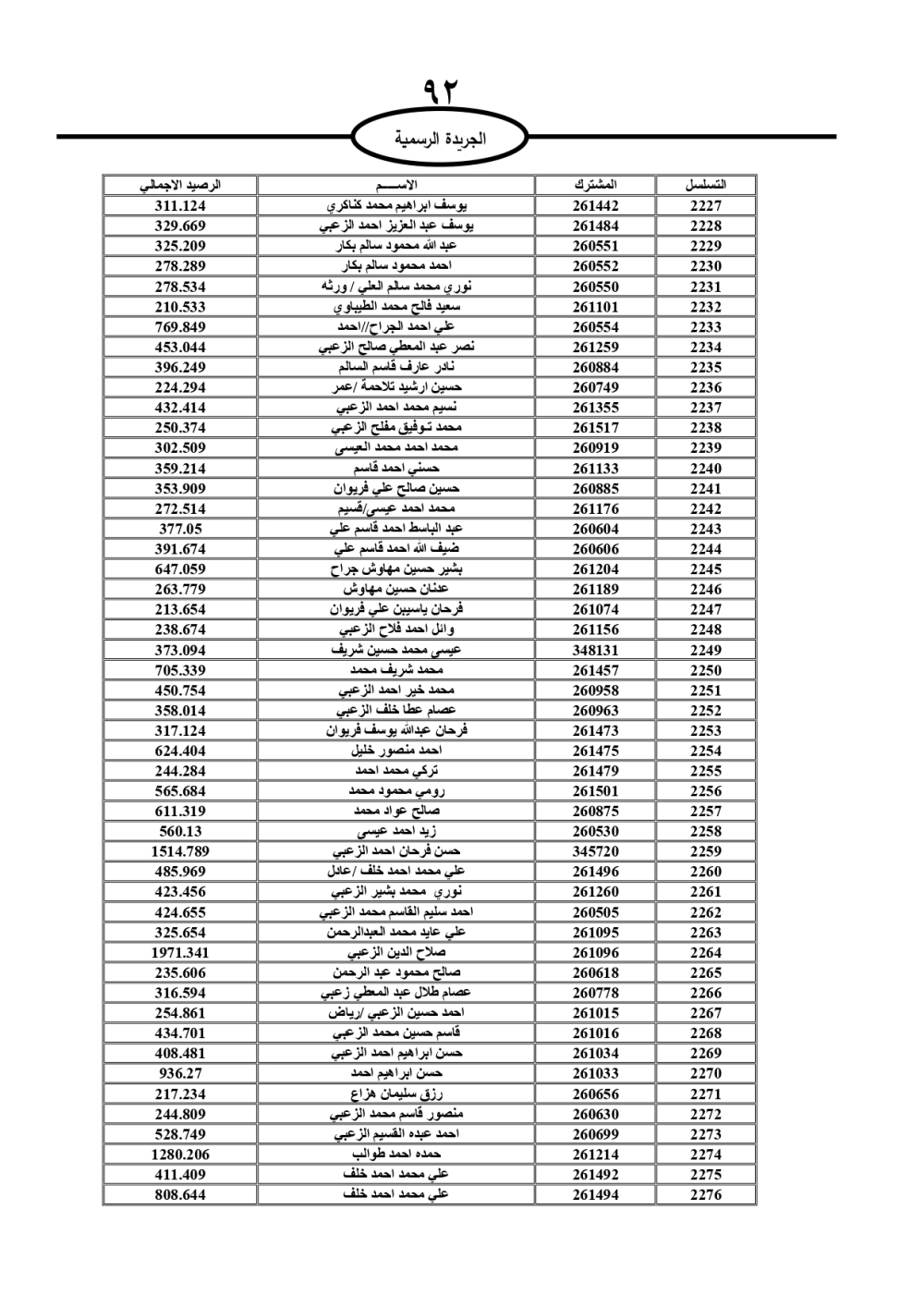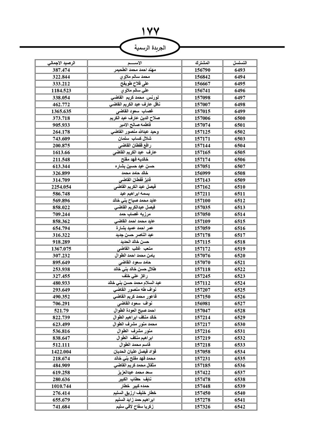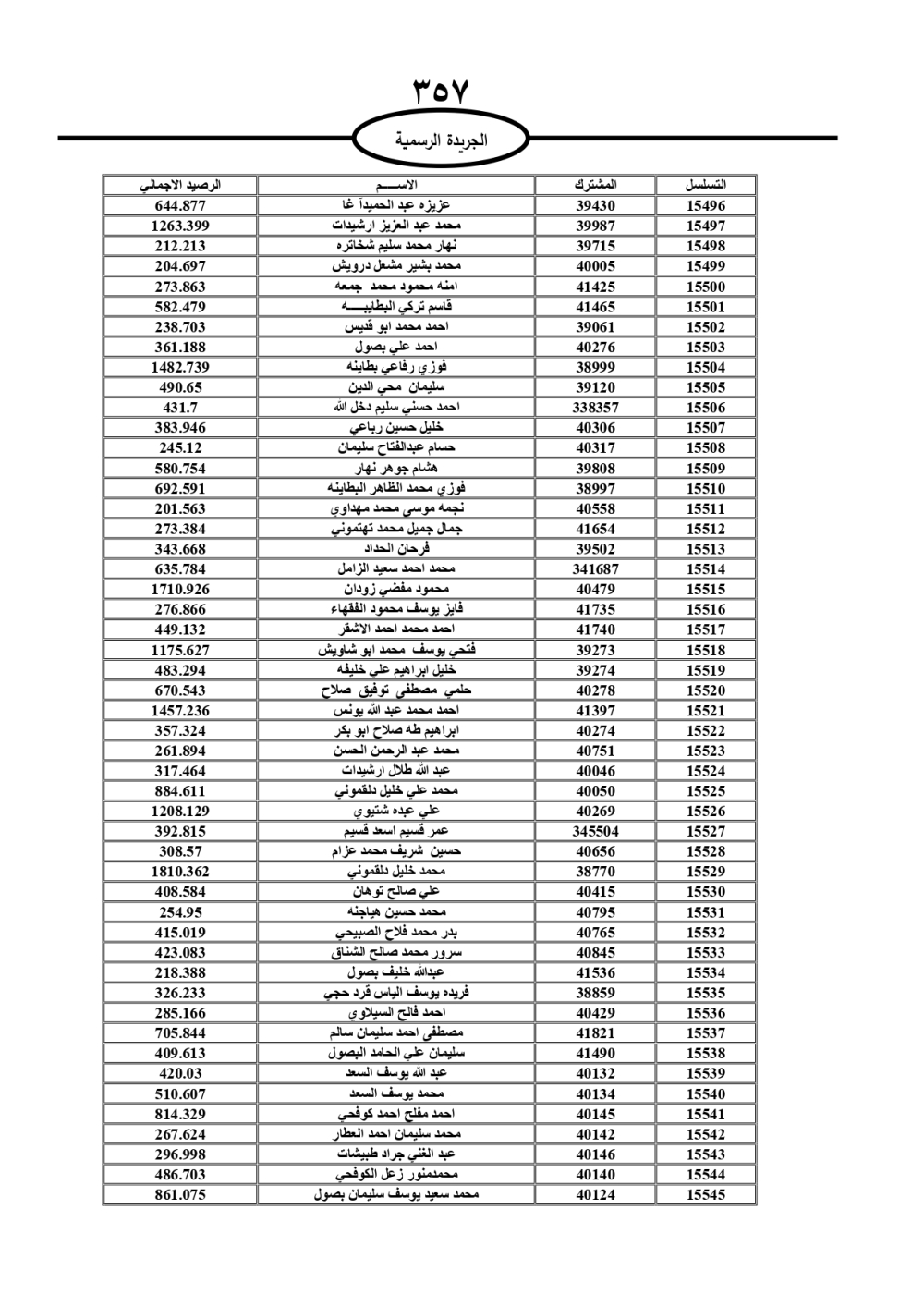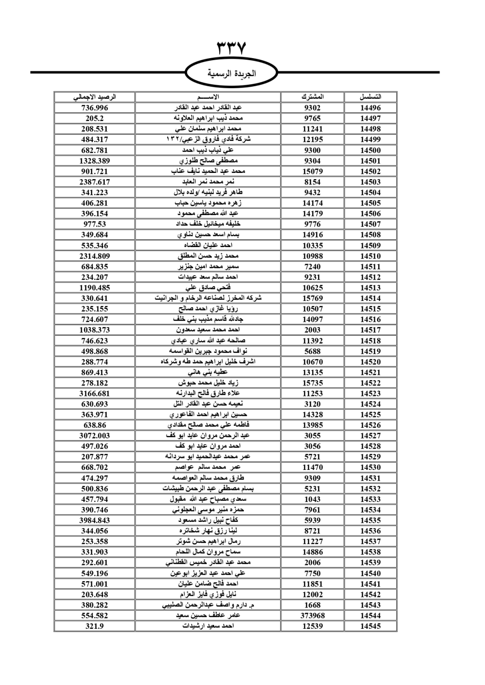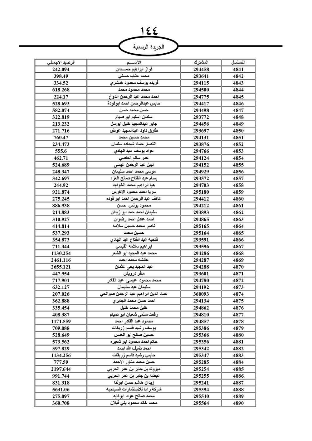 دعت سلطة المياه وبلدية الزرقاء، عشرات آلاف الأردنيين الواردة أسماؤهم بالكشوفات المرفقة، إلى ضرورة مراجعتها لتسوية أوضاعهم المالية كونه ترتب عليهم ذمم مالية، وذلك لتجنب الحجز على الأموال المنقولة وغير المنقولة بعد انقضاء 60 يوما من تاريخ النشر، علما أنه تم نشر هذه الأسماء في الجريدة الرسمية بتاريخ 16/2/2025.