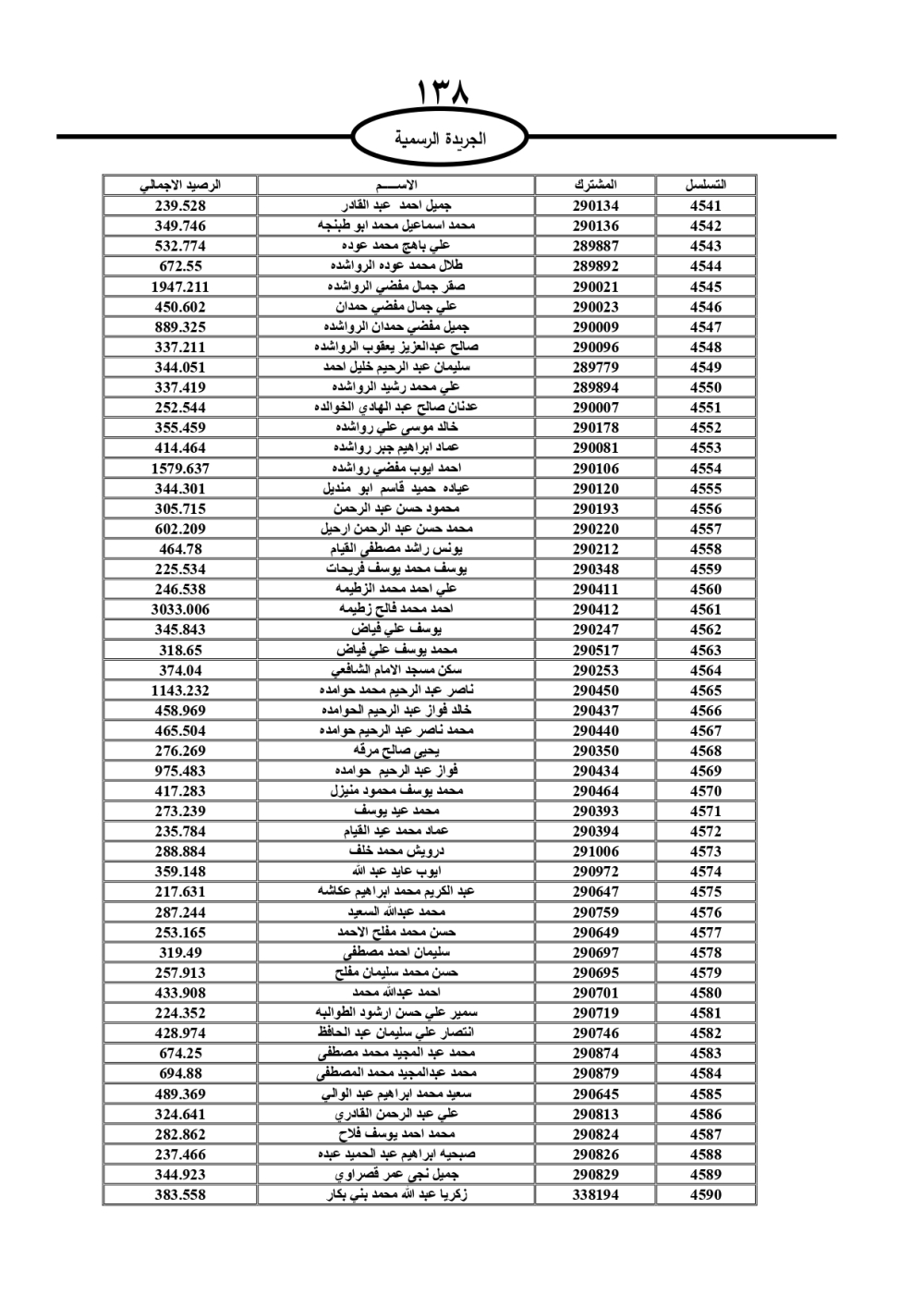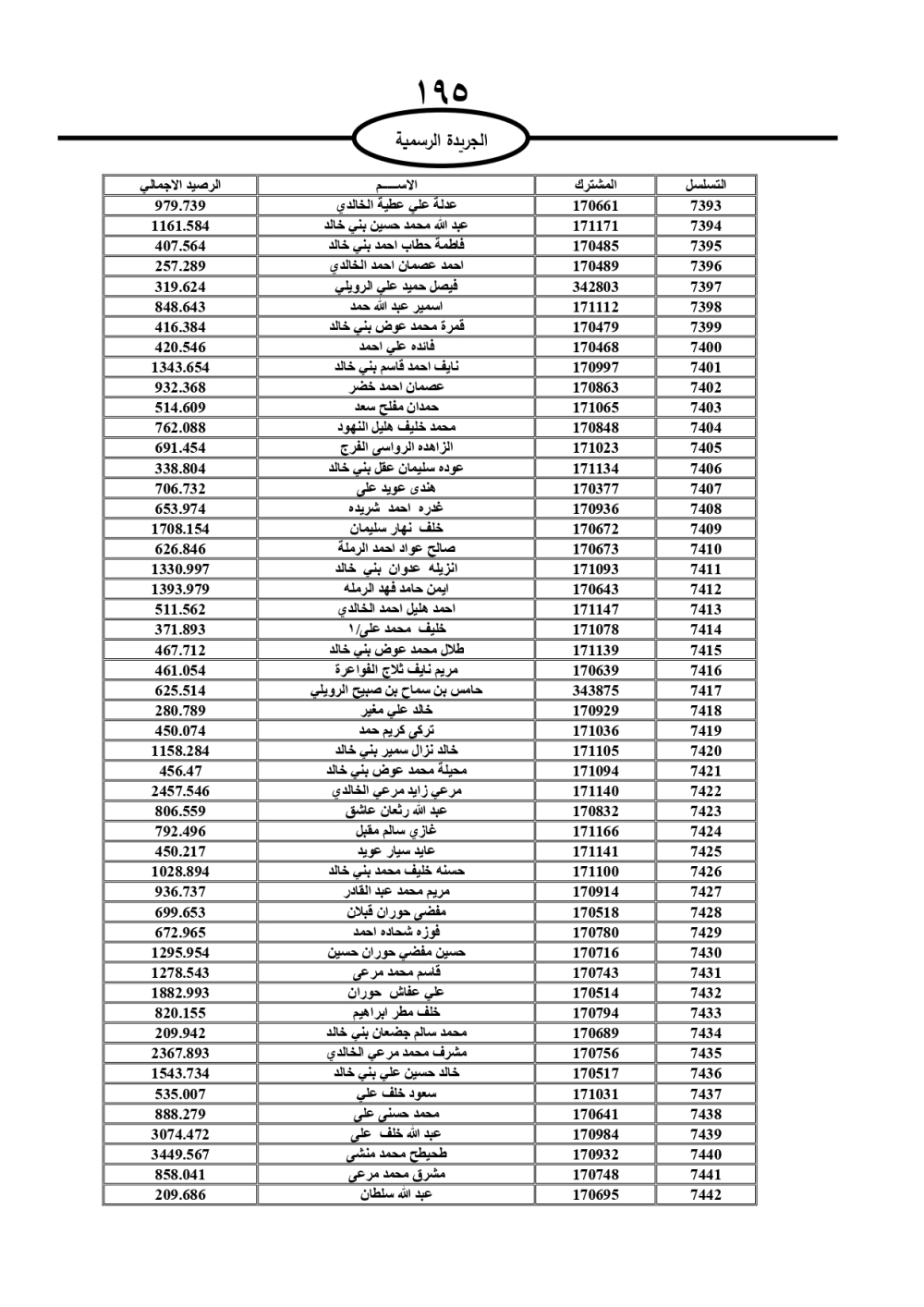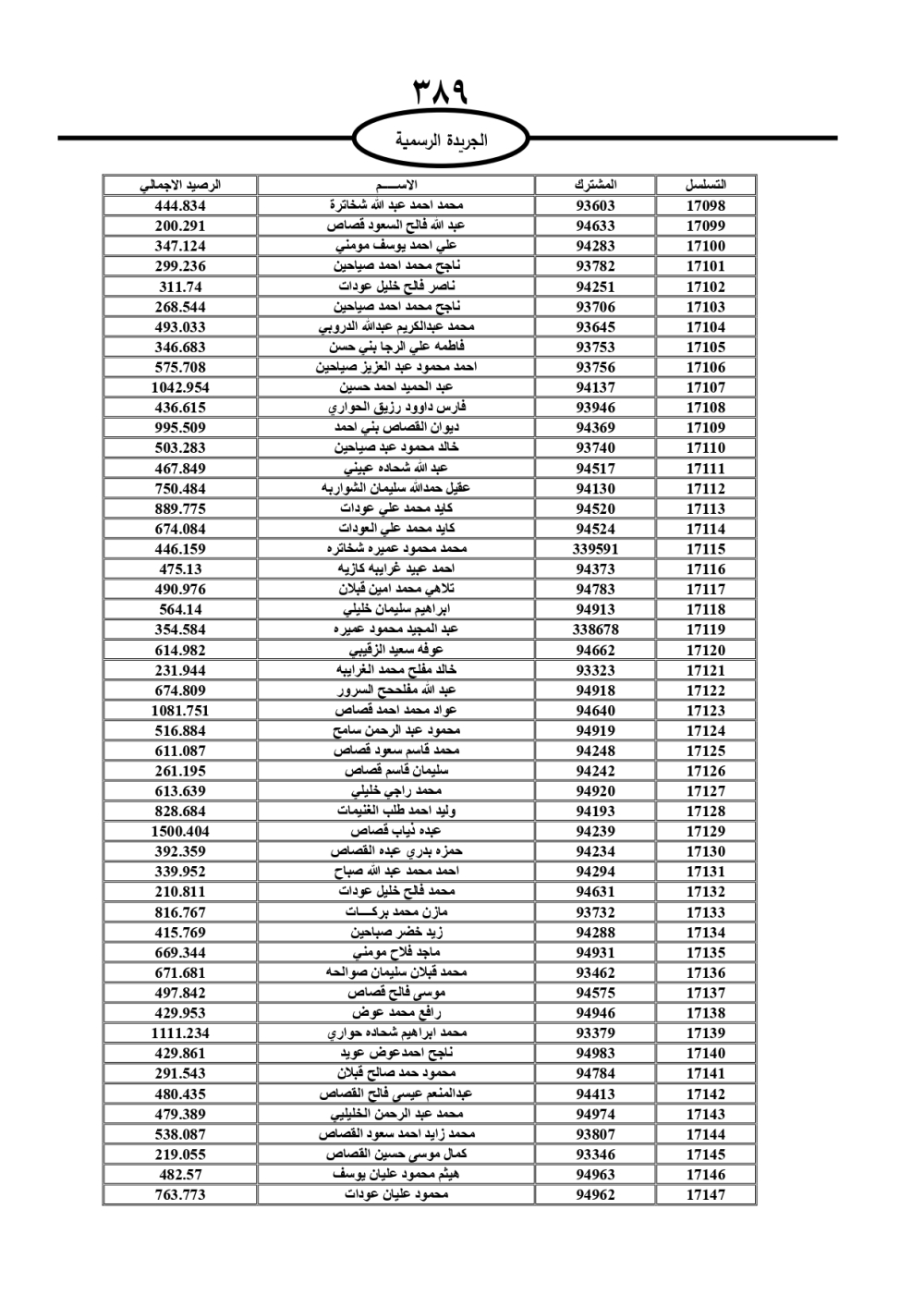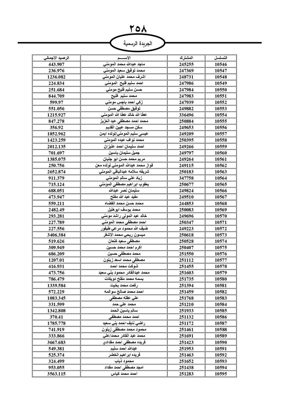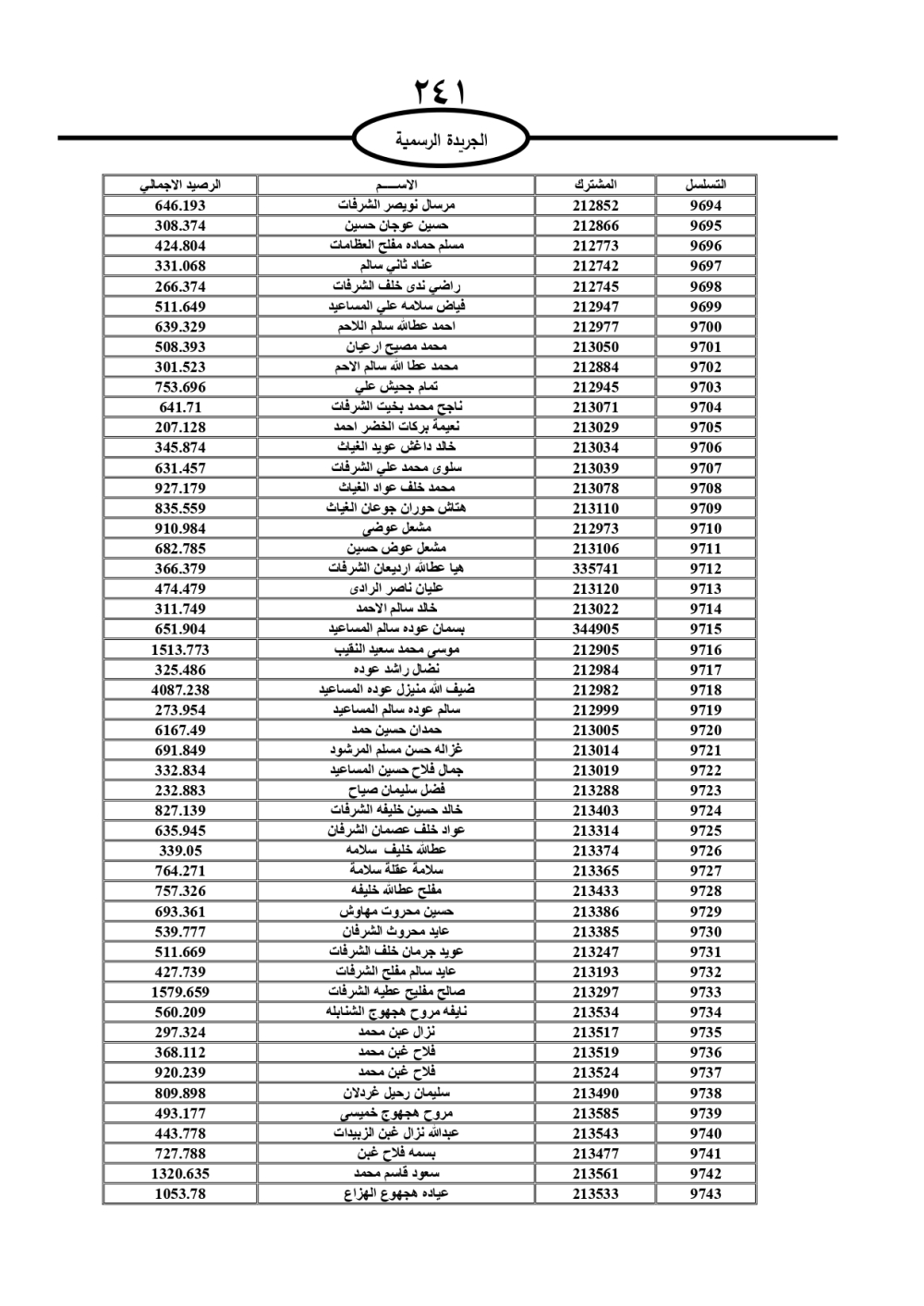 دعت سلطة المياه وبلدية الزرقاء، عشرات آلاف الأردنيين الواردة أسماؤهم بالكشوفات المرفقة، إلى ضرورة مراجعتها لتسوية أوضاعهم المالية كونه ترتب عليهم ذمم مالية، وذلك لتجنب الحجز على الأموال المنقولة وغير المنقولة بعد انقضاء 60 يوما من تاريخ النشر، علما أنه تم نشر هذه الأسماء في الجريدة الرسمية بتاريخ 16/2/2025.