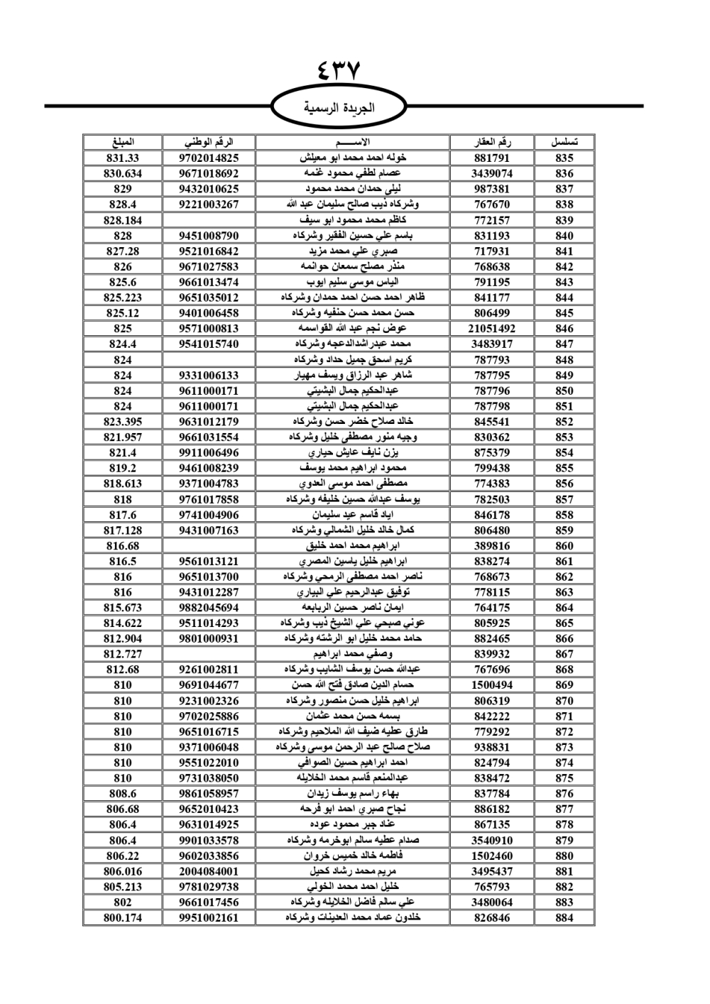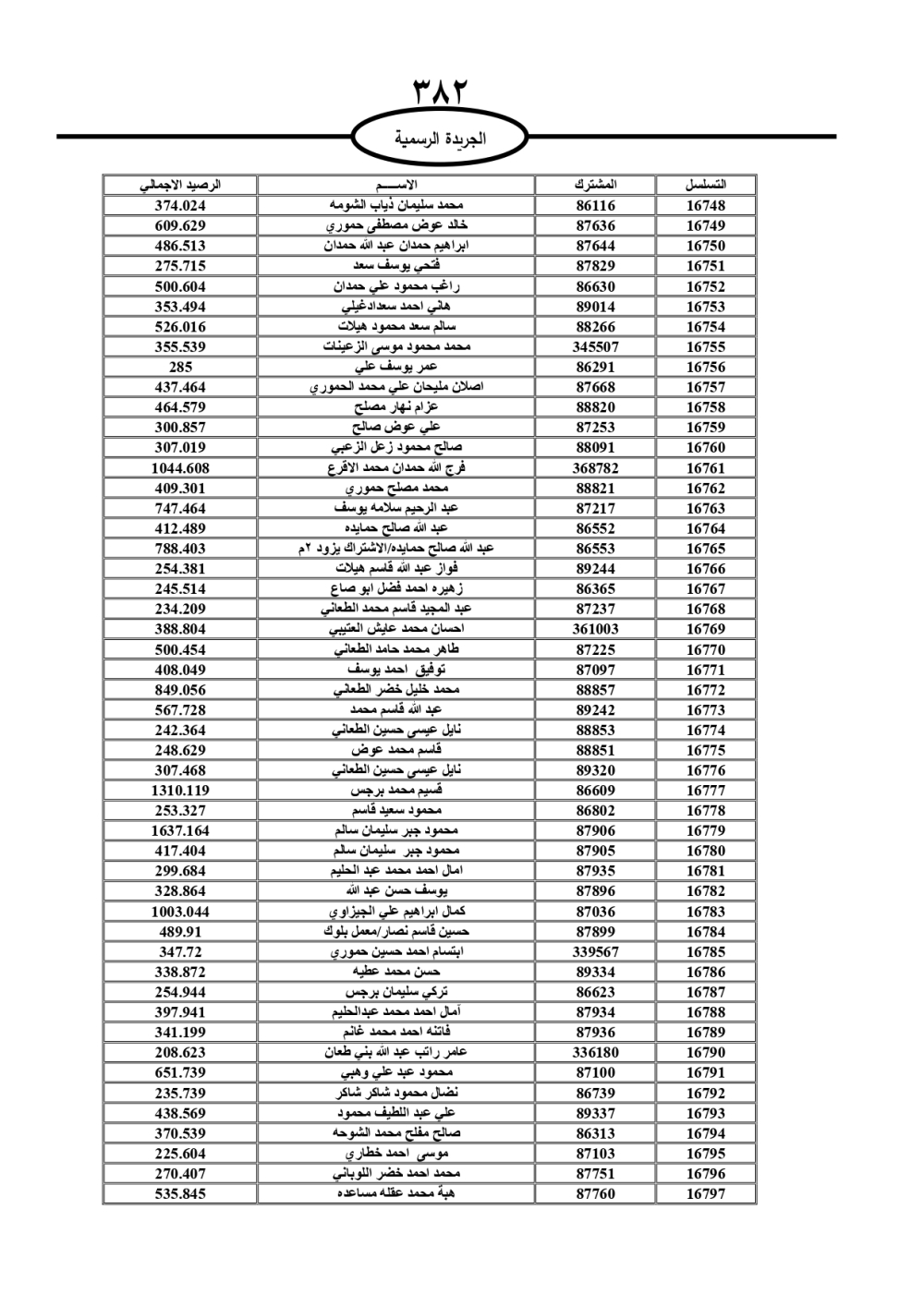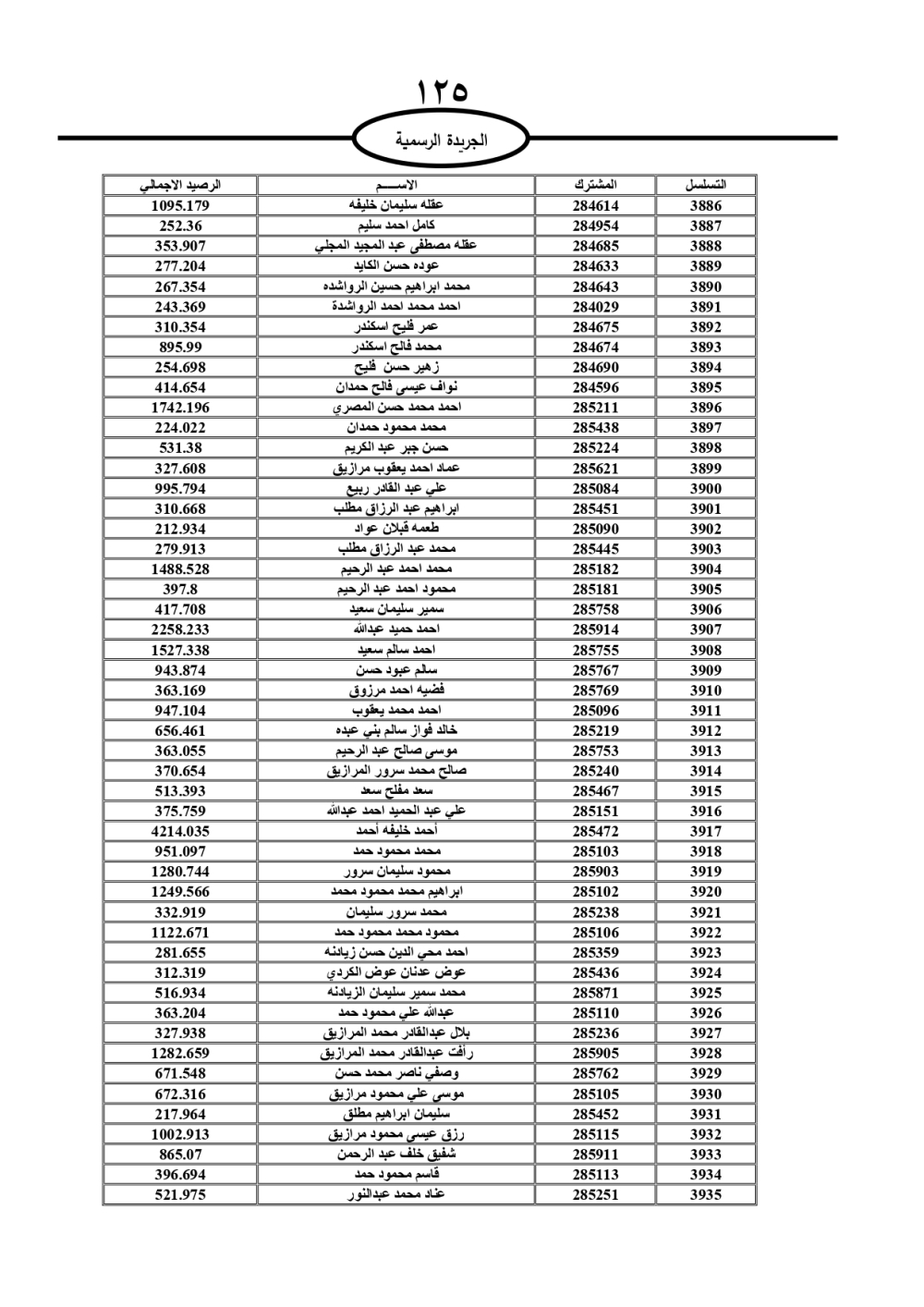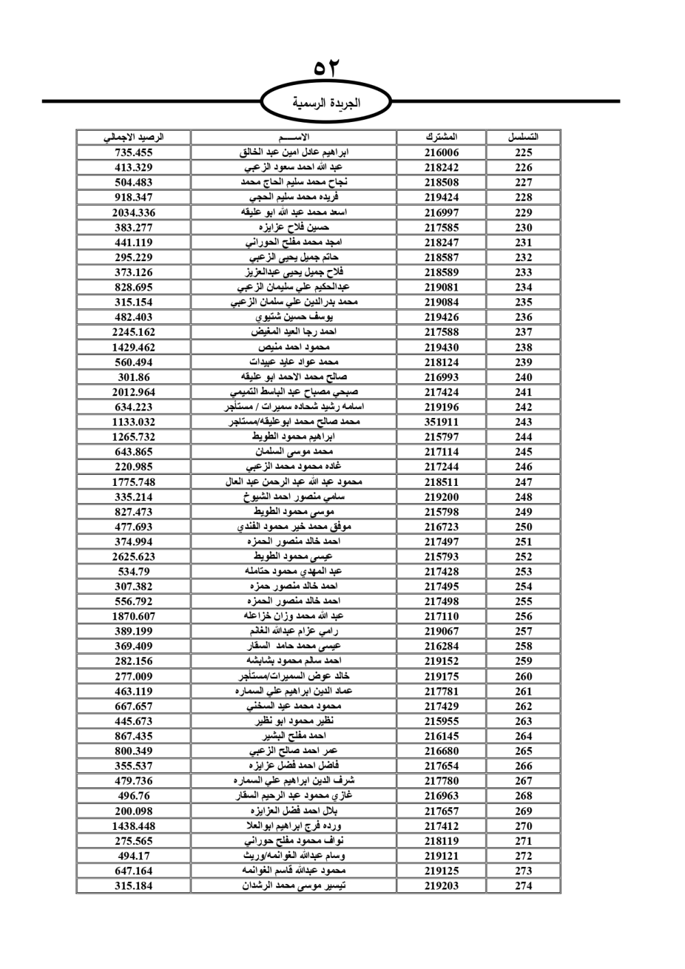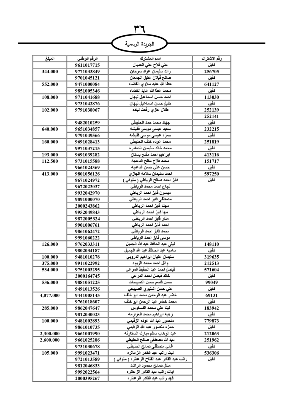 دعت سلطة المياه وبلدية الزرقاء، عشرات آلاف الأردنيين الواردة أسماؤهم بالكشوفات المرفقة، إلى ضرورة مراجعتها لتسوية أوضاعهم المالية كونه ترتب عليهم ذمم مالية، وذلك لتجنب الحجز على الأموال المنقولة وغير المنقولة بعد انقضاء 60 يوما من تاريخ النشر، علما أنه تم نشر هذه الأسماء في الجريدة الرسمية بتاريخ 16/2/2025.